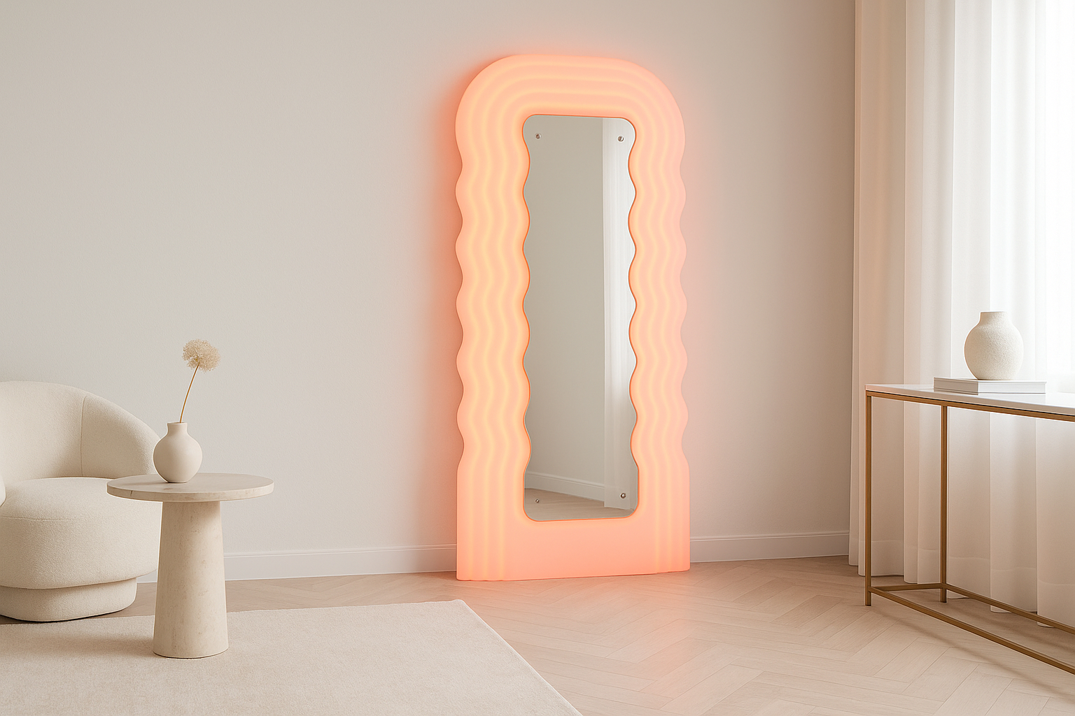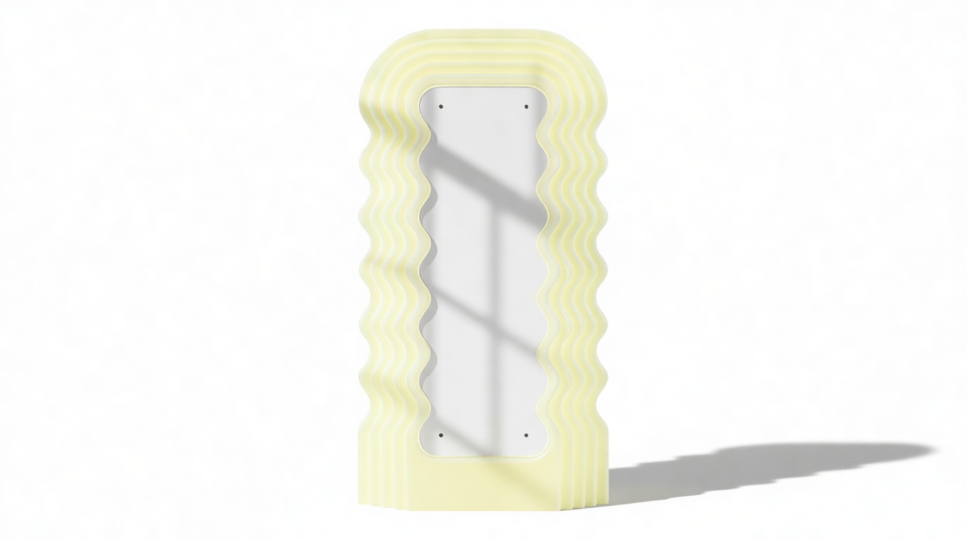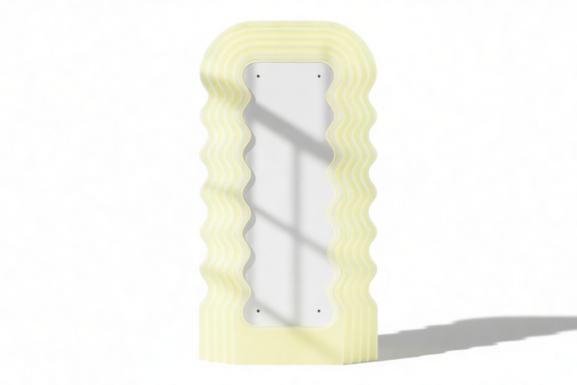 Discover the Ettore Sottsass Mirror, the mirror that is currently in the spotlight. Combining functionality with artistic appeal, its backlit frame and wavy silhouette establish it as the ultimate statement piece. This mirror, favored by Louis Vuitton and Bella Hadid, is a testament to its iconic design.