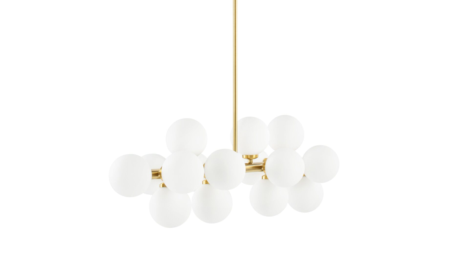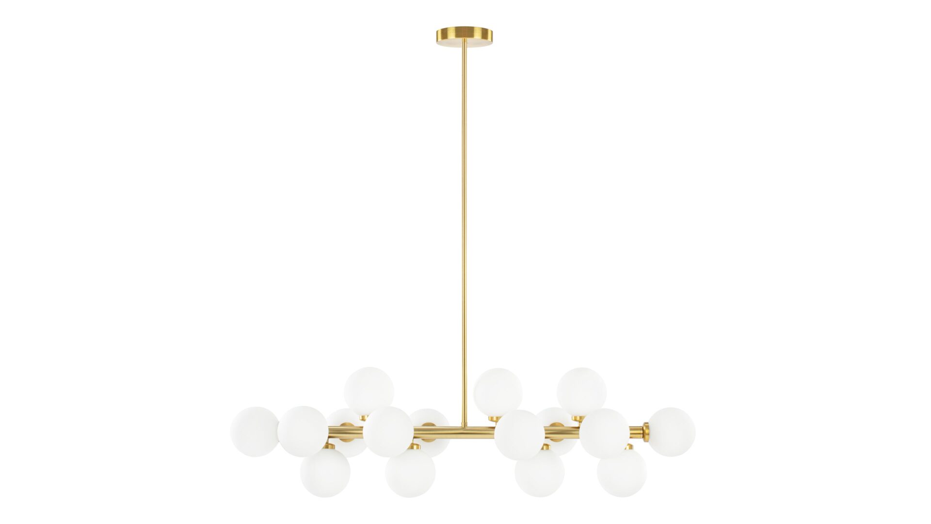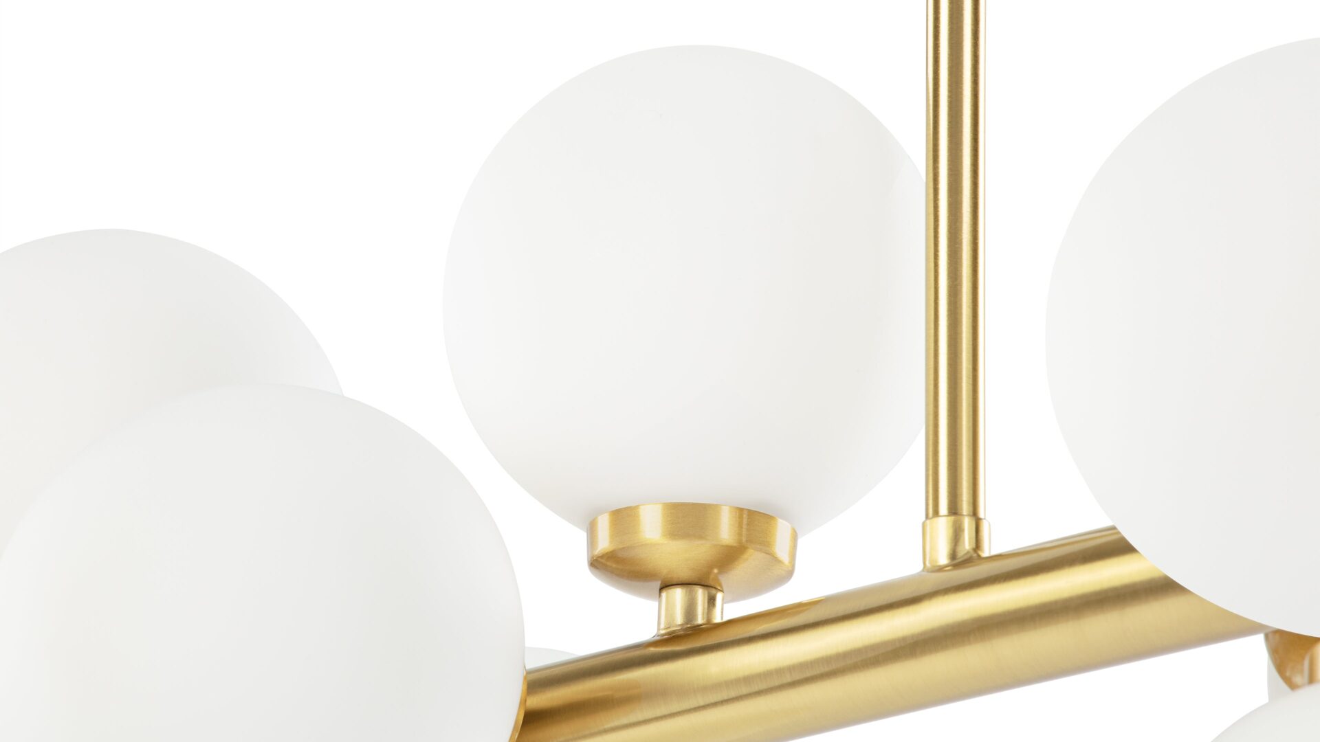 Elevate your living space with the timeless elegance and modern allure of the Eva Chandelier. Carefully crafted to blend classical sophistication with contemporary charm, this stunning fixture adds a bold touch to any room. From chic dining areas to stylish lounges, its versatile design and luxurious brass finish bring a warm and welcoming radiance, creating a peaceful sanctuary with its frosted globe lights.