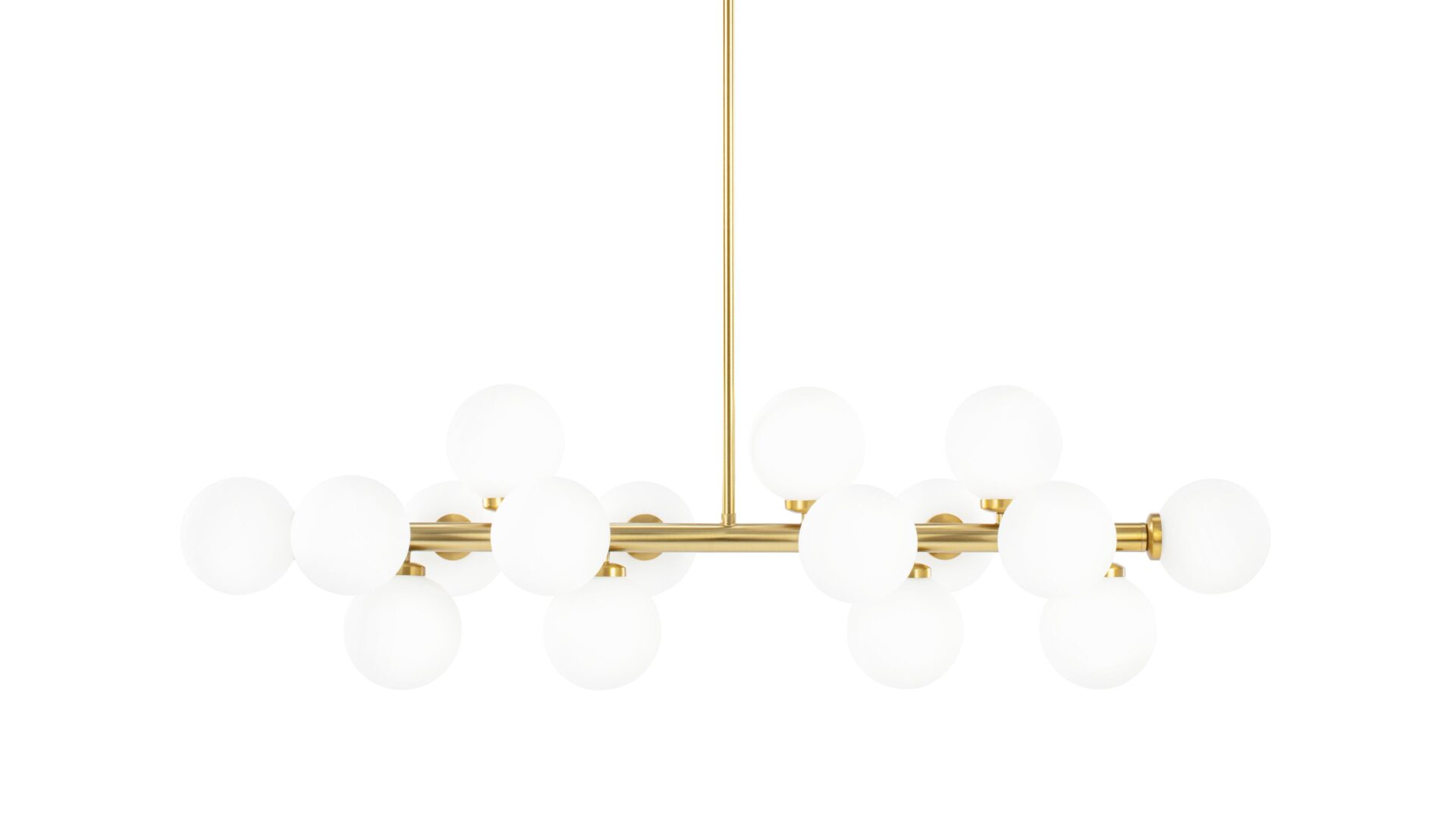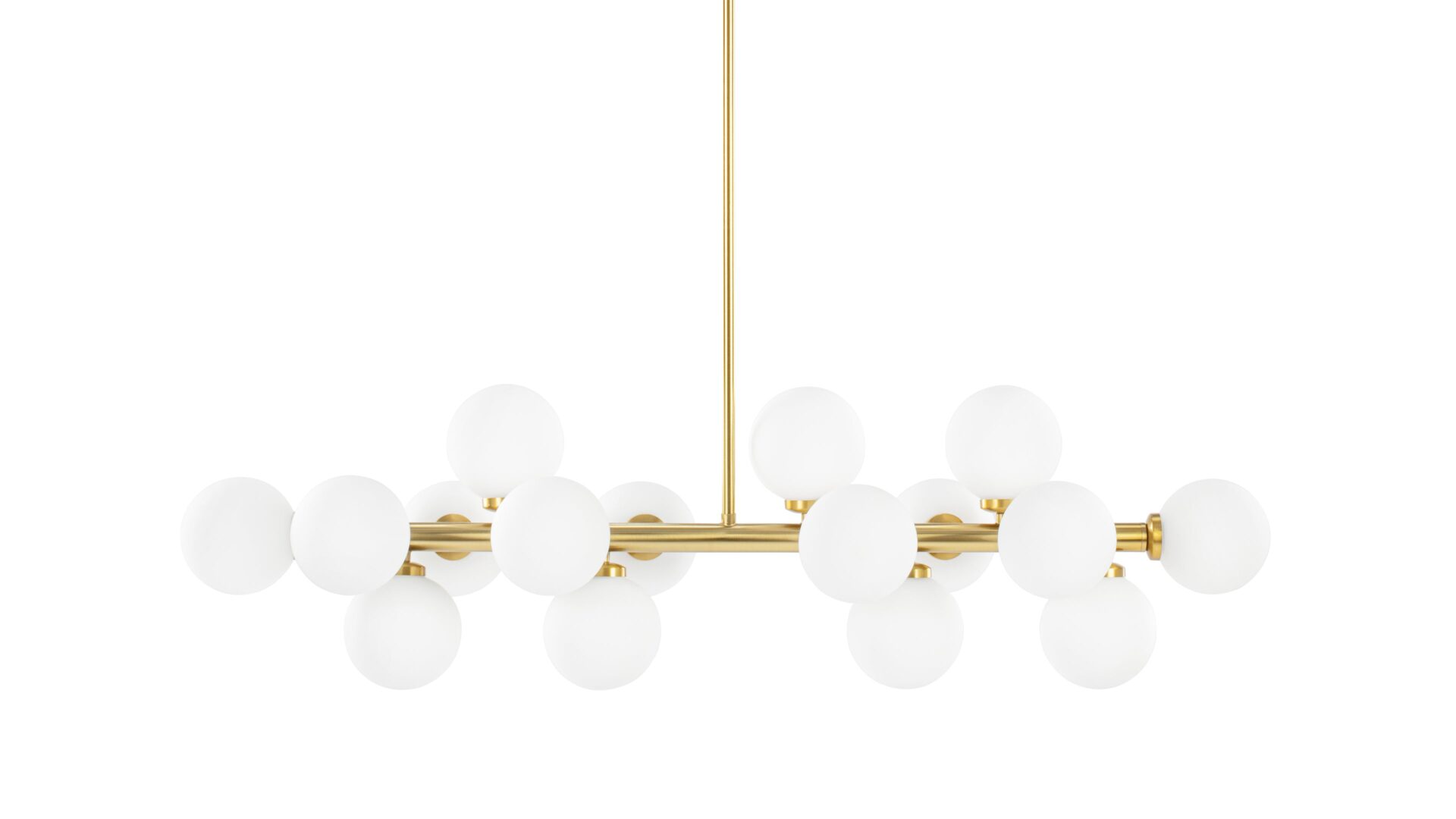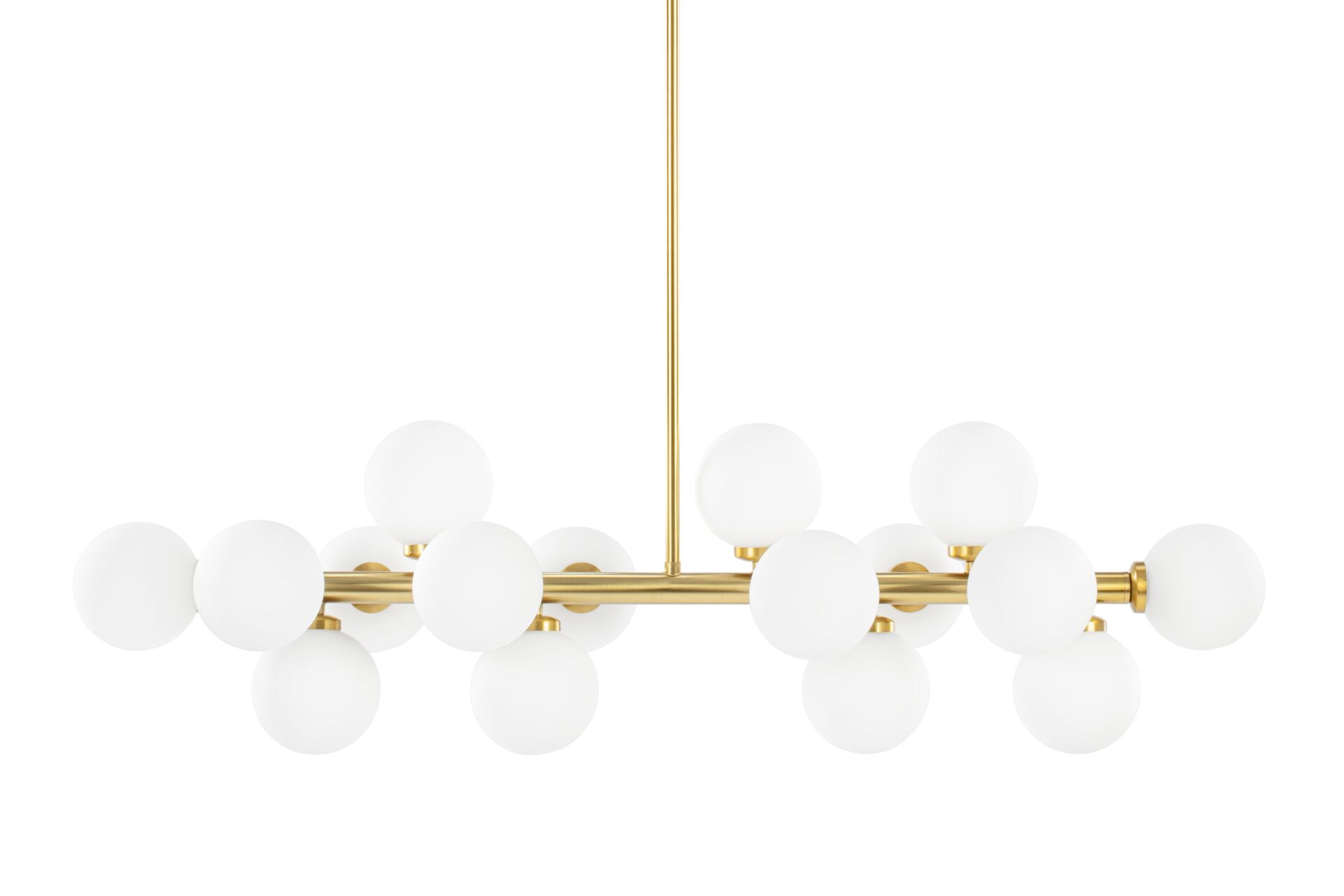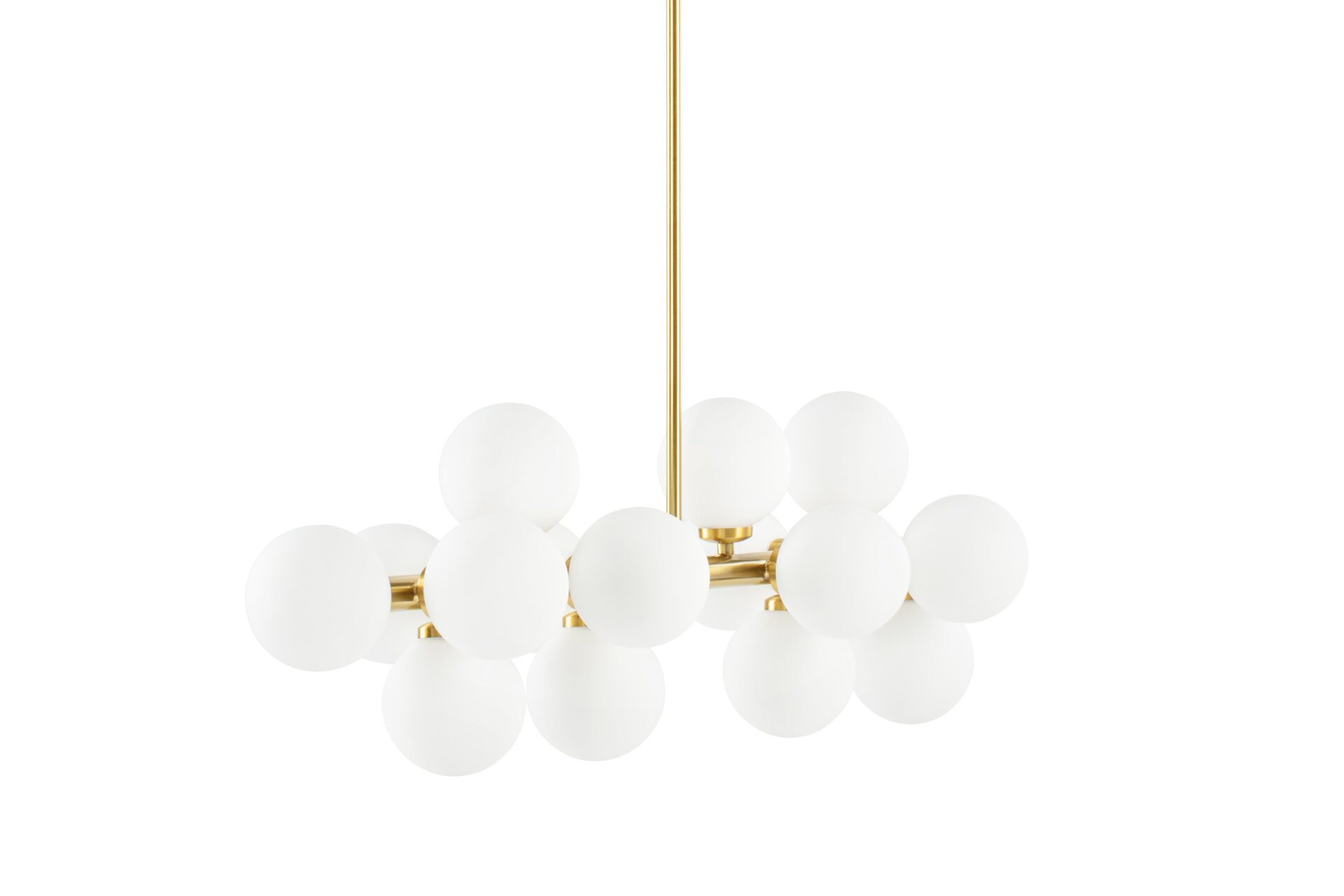 Elevate your living space with the timeless elegance and modern allure of the Eva Chandelier. Carefully crafted to blend classical sophistication with contemporary charm, this stunning fixture adds a bold touch to any room. From chic dining areas to stylish lounges, its versatile design and luxurious brass finish bring a warm and welcoming radiance, creating a peaceful sanctuary with its frosted globe lights.