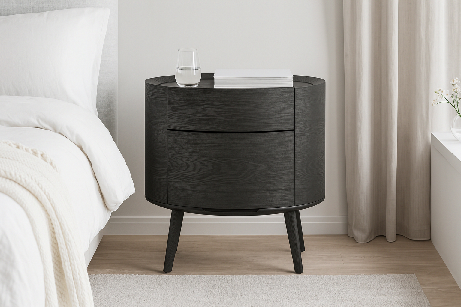 Discover the exquisite Felice Nightstand, a striking furniture piece that harmoniously fuses modern design with enduring sophistication. With its impeccable craftsmanship and attention to detail, this nightstand embodies a perfect balance of style and utility, ideal for enhancing any bedroom decor.