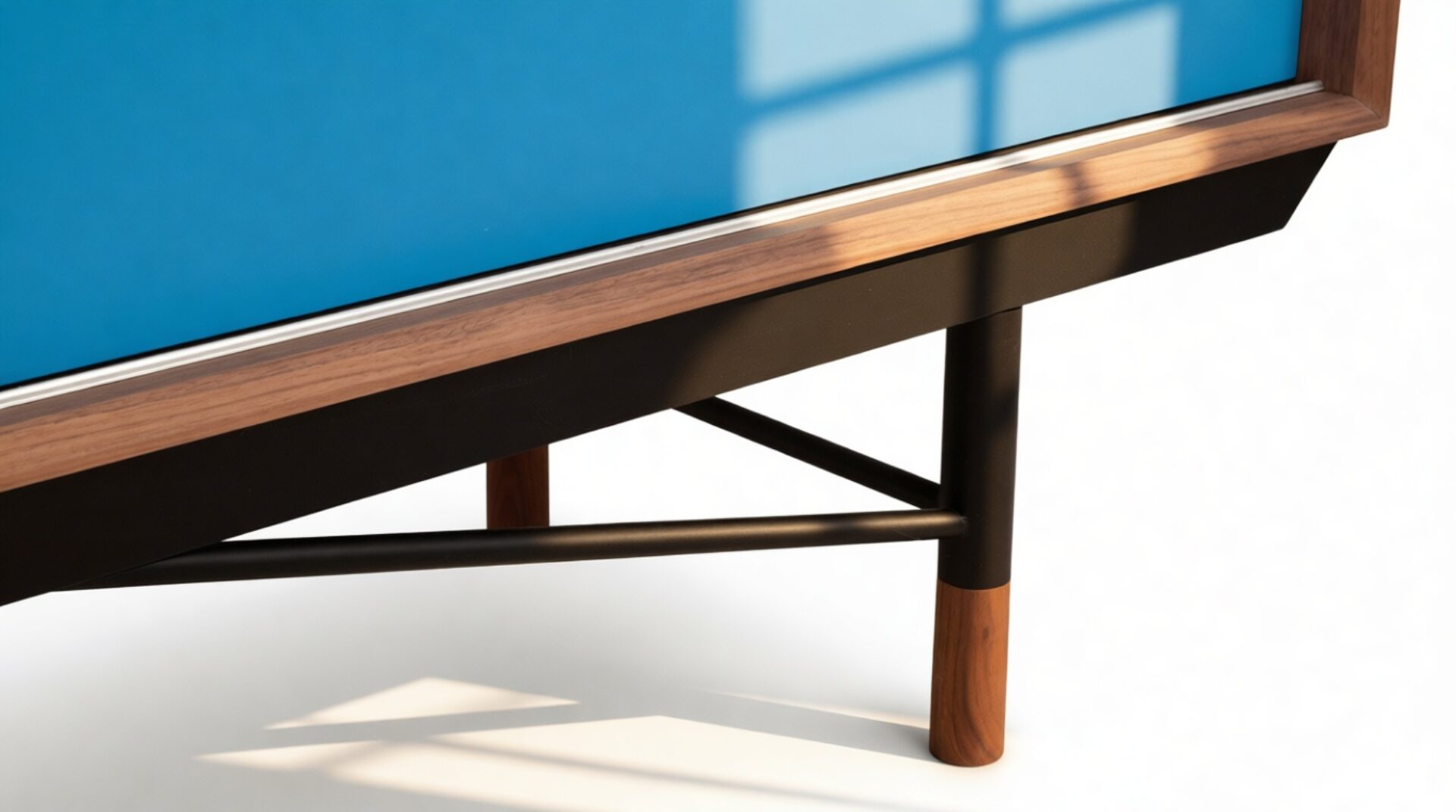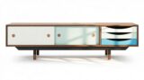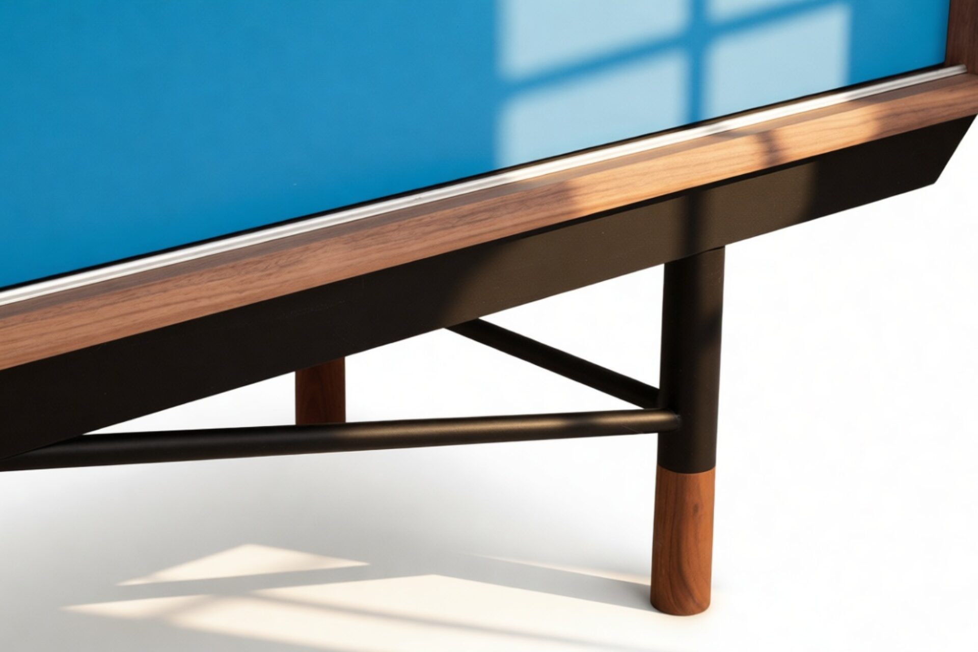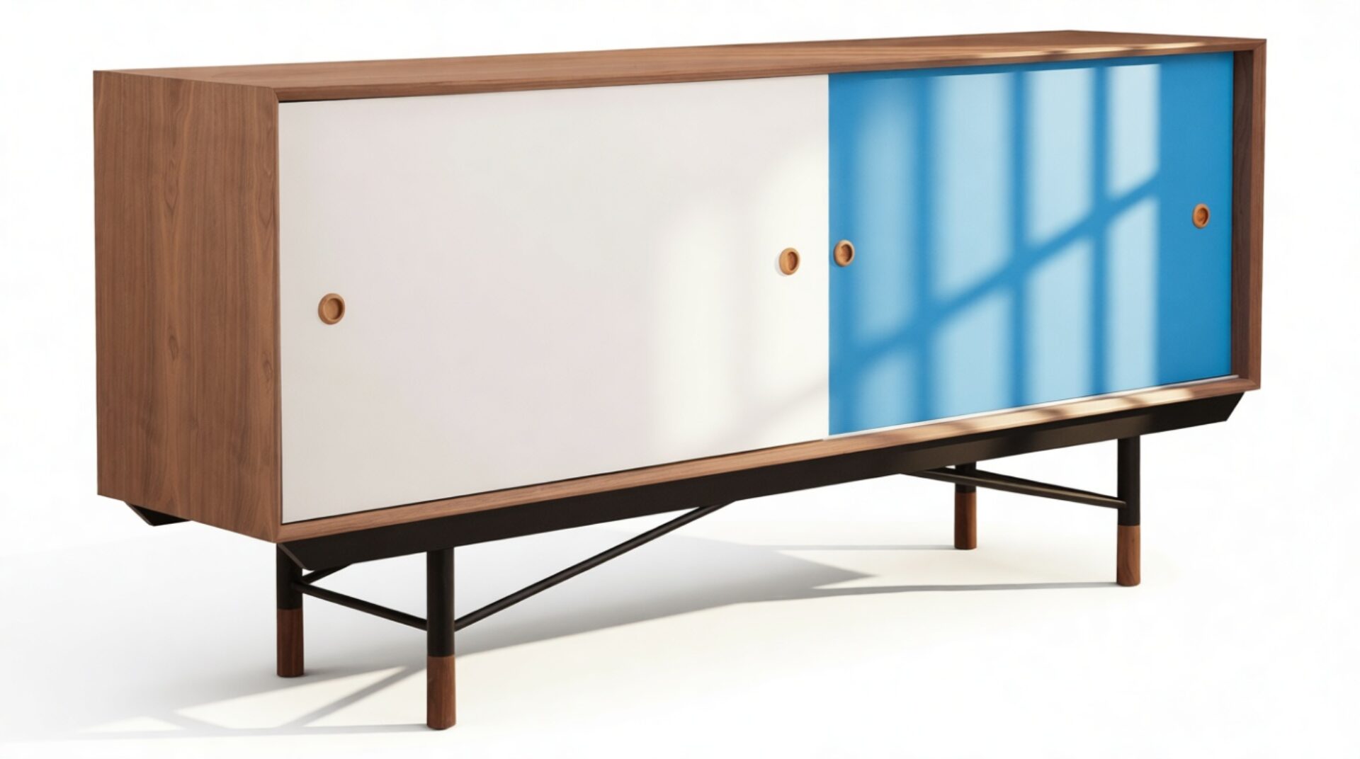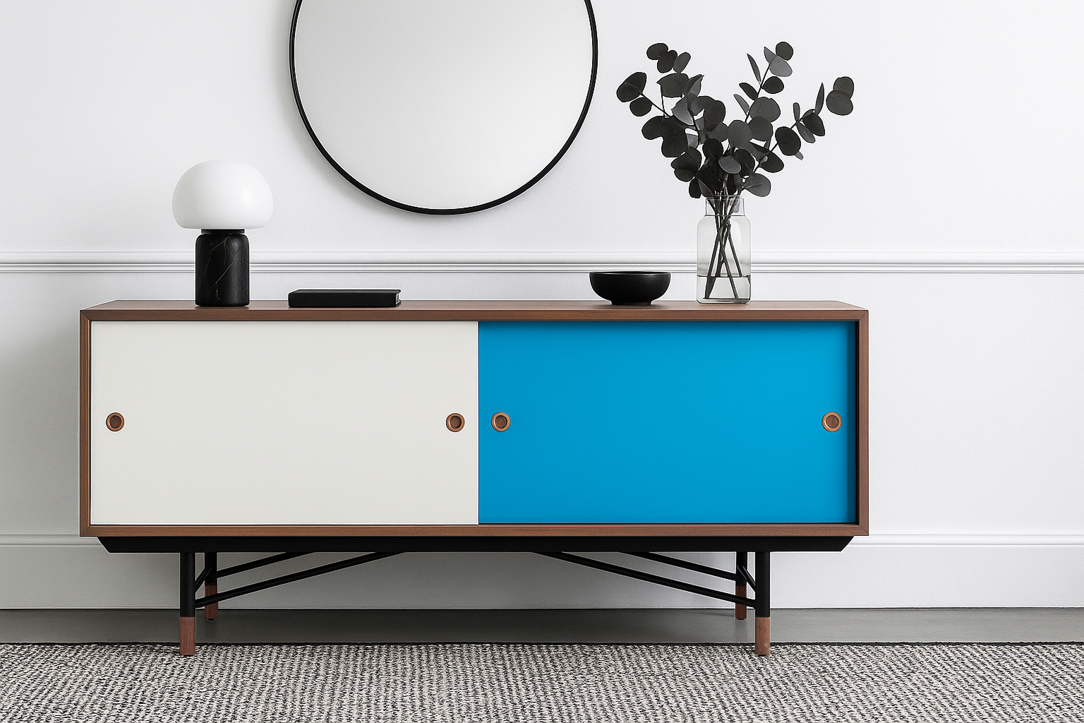 Walnut & Blue Sideboard: Elegant Storage Solution