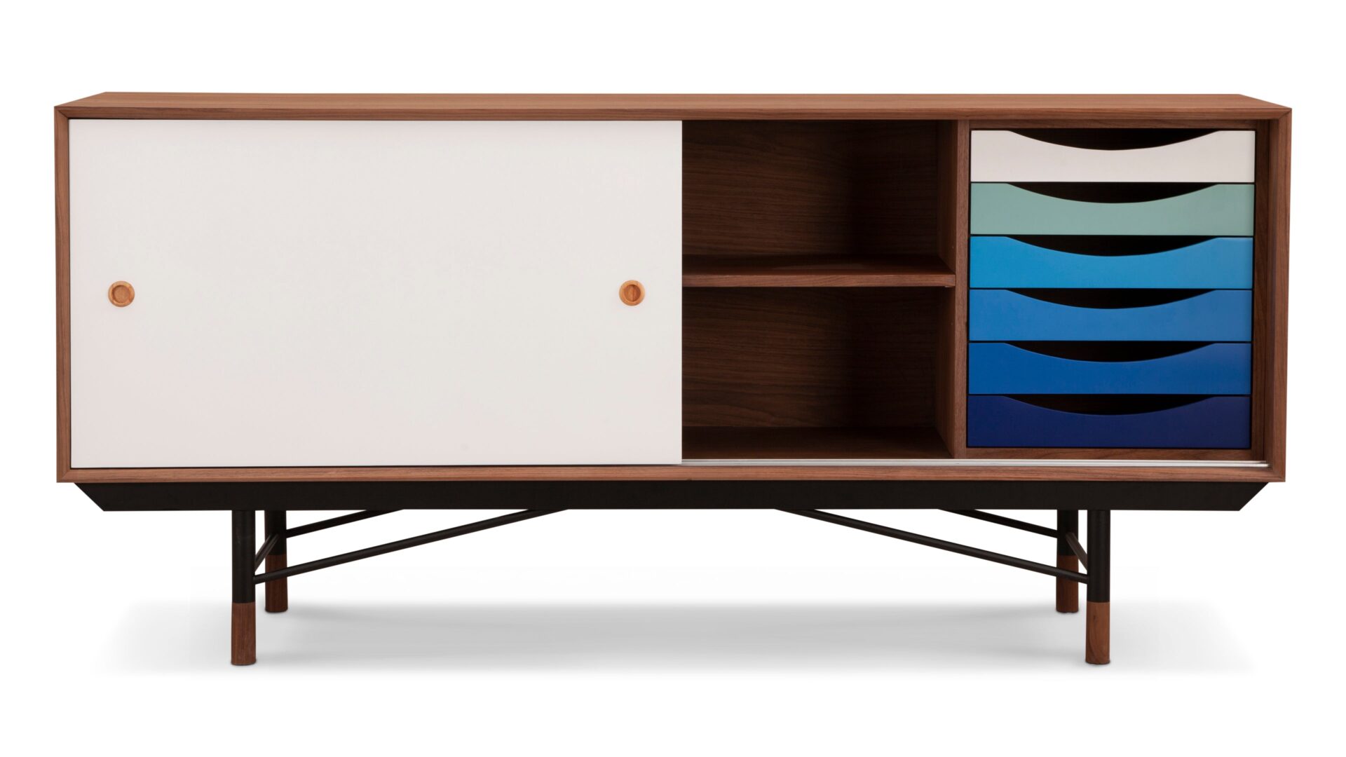 Walnut & Blue Sideboard: Elegant Storage Solution