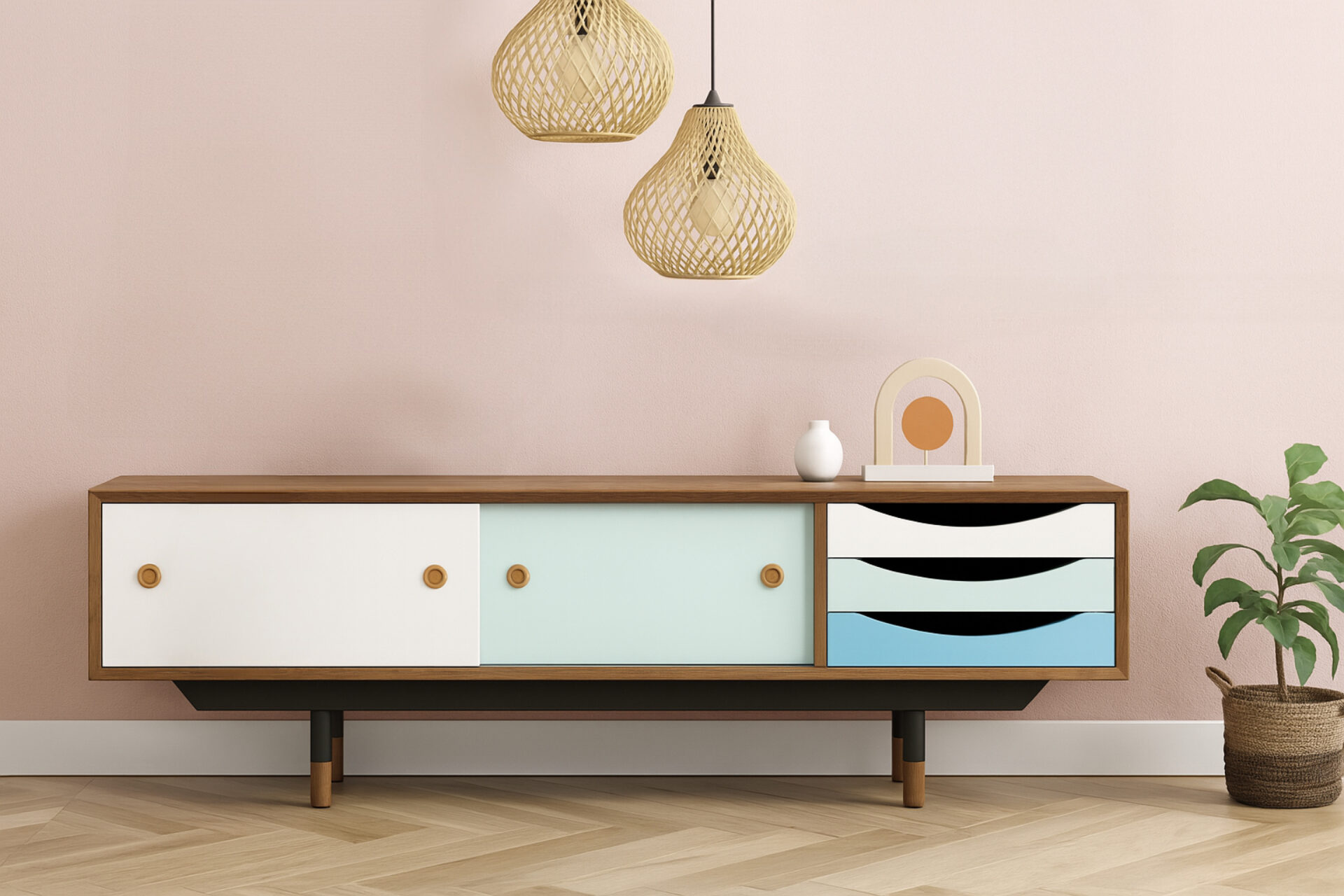Drawing inspiration from timeless mid-century modern aesthetics, this TV cabinet seamlessly blends style, functionality, and intelligence. Its organic aesthetic infuses a sense of relaxed sophistication and warmth into any setting. Moreover, it is meticulously constructed to ensure enduring style and resilience.