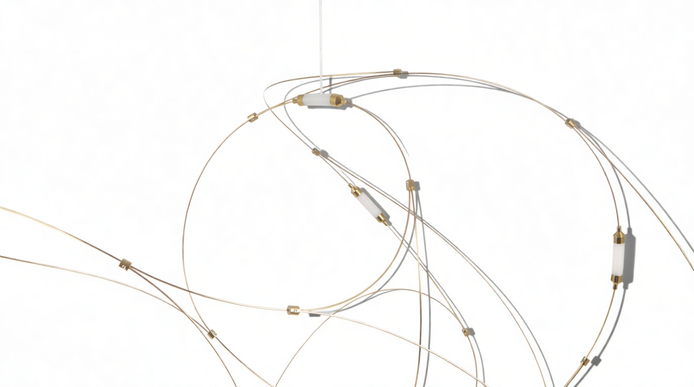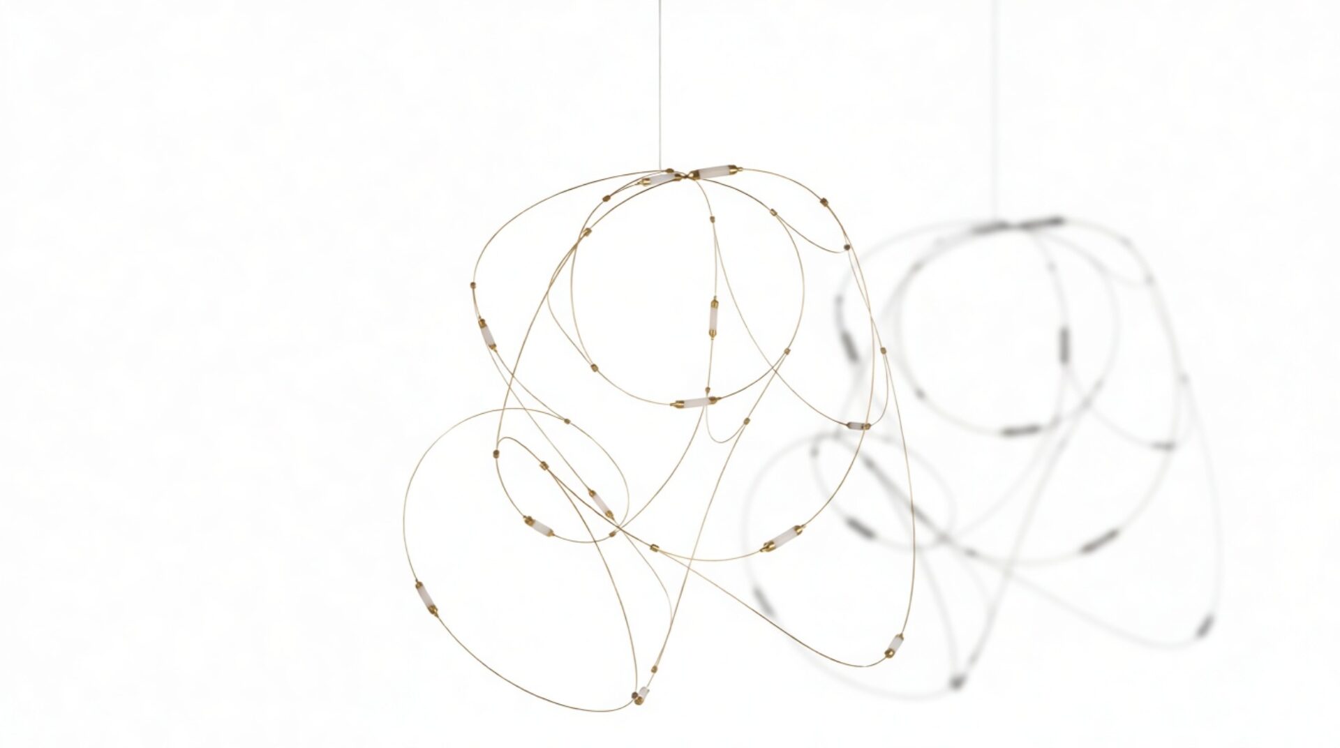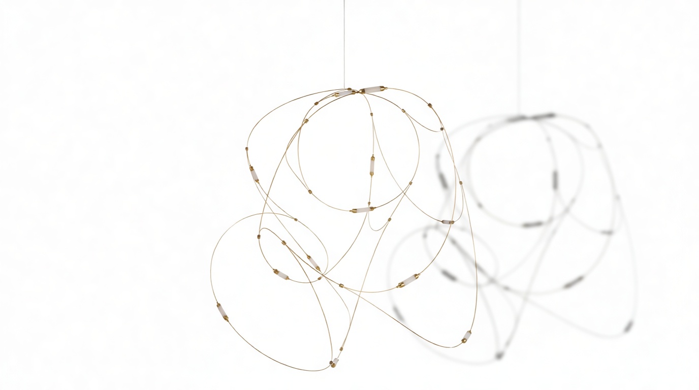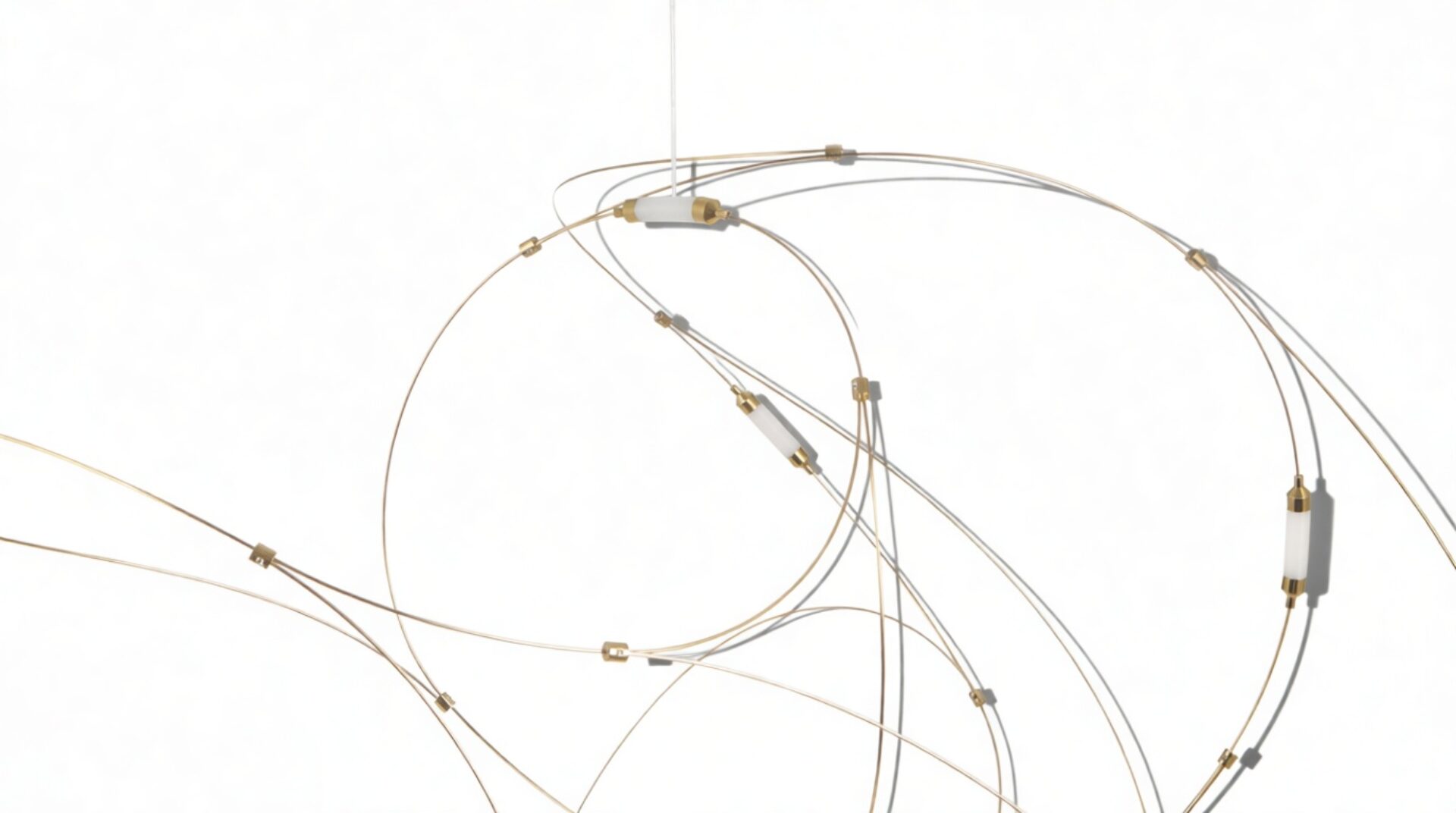 Crafted from brass wire, this chandelier is embellished with delicate LEDs that mimic twinkling light, creating a gentle and enchanting radiance. Its sleek design, inspired by the cosmos, makes it an eye-catching addition to modern settings, enriching the atmosphere with a subtle yet powerful aesthetic.