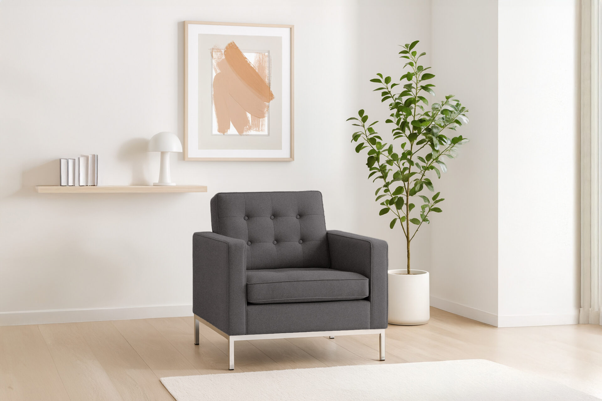 Elevate your space with the iconic Florence Chair, boasting timeless appeal and effortless elegance. A modernist masterpiece, this chair seamlessly blends form and function, embodying mid-20th-century design ideals. Crafted with precision, its classic contemporary style is highlighted by the refined Dark Gray Wool material, making it a versatile and sophisticated seating solution for any setting.