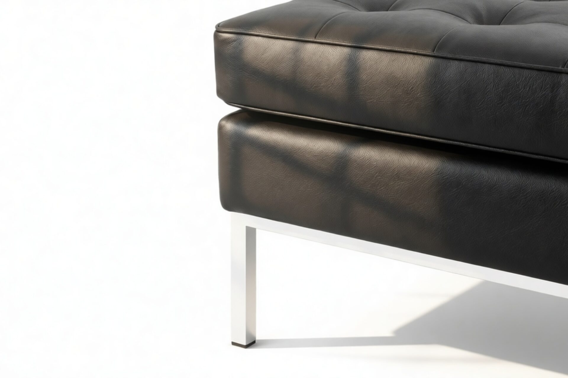 Embrace classic contemporary style with the Florence Ottoman in Midnight Black Premium Leather. This iconic piece captures the essence of mid-20th-century modernism, featuring sleek design principles and enduring charm. Versatile and stylish, it seamlessly transitions from footrest to coffee table, complementing our Florence Collection's sofas and armchairs. Experience timeless sophistication and refined design in any setting.
