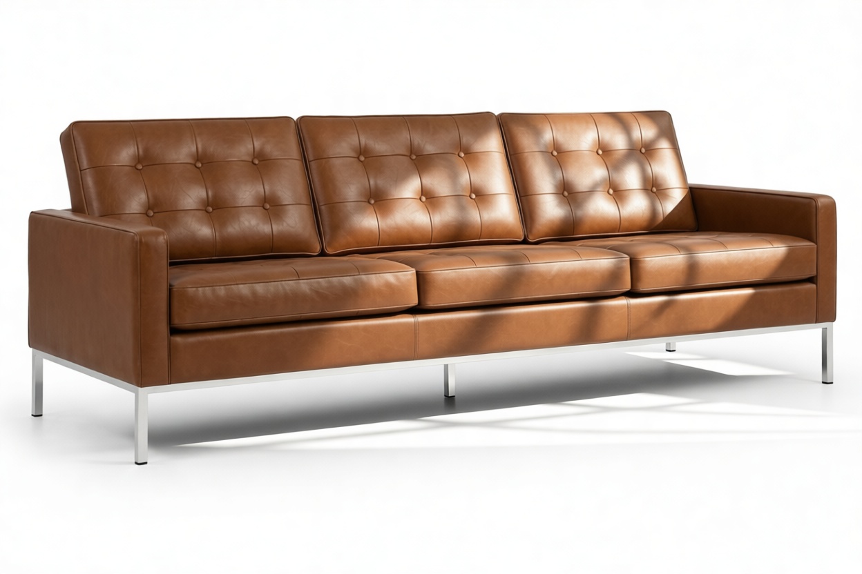Elevate your space with the enduring charm and effortless elegance of the iconic XYZ three-seater sofa, now available in Tan Premium Leather. A beloved seating solution for both stylish homes and businesses, this timeless masterpiece of modernist design flawlessly combines classic contemporary style with balanced proportions and meticulous attention to detail. Ideal for any setting, the Florence Sofa embodies mid-20th-century modernism while effortlessly blending minimalist aesthetics with refined design, making it a versatile symbol of sophistication for diverse interiors.