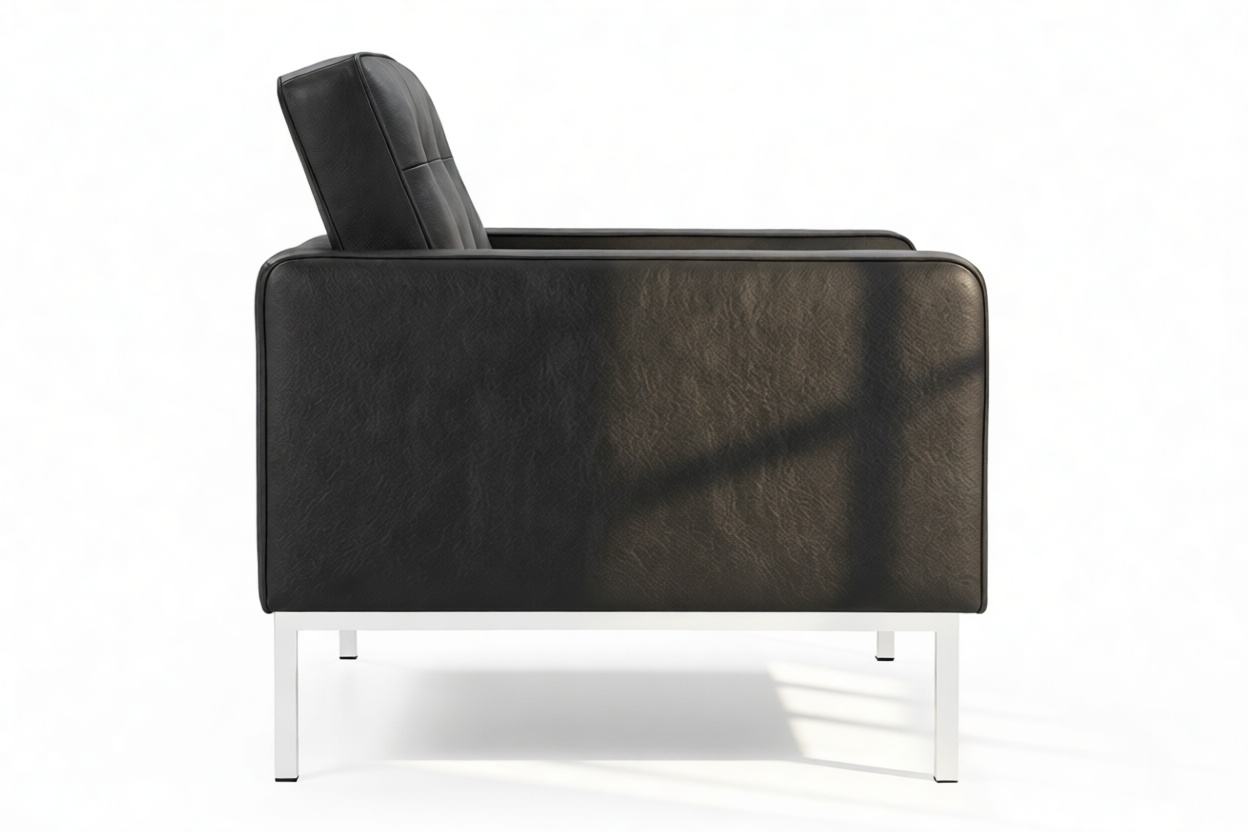 Elevate your space with the timeless allure and sophistication of the iconic Florence Chair in Vintage Black Vegan Leather. This classic piece embodies mid-20th-century modernism, seamlessly blending sleek aesthetics with functionality. Perfect for chic residences and commercial settings, it symbolizes simplicity, comfort, and adaptability. Experience design elegance with this adaptable and versatile seating option.