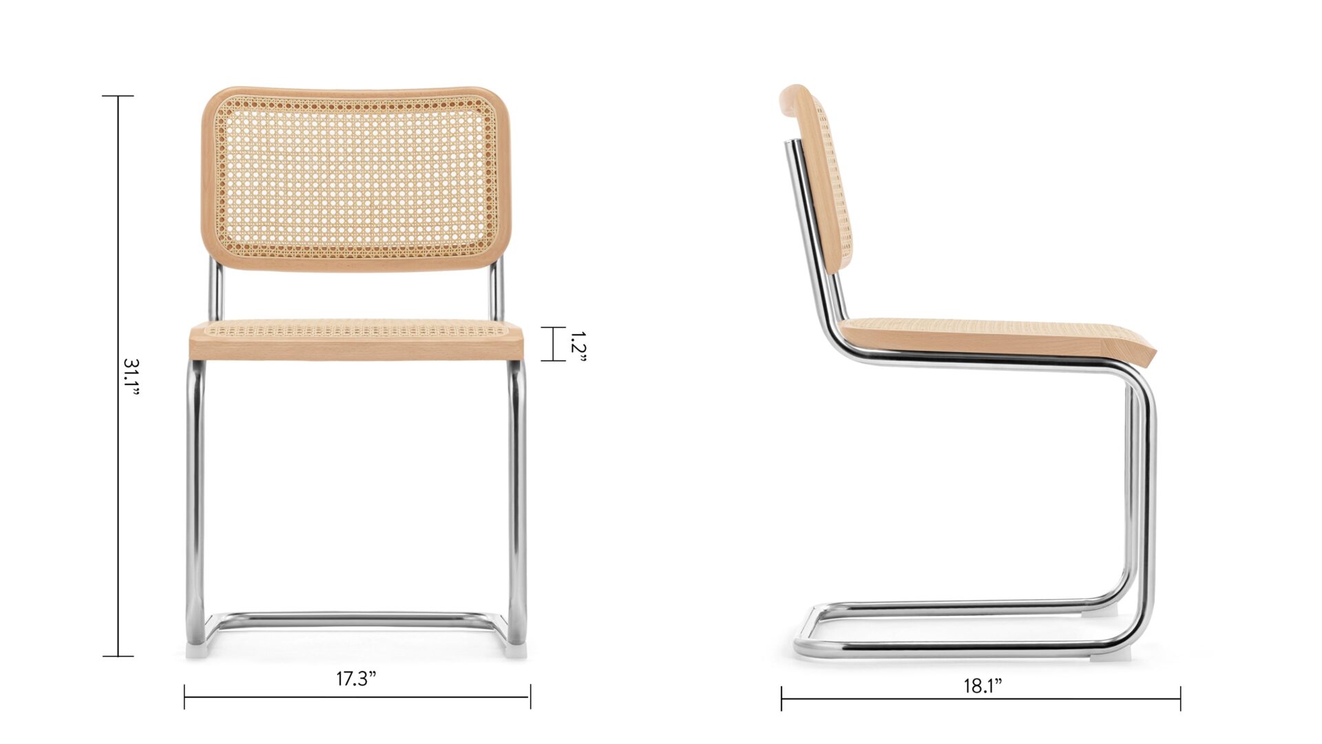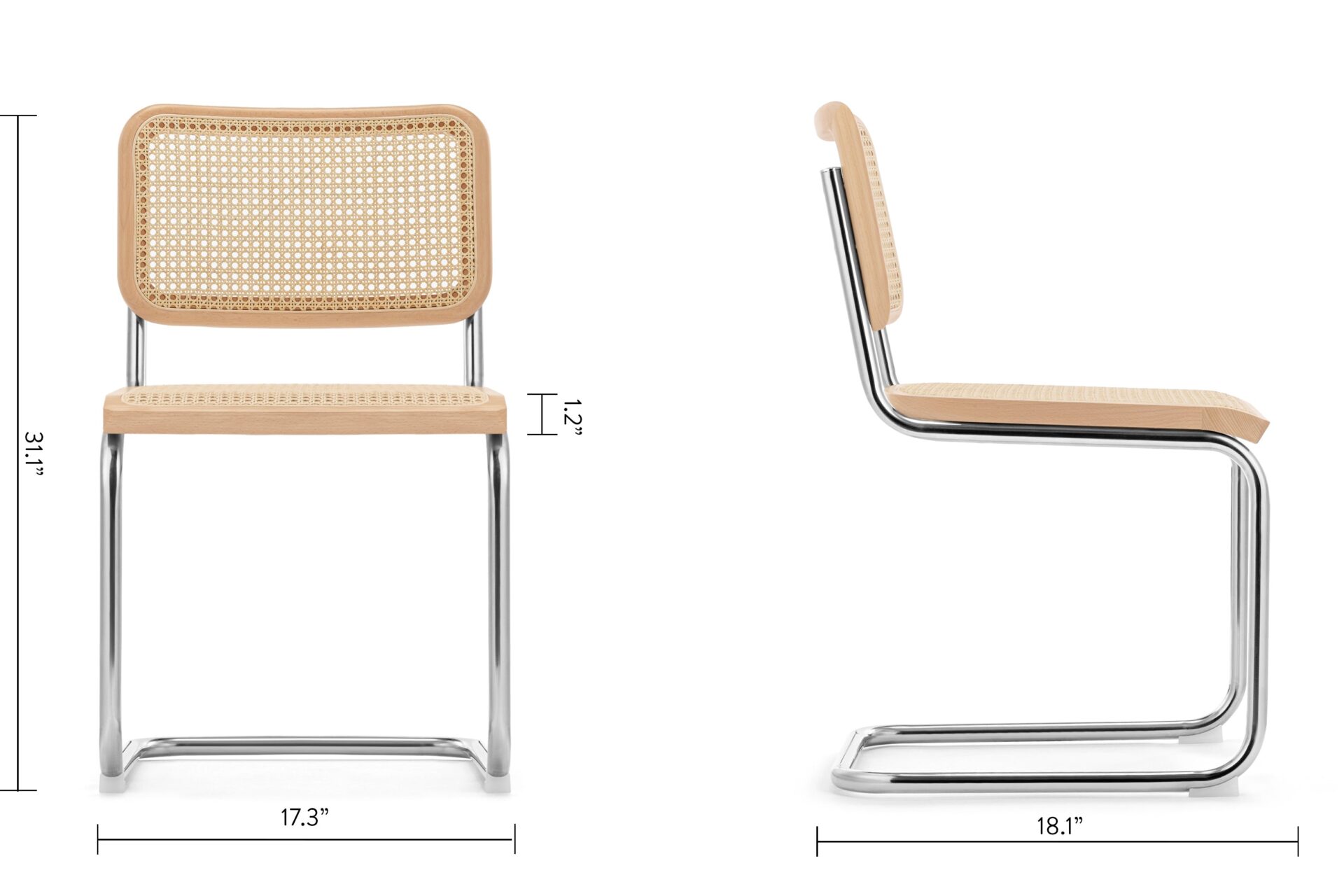 Presenting the Freya Chair, an innovative piece of contemporary design blending sophistication, comfort, and sturdiness. Drawing inspiration from Bauhaus aesthetics, this timeless chair is a tribute to the era's pioneering creativity. The Freya Chair showcases a unique cantilevered frame, a groundbreaking design feature pushing the boundaries of conventional chair craftsmanship. The elegant tubular steel frame, paired with the woven cane seat and backrest, achieves a seamless fusion of artistic form and practical utility. Its agile build and adaptable materials offer both comfort and an airy visual appeal.