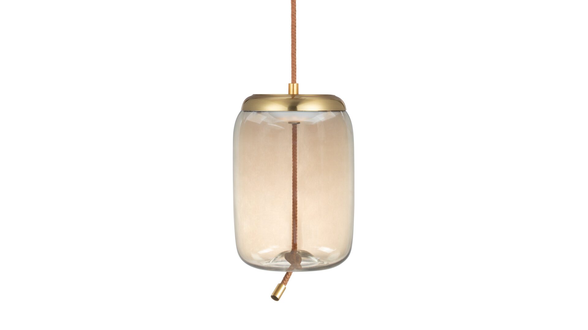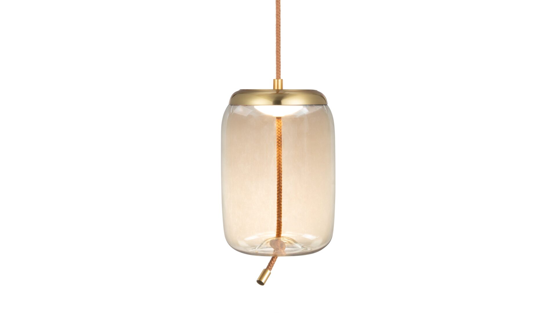 Elevate your space with the elegant Geneva Pendant. Blending traditional glass craftsmanship with modern design, this eye-catching fixture features warm amber-tinted glass that radiates a cozy ambiance. The energy-efficient LED light, accented by brass-finished iron fittings, elegantly directs light downwards. Hung from a burnt orange rope with a metal stopper, it adds a touch of refinement to any room. Versatile and stylish, the Geneva Pendant can stand out on its own or be mixed with other styles for a unique look.