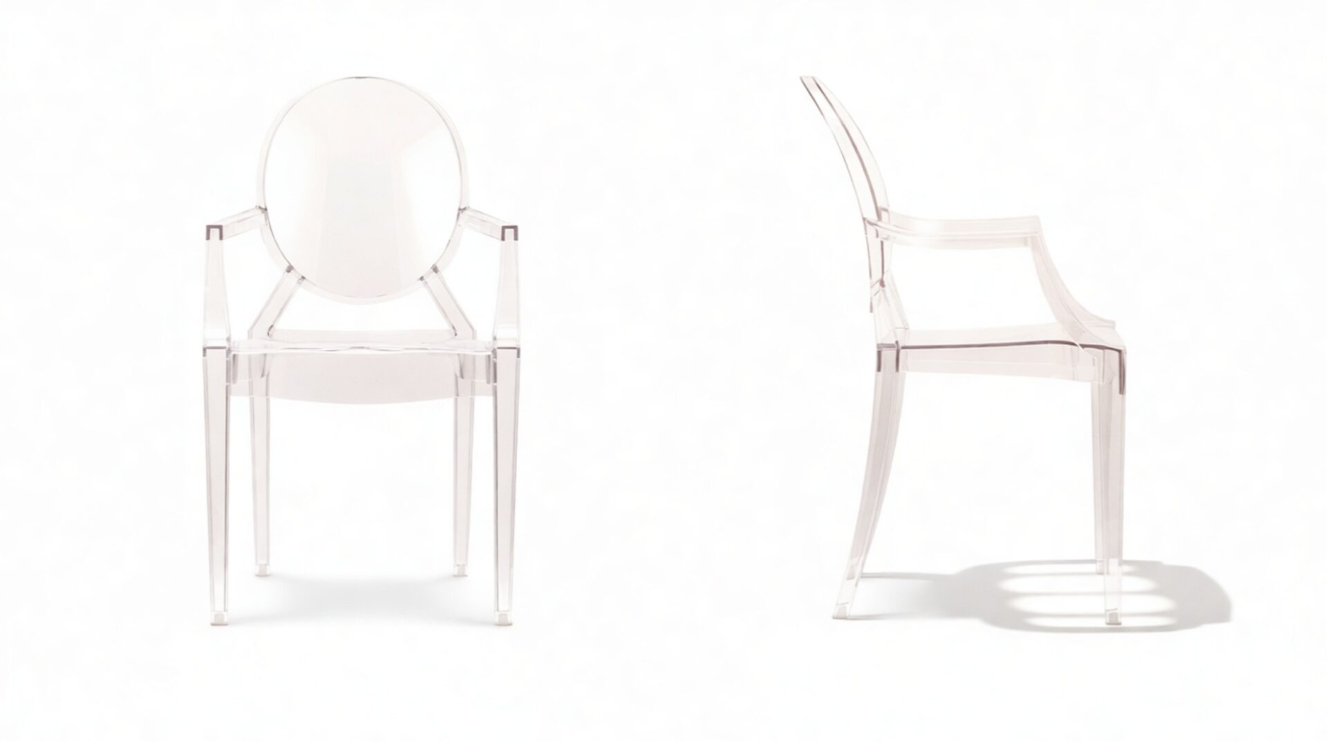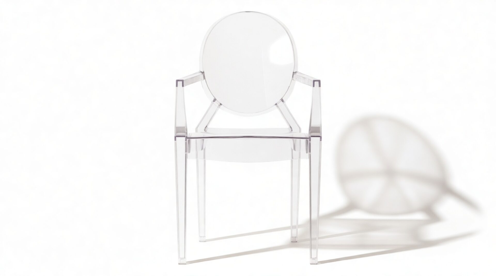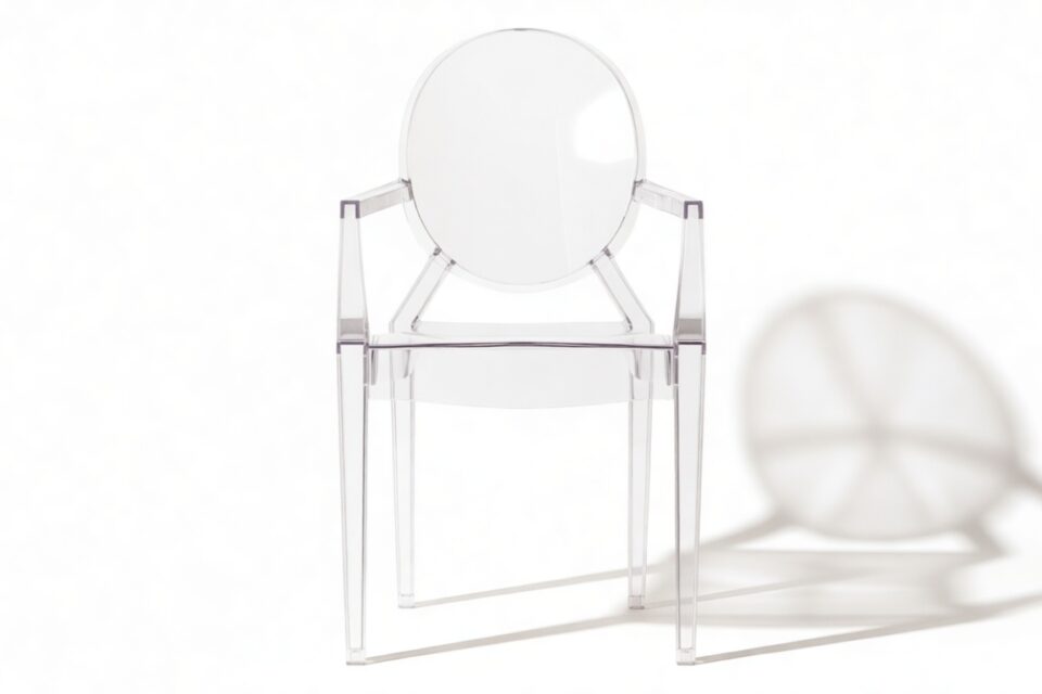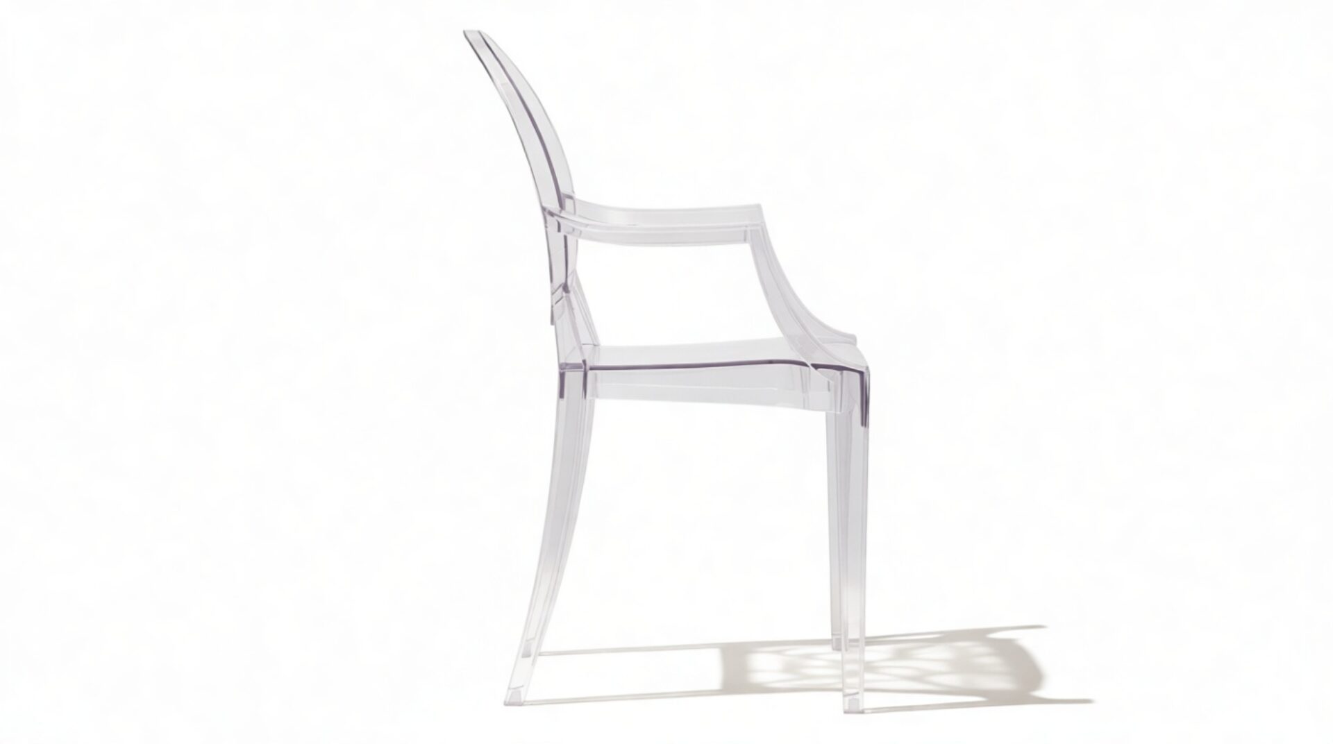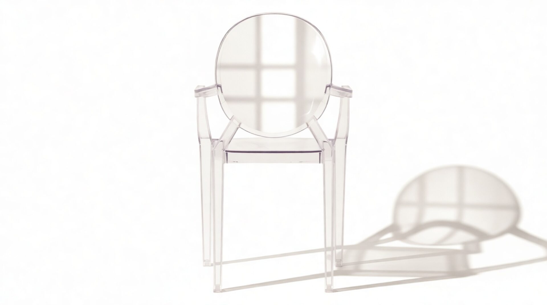 Experience the Ghost Chair, a striking reinterpretation of Louis XVI's iconic armchair. Crafted from resilient polycarbonate, it elegantly blends historical sophistication with contemporary flair. Witness the convergence of rich history and innovative design in this scratch-resistant piece that creates an illusion of weightlessness. Perfect for engaging conversations, it symbolizes opulence and grandeur, igniting dialogues on art, history, and modern aesthetics while achieving a technological milestone with its transparent appearance.