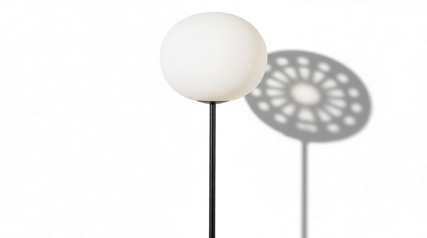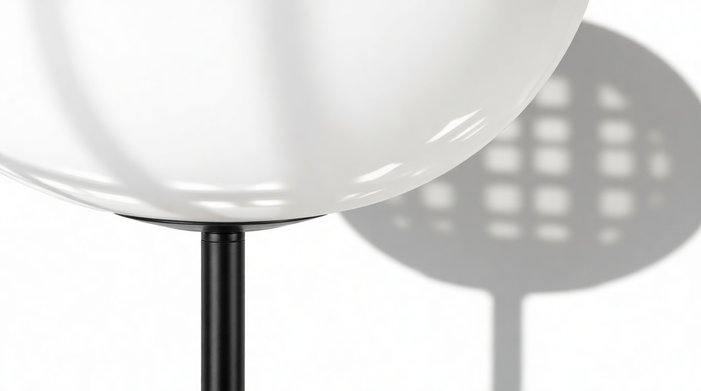 Experience the sophisticated design of the Glo Ball Lamp as it showcases a slender steel stem and a simplistic base, meticulously engineered to offer stability and a delicate allure. The stem elegantly protrudes from the base, gently supporting the round shade, creating the illusion of a floating diffuser – a genuine reflection of its contemporary charm.