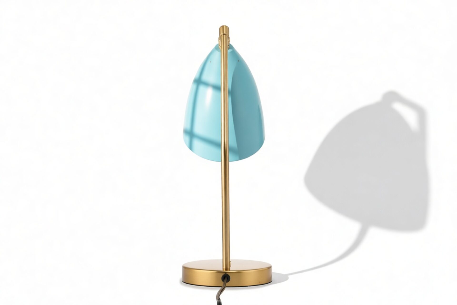 Introducing the Grasshopper Table Lamp in Blue, a stunning fusion of style and functionality that instantly captivates. Crafted with angled carbon-steel rods, this industrial marvel boasts a swiveling conical head for precise illumination control. The durable powder-coated steel ensures longevity, making it a timeless addition to your space. Illuminate your surroundings with grace and style.