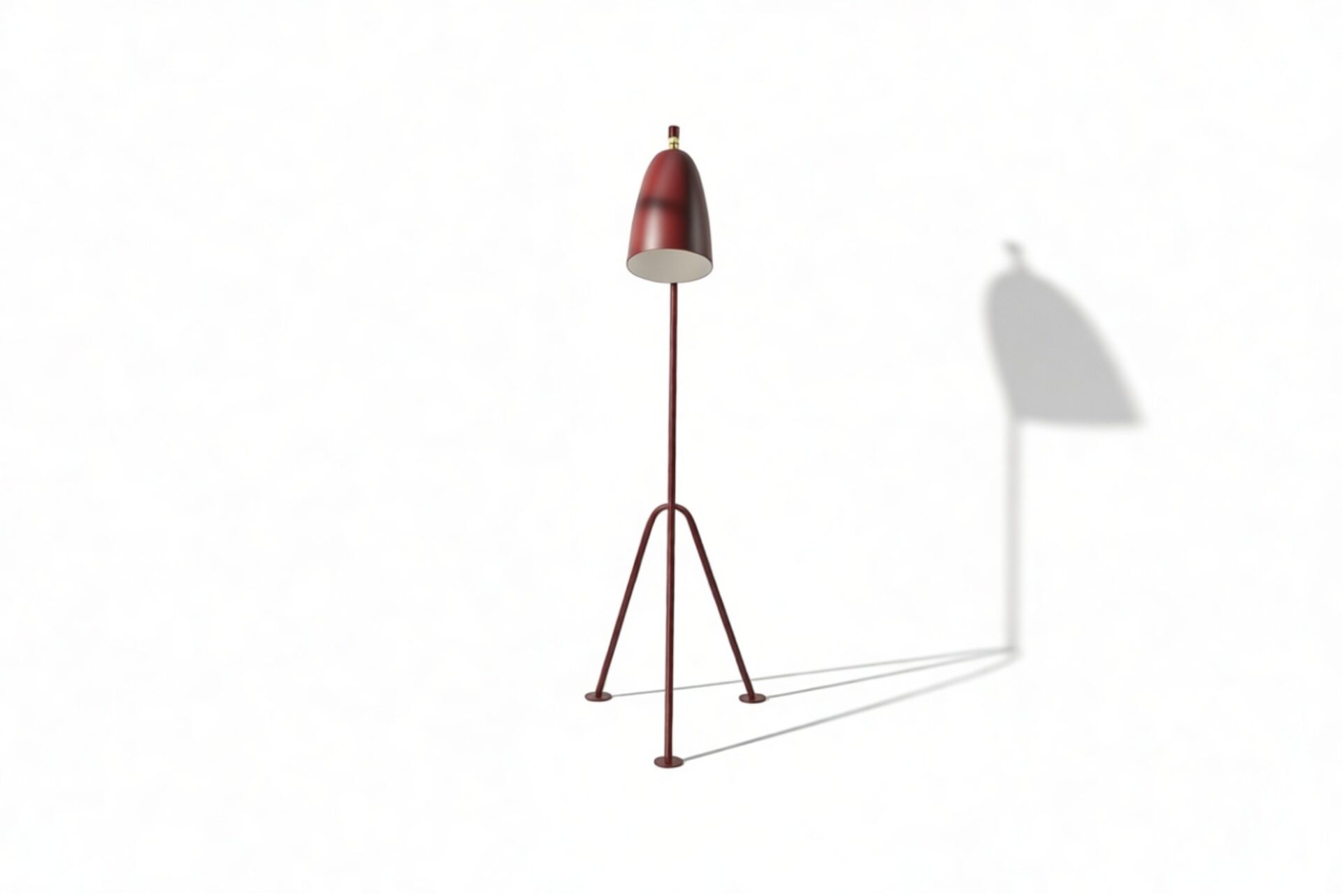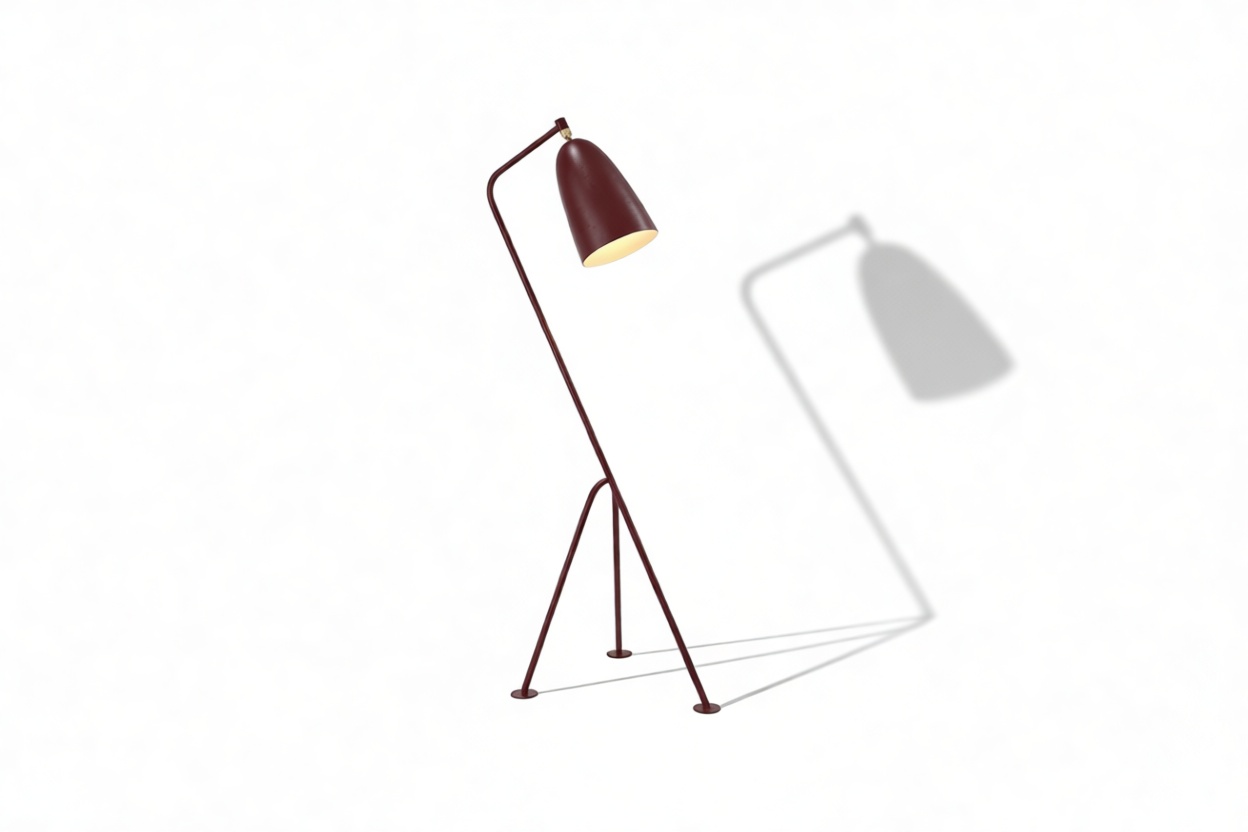 Discover the distinctive Grasshopper Floor Lamp, featuring angled carbon-steel rods for an asymmetric look inspired by the original design. Its sturdy tripod base creates stability, while the conical head allows precise light direction. Crafted from durable powder-coated steel, choose from various shades including a bright and playful burgundy option. Illuminate any space with style and quality that lasts.