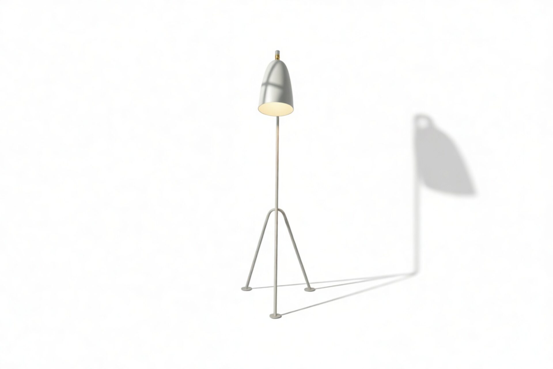 Introducing the Grasshopper Floor Lamp - a distinctive piece that captures your attention from the first glance. The stand's angled carbon-steel rods create an asymmetric and unique look, drawing inspiration from the original Grasshopper lamp design. With its tripod base and sturdy feet, this lamp not only exudes style but also ensures stability, contributing to its unconventional profile.
