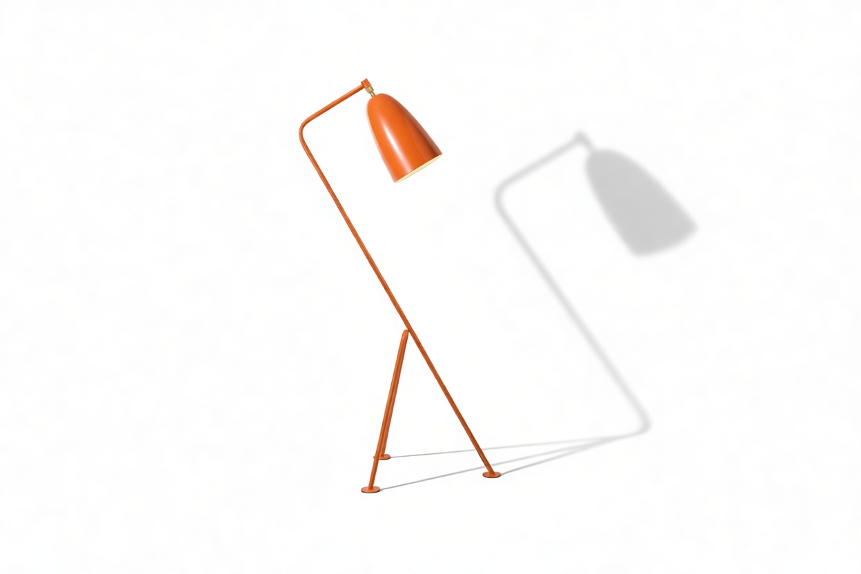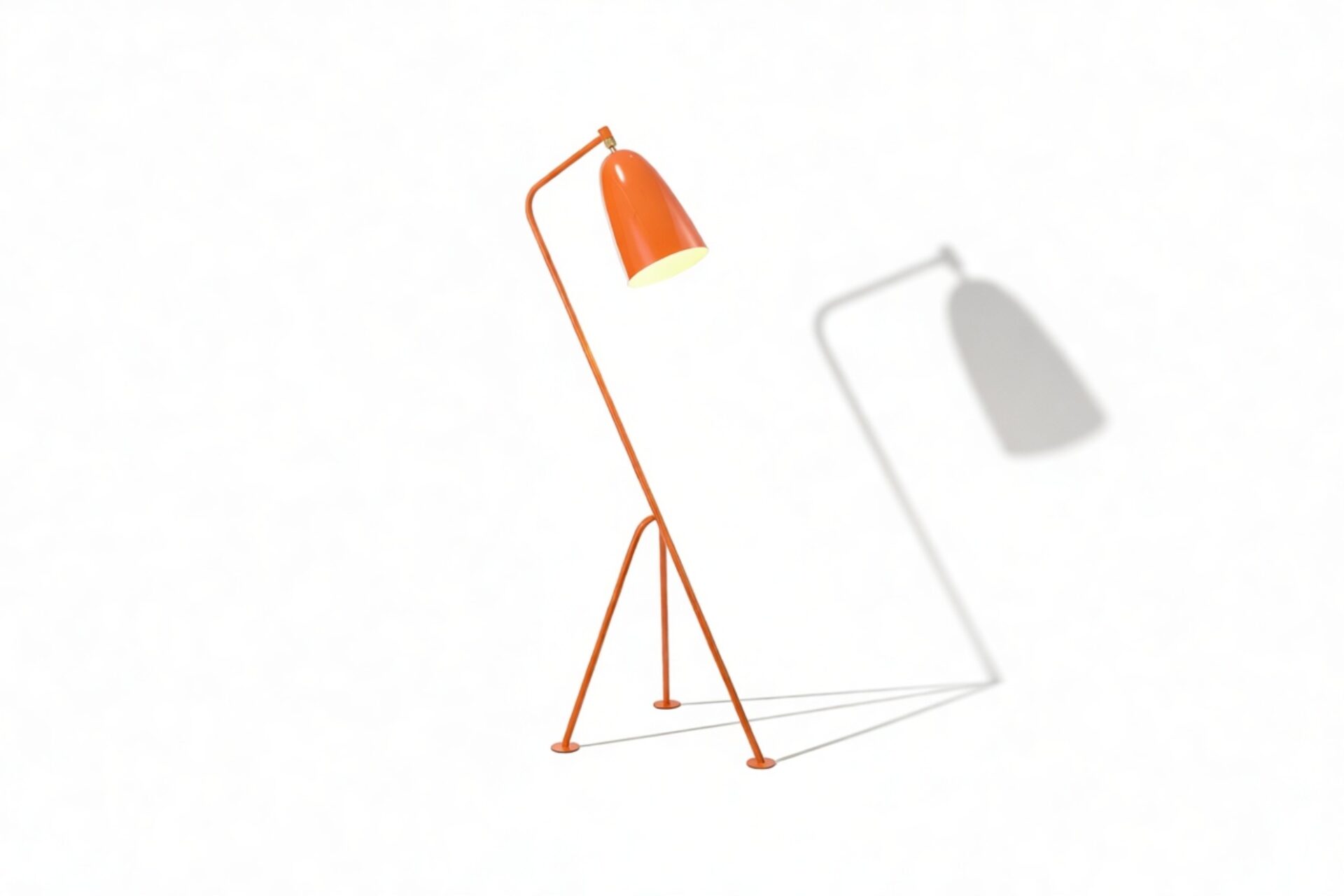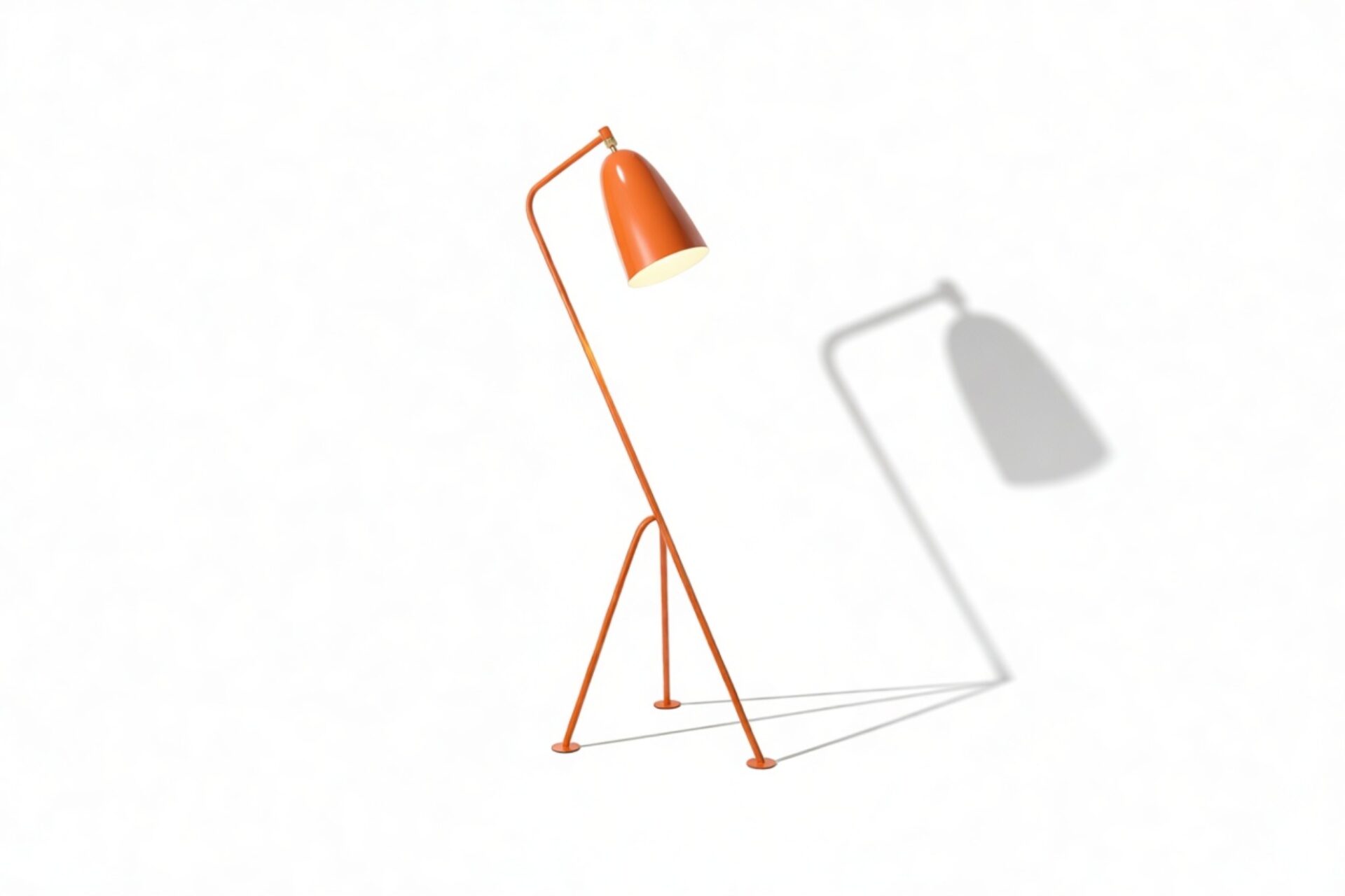 Discover the Grasshopper Floor Lamp, a masterpiece that stands out with its angled carbon-steel rods inspired by the original design. The tripod base ensures stability, while the vivid orange shade adds a playful touch. Its conical head offers precise lighting direction, making it perfect for any room. Crafted from durable powder-coated steel, this lamp guarantees an everlasting statement piece.