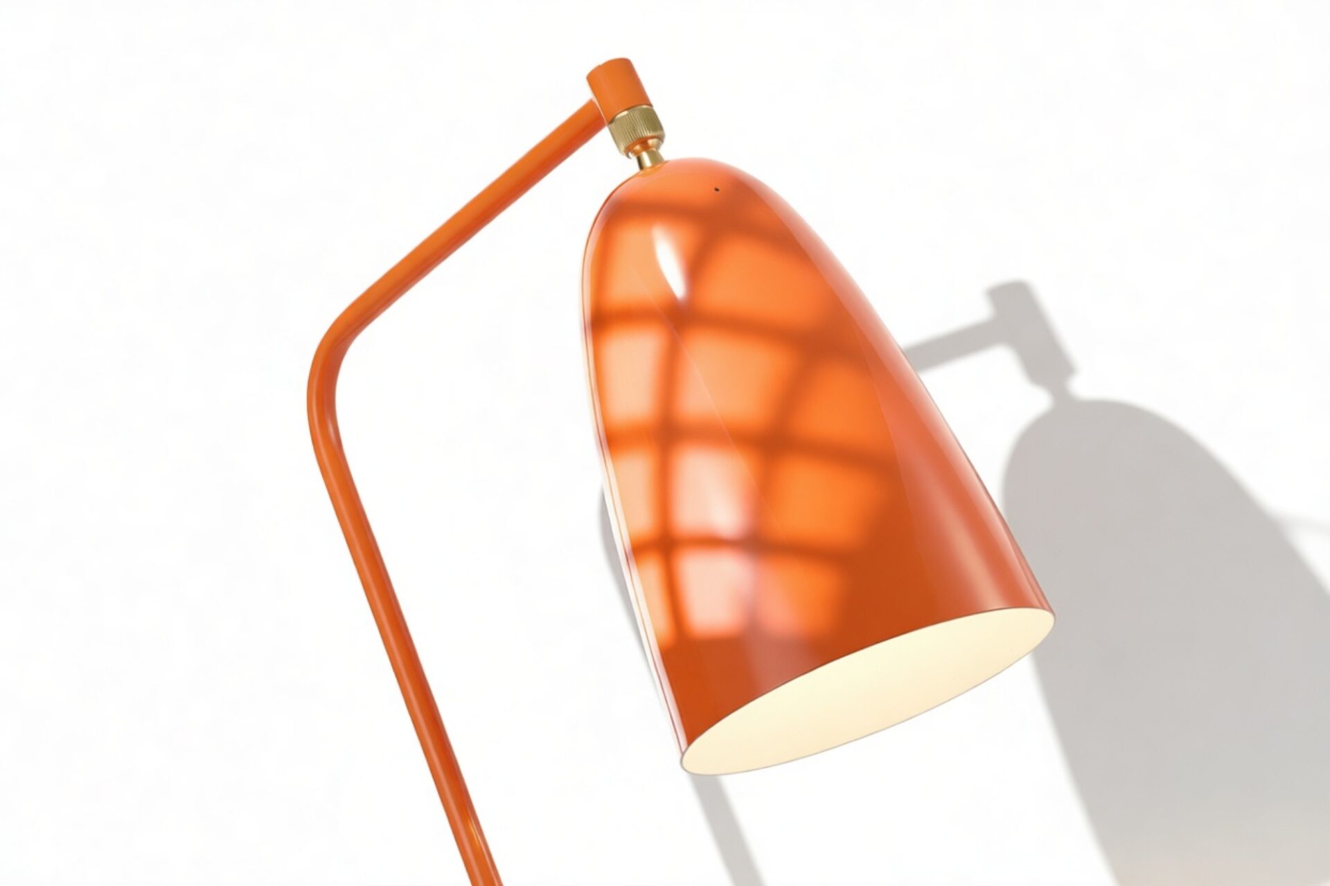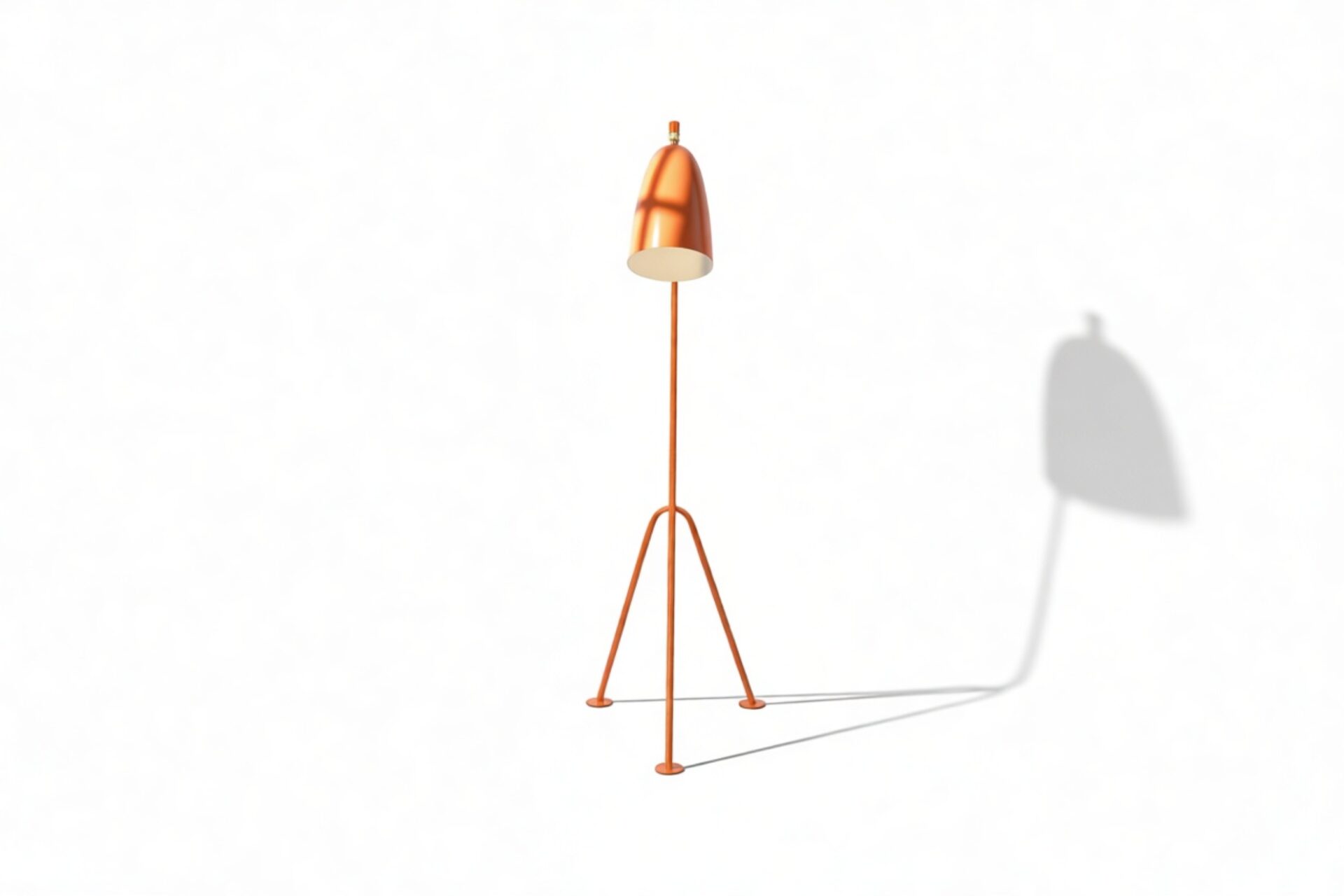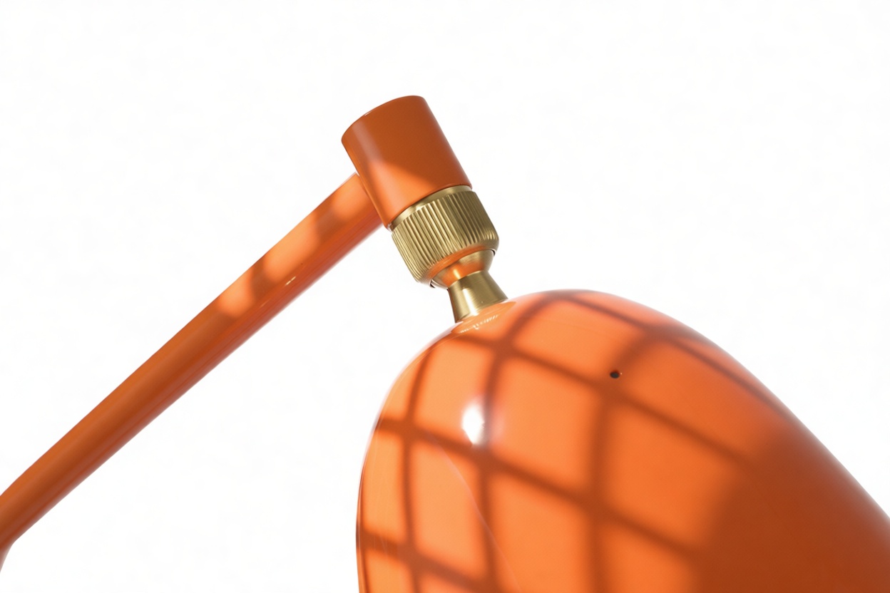 Discover the Grasshopper Floor Lamp, a masterpiece that stands out with its angled carbon-steel rods inspired by the original design. The tripod base ensures stability, while the vivid orange shade adds a playful touch. Its conical head offers precise lighting direction, making it perfect for any room. Crafted from durable powder-coated steel, this lamp guarantees an everlasting statement piece.