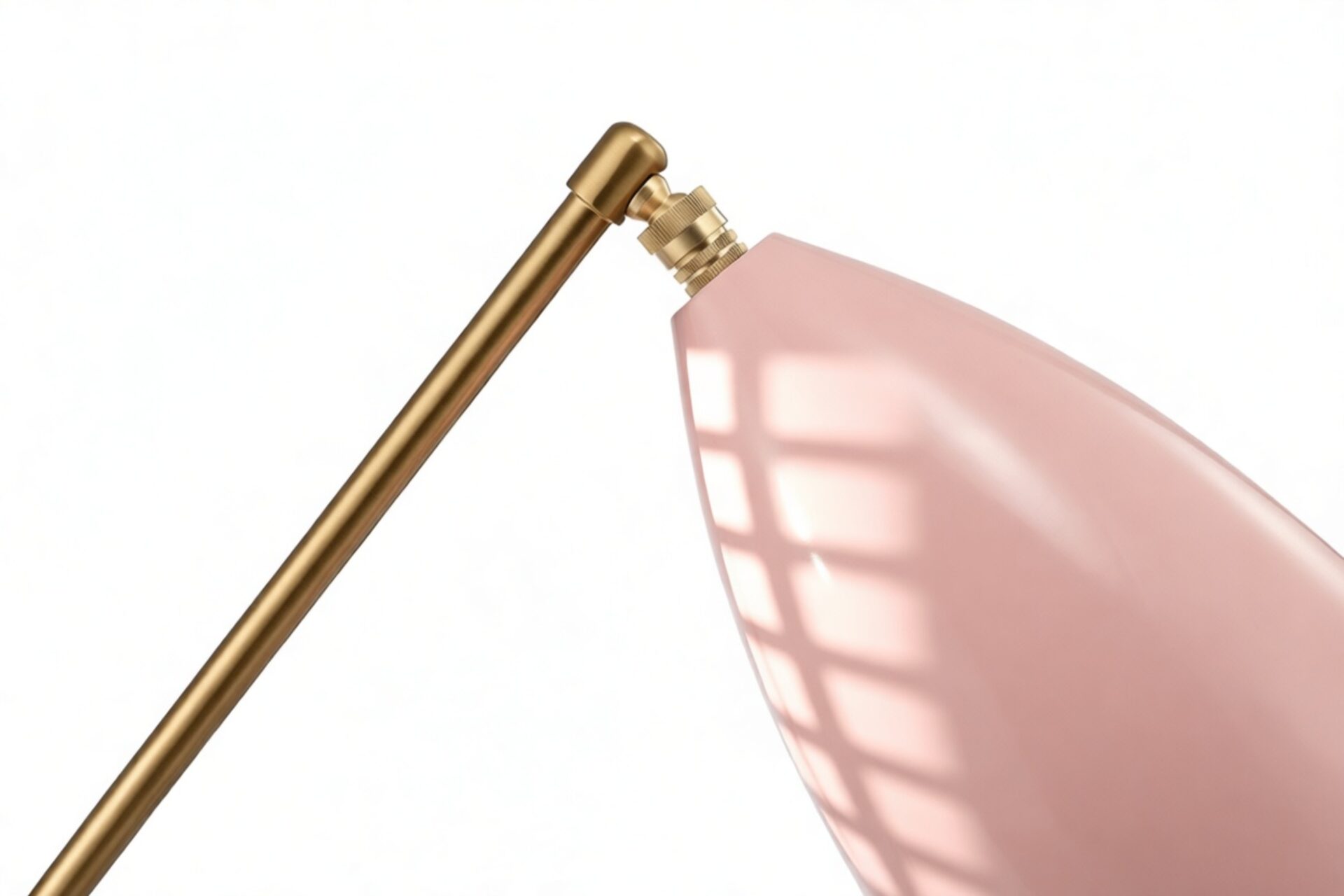Introducing the captivating Grasshopper Table Lamp in Pink - a stylish and functional lighting solution that exudes elegance. Crafted from durable powder-coated steel, its unique design features angled carbon-steel rods for an asymmetric look. The swiveling conical head provides precise illumination control, ensuring a soothing ambiance without harsh glare. Perfect for any space, this lamp offers personalized lighting for years to come.