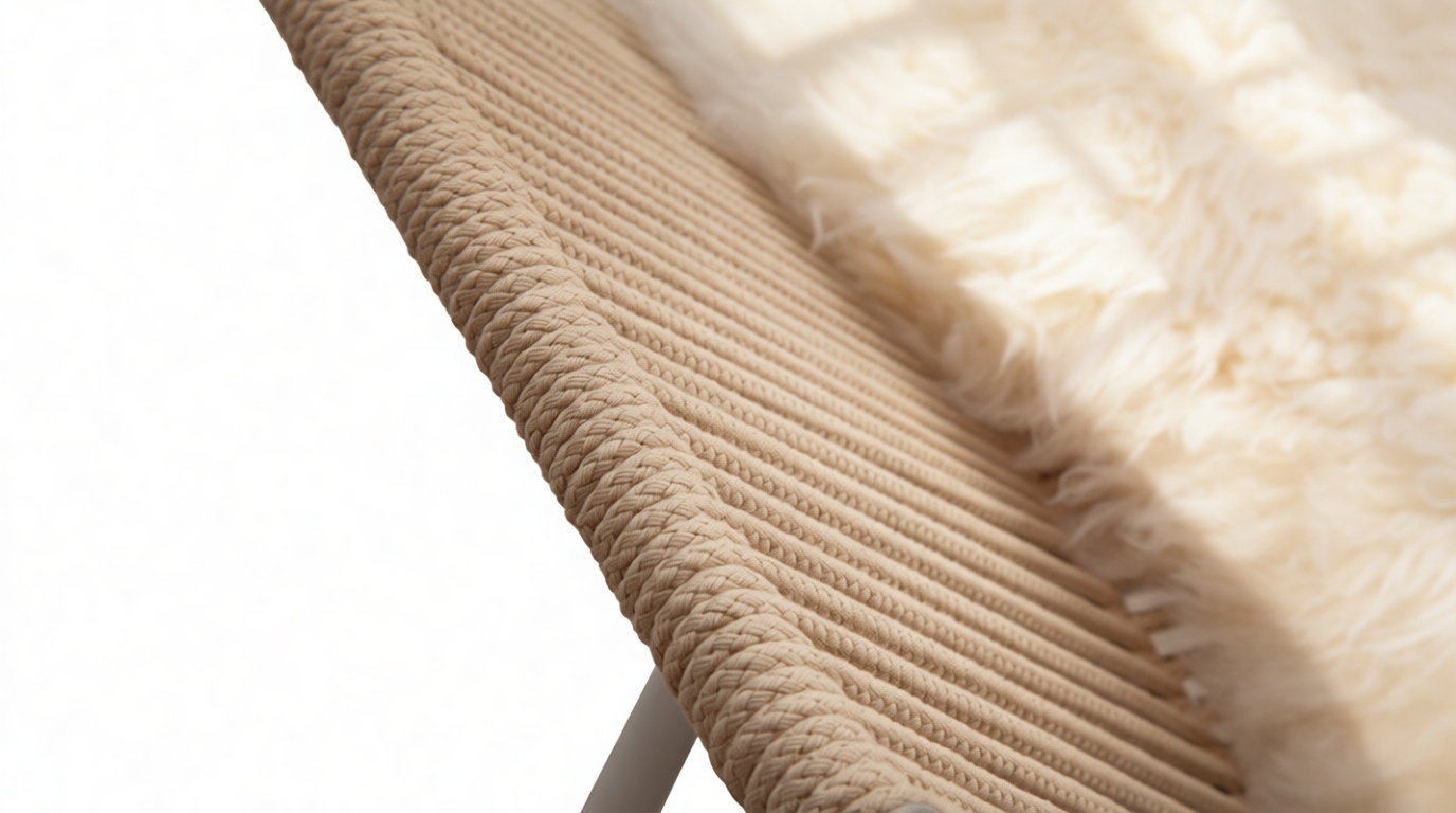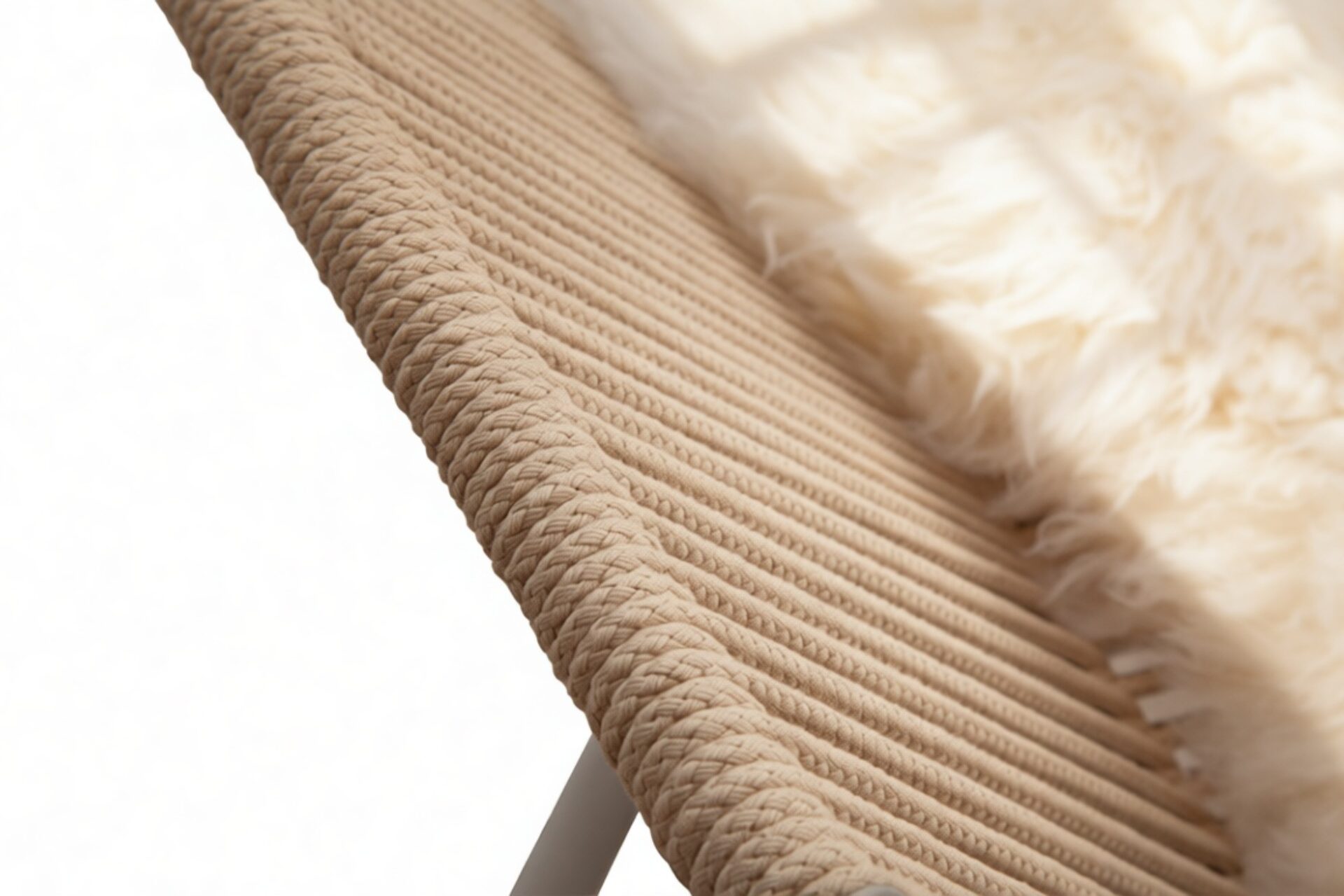 The chair known as "Ropeweave Chair" takes its name from the nautical term for a rope and boasts a distinctive woven pattern that elegantly envelops the frame, enhancing both its visual appeal and providing ergonomic support. Constructed from sturdy stainless steel, the chair's frame offers exceptional durability and exudes an industrial yet refined charm. Designed with ergonomics in mind, this chair aims to create a cozy and welcoming atmosphere for relaxation. With its unique aesthetics, this chair stands out in the realm of contemporary furniture, blending form, functionality, and comfort seamlessly.