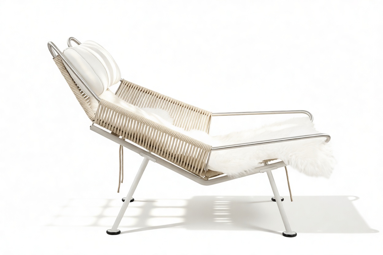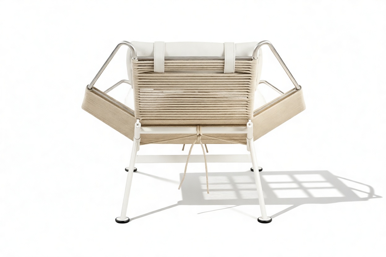 The chair known as "Ropeweave Chair" takes its name from the nautical term for a rope and boasts a distinctive woven pattern that elegantly envelops the frame, enhancing both its visual appeal and providing ergonomic support. Constructed from sturdy stainless steel, the chair's frame offers exceptional durability and exudes an industrial yet refined charm. Designed with ergonomics in mind, this chair aims to create a cozy and welcoming atmosphere for relaxation. With its unique aesthetics, this chair stands out in the realm of contemporary furniture, blending form, functionality, and comfort seamlessly.