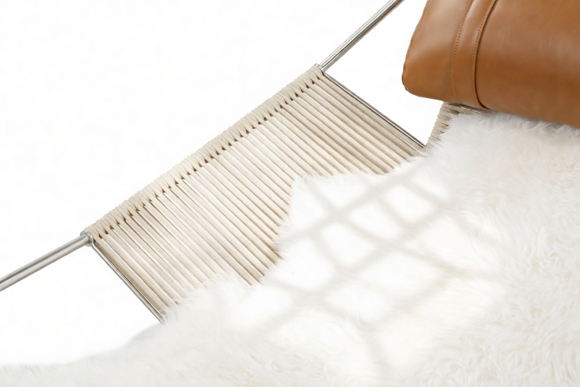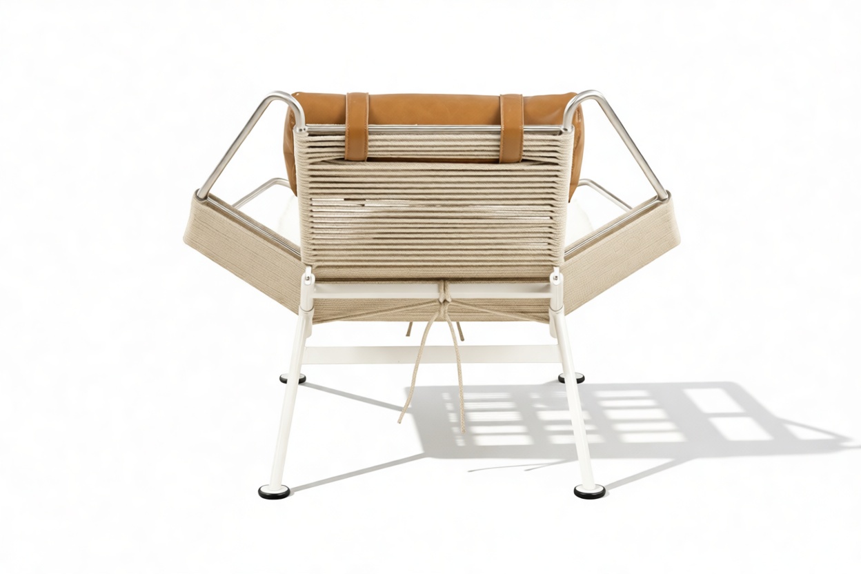 Introducing the "Ropeweave Chair," a fusion of durability and elegance. Crafted from robust stainless steel, its unique woven pattern offers ergonomic support with an industrial yet refined charm. Designed for comfort and style, this chair stands out in modern furniture. Explore the Halyard Chair in Tan Premium Leather, embodying mid-century modern design principles with a touch of Danish heritage. Elevate your space with this innovative seating solution that sparks engaging conversations.