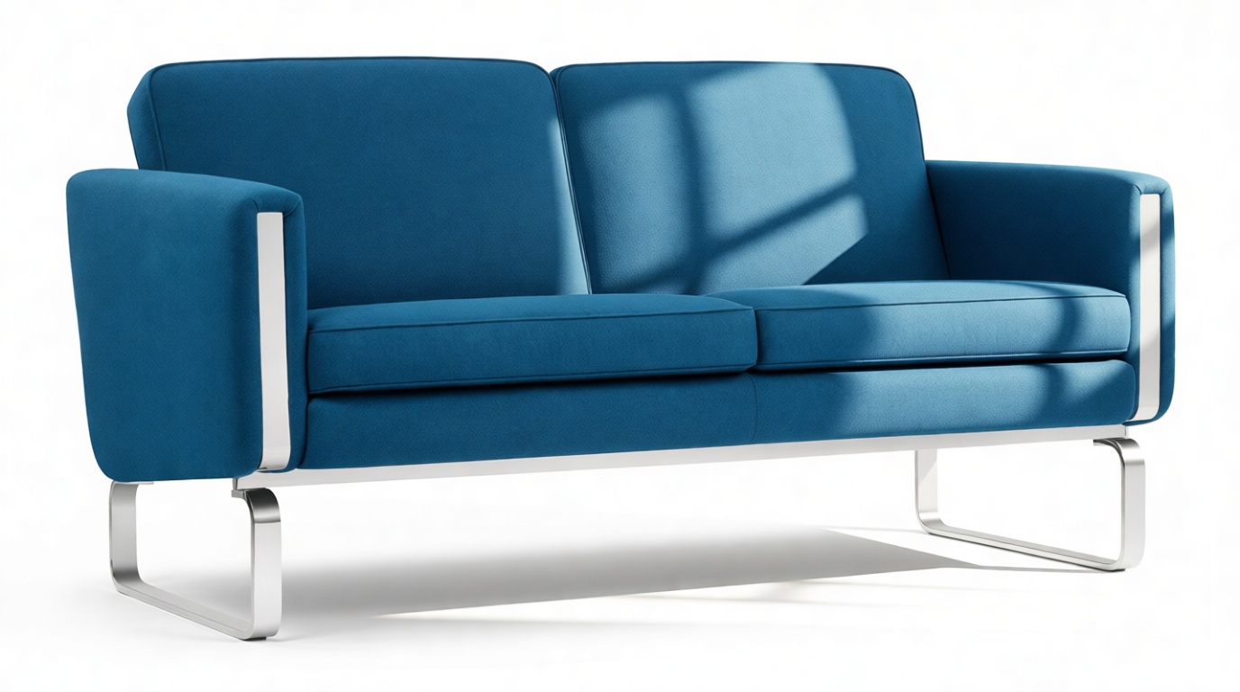 Experience the epitome of mid-century design with a contemporary twist in the Hans Sofa. Featuring clean lines and luxurious blue wool upholstery, this piece exudes sophistication. The addition of shiny steel accents adds a touch of elegance, making it a captivating choice for any chic interior.