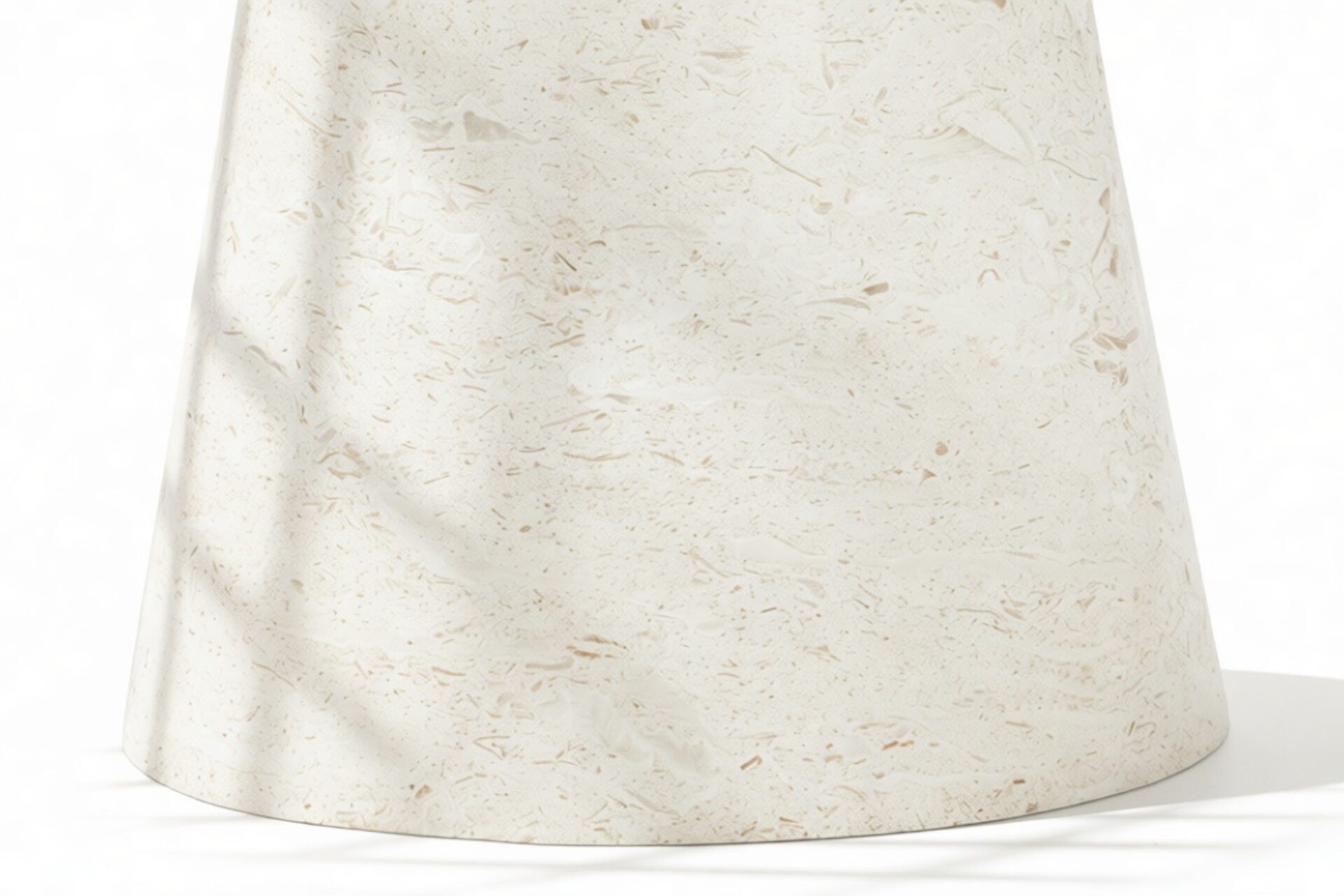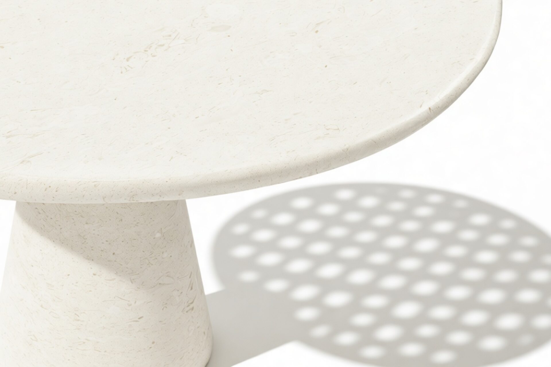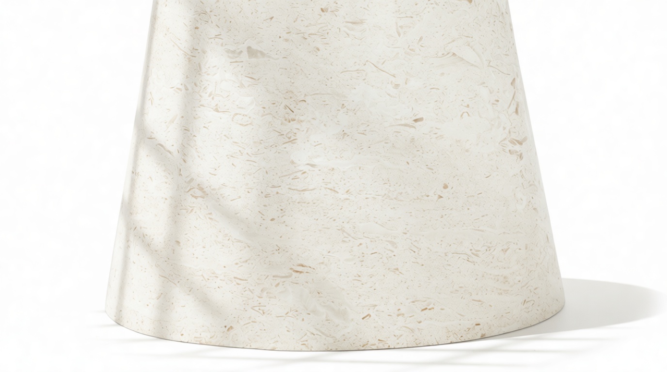 The meticulously crafted conical pedestal base offers stability and artistic allure with its precise construction. Its sleek lines and tapered design elegantly match the circular tabletop, creating a harmonious visual balance that embodies modern sophistication.