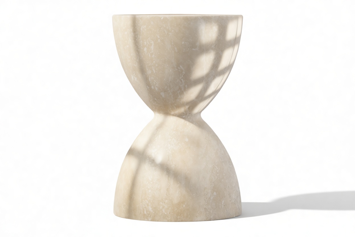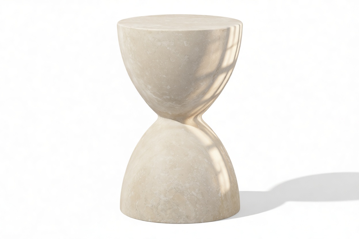 Introducing the Helios Side Table, which boasts a distinctive hourglass silhouette that brings an air of refinement and grace to any room. This exquisite piece highlights the inherent allure of travertine stone, displaying characteristic veining and texture that ensure each table is a truly unique work of art.