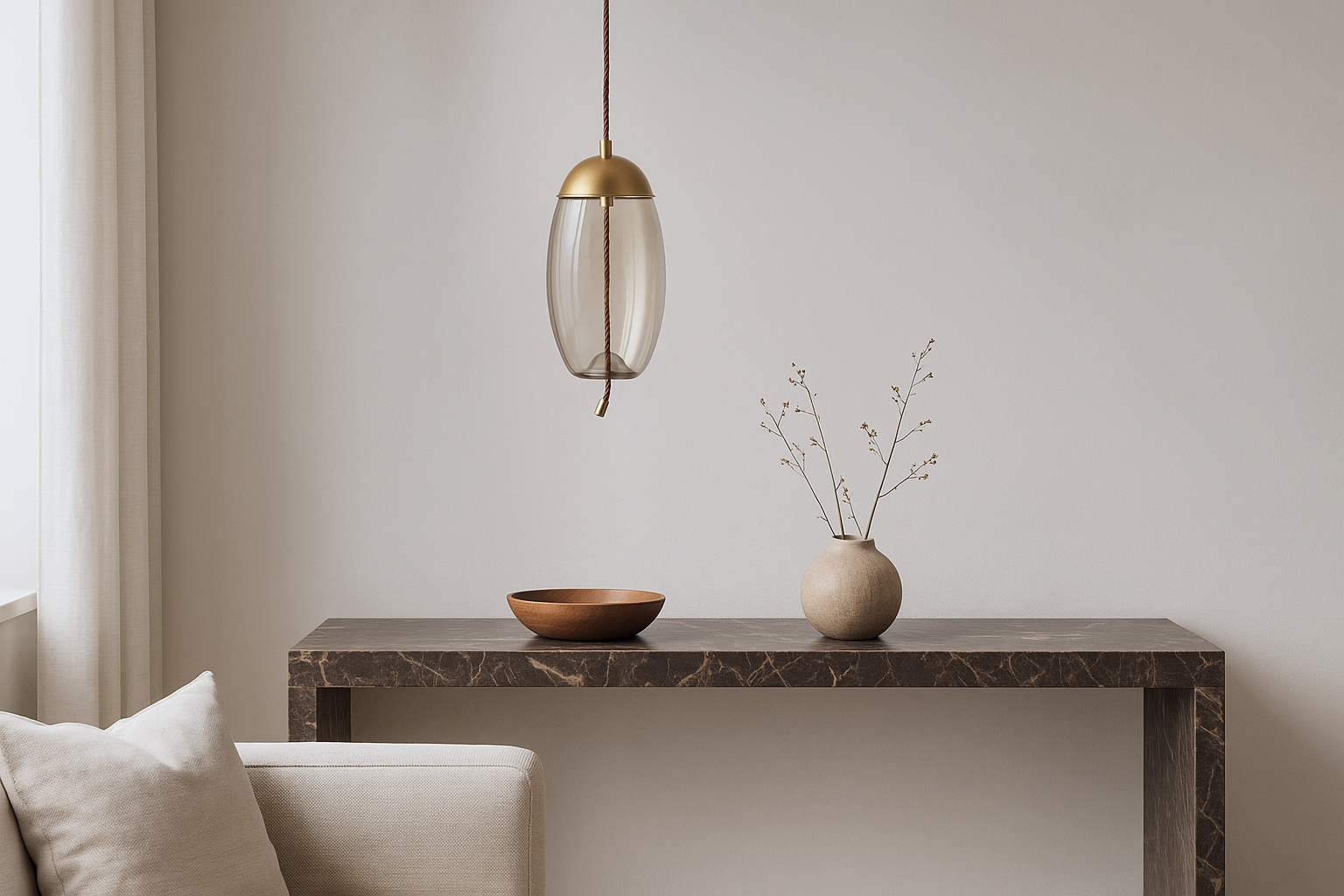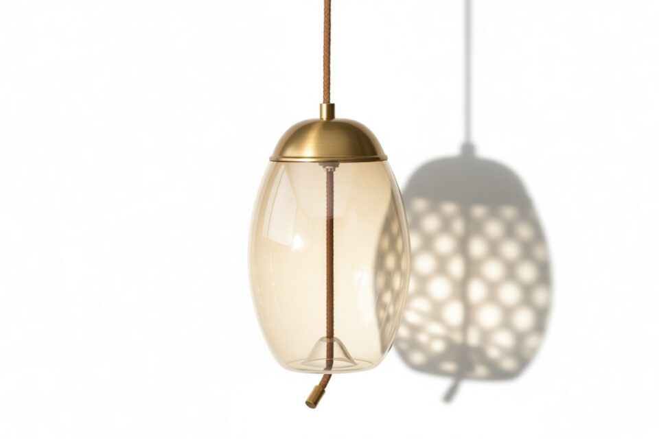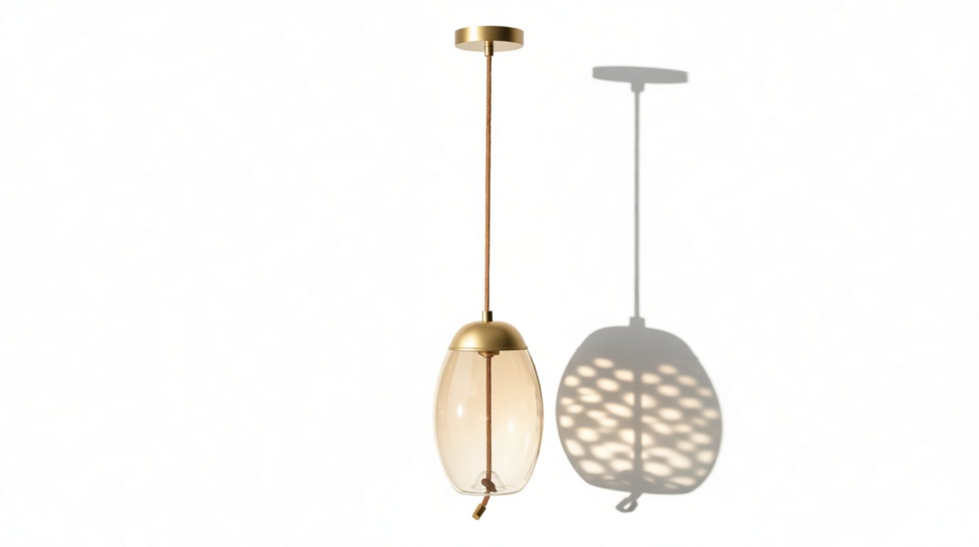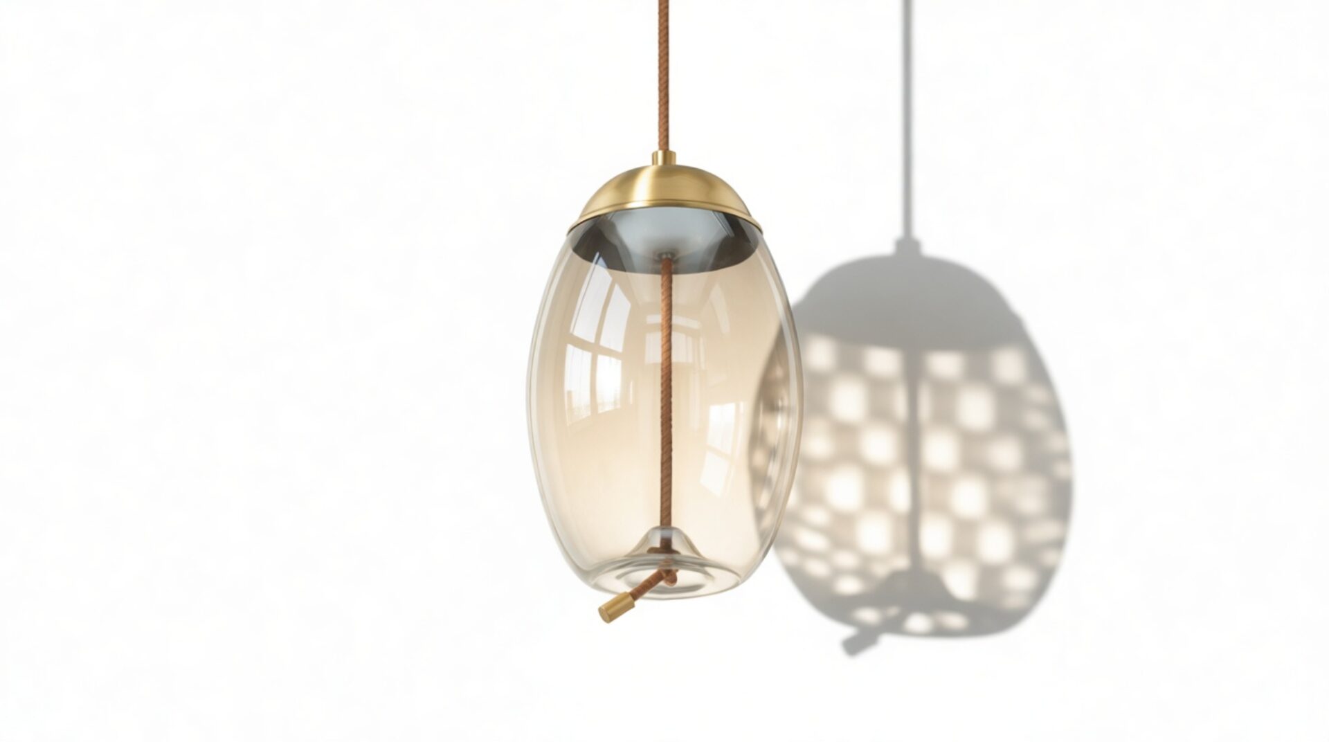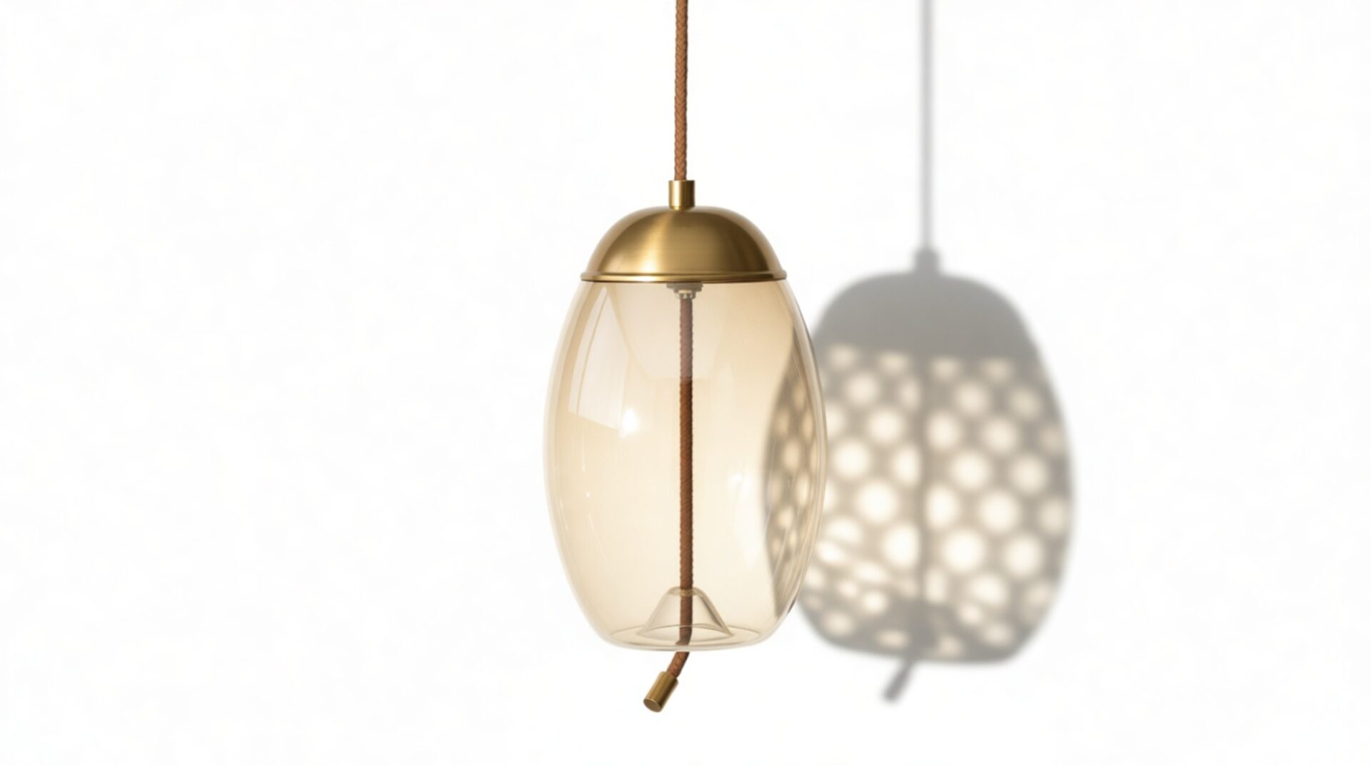 Discover our exquisite pendant, meticulously assembled with premium materials like the gentle amber-colored glass, resilient iron fittings with a brass finish, and distinctive rope detailing for enhanced texture.