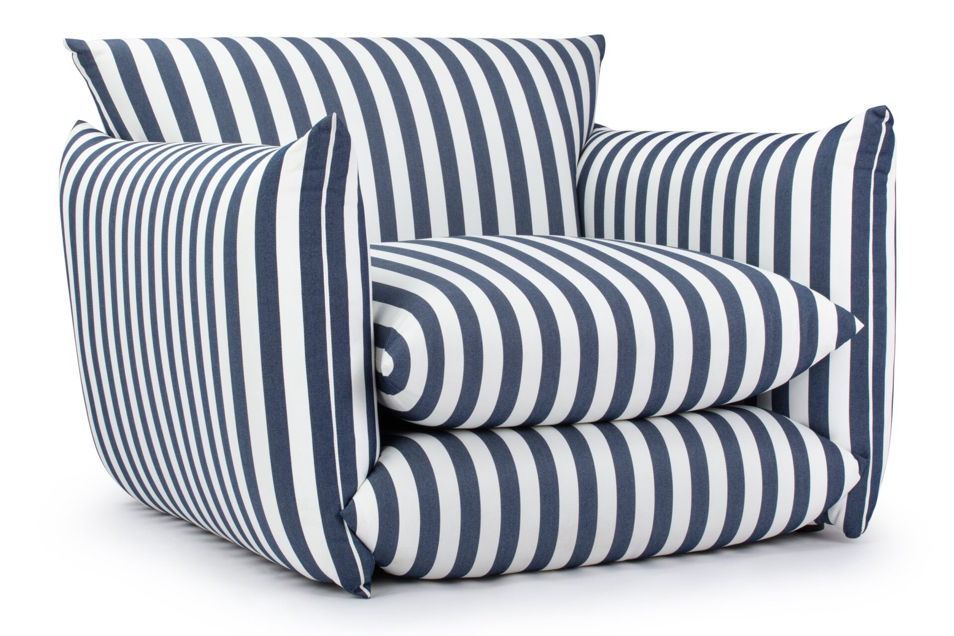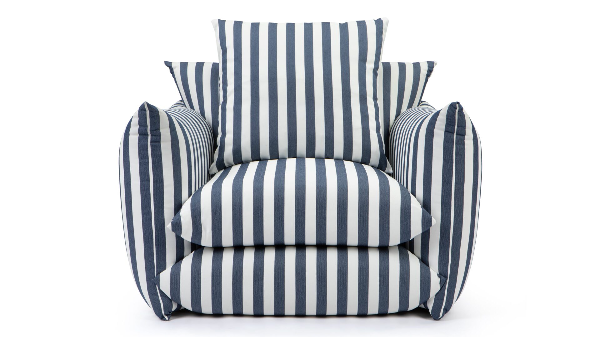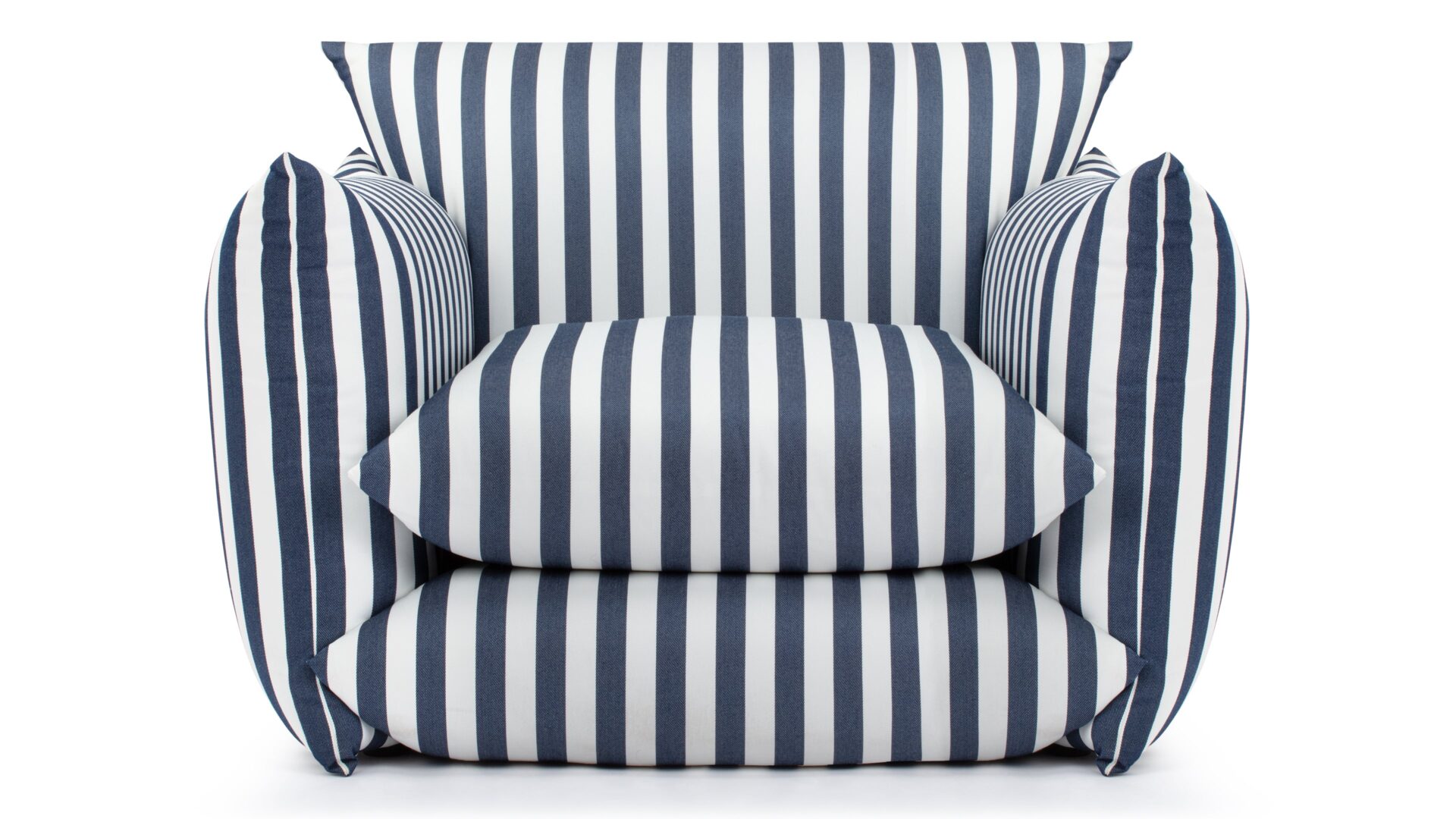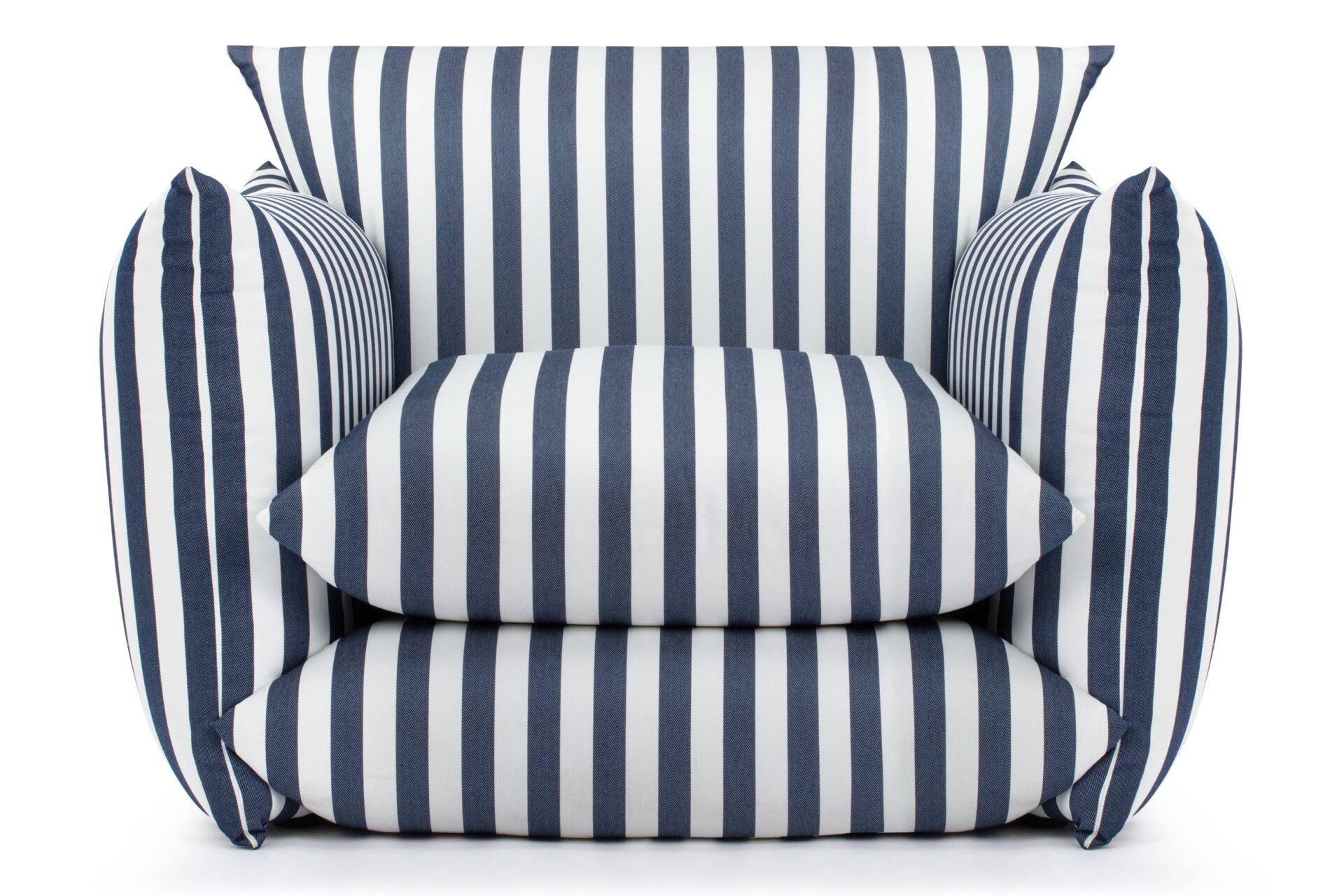 Experience unparalleled comfort and style with the Hoxton Chair. Featuring oversized, pillow-like cushions complemented by a striking navy and white striped design, this chair offers a visually bold yet irresistibly cozy seating option.