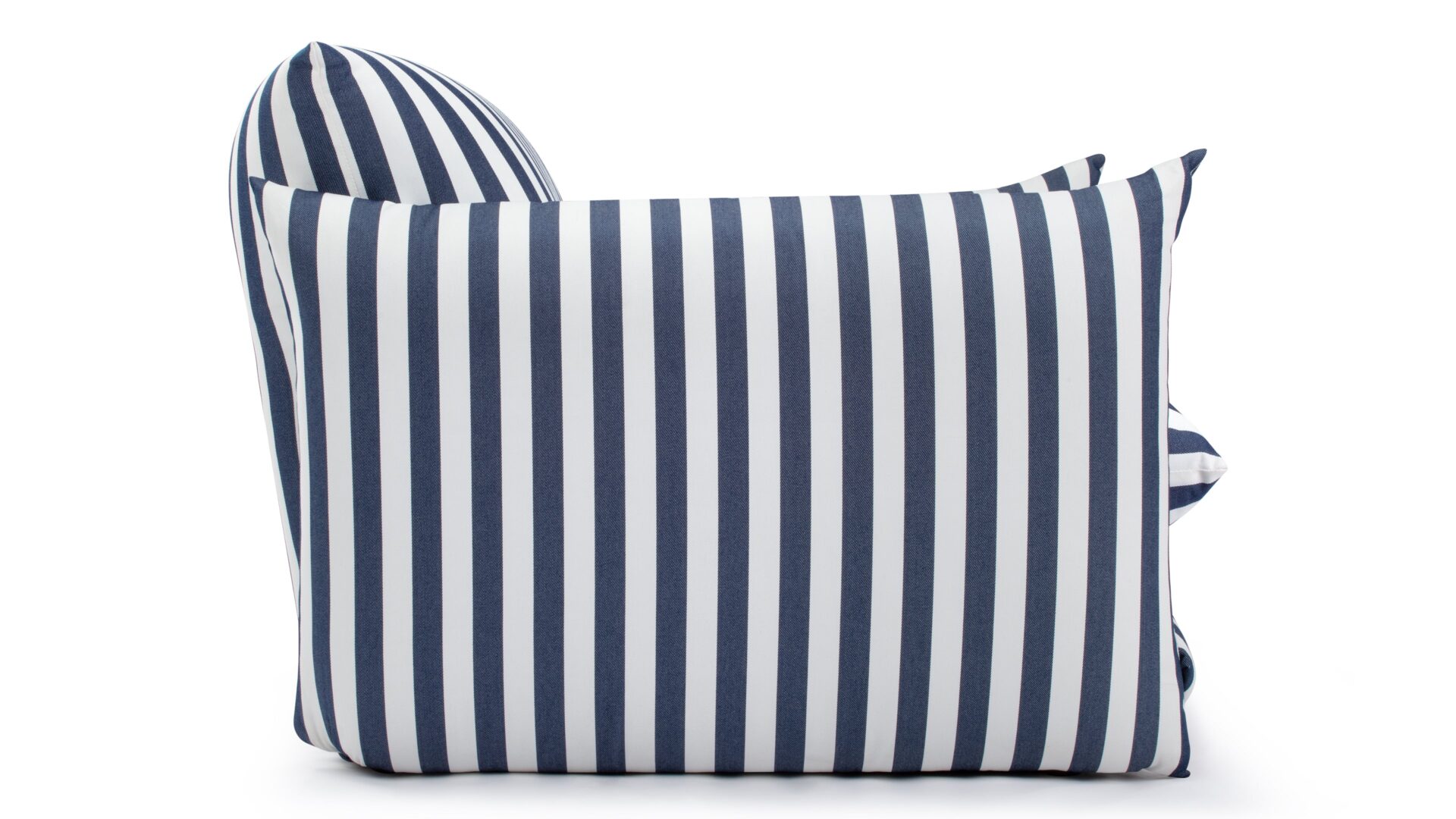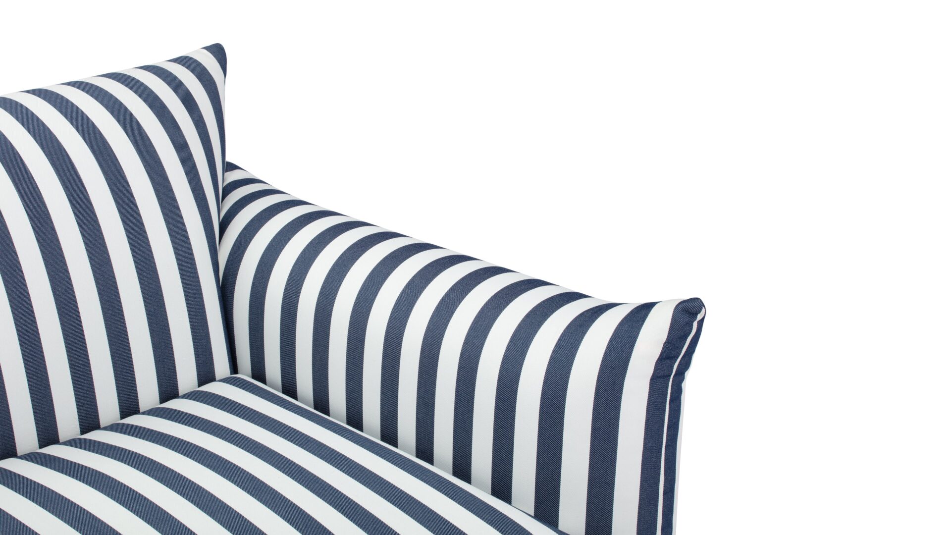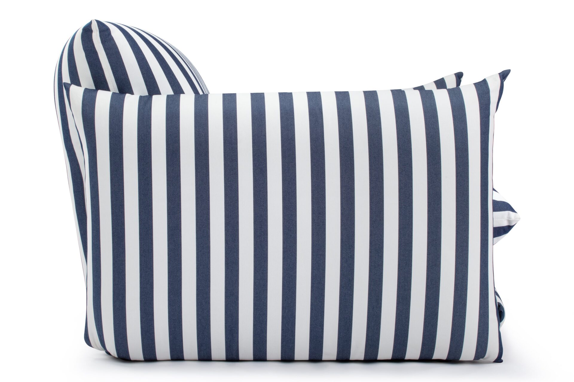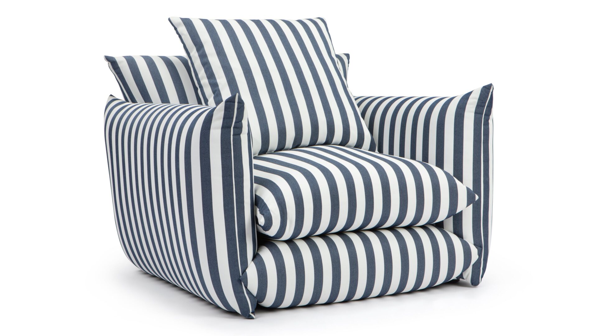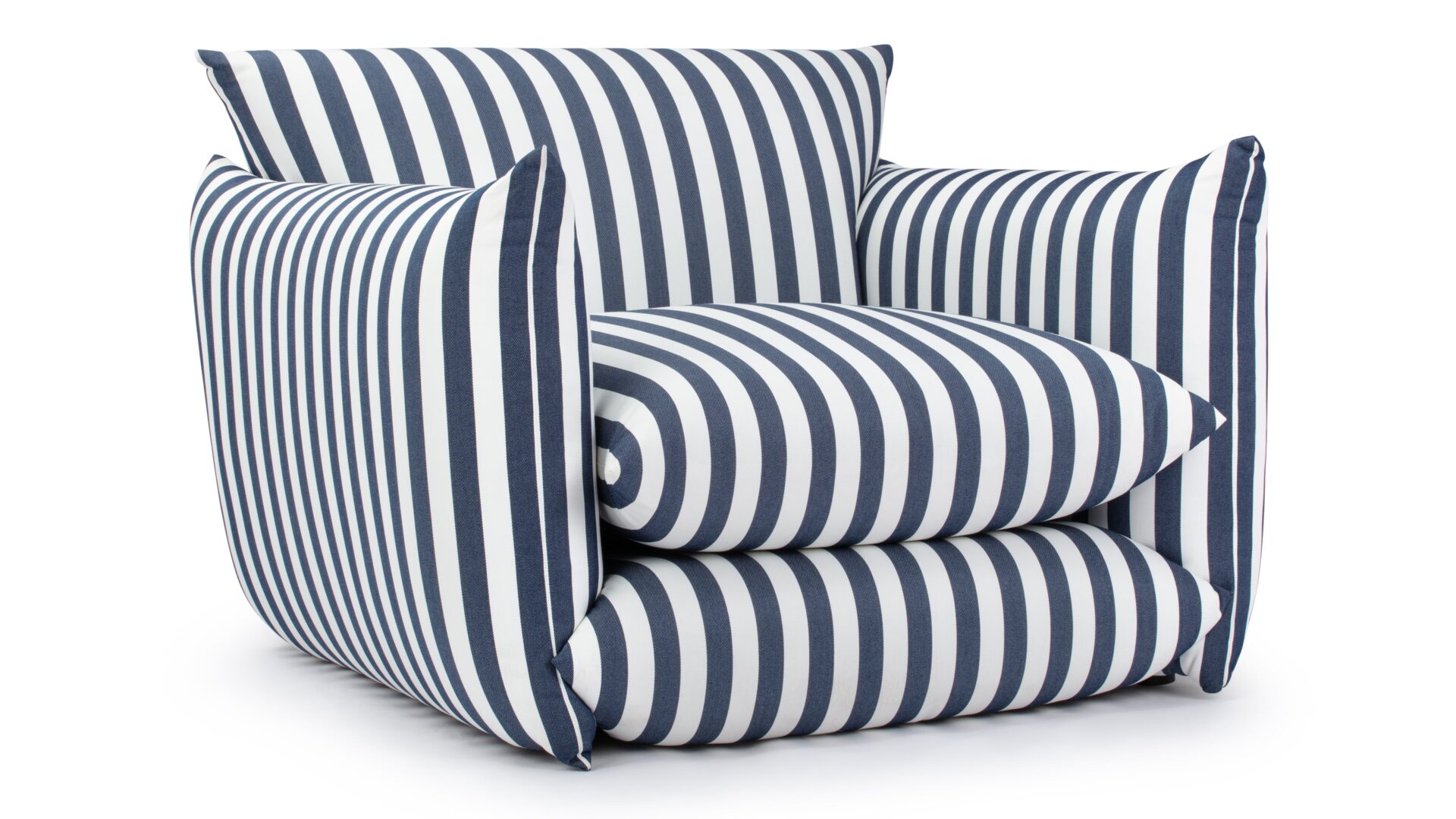 Experience unparalleled comfort and style with the Hoxton Chair. Featuring oversized, pillow-like cushions complemented by a striking navy and white striped design, this chair offers a visually bold yet irresistibly cozy seating option.