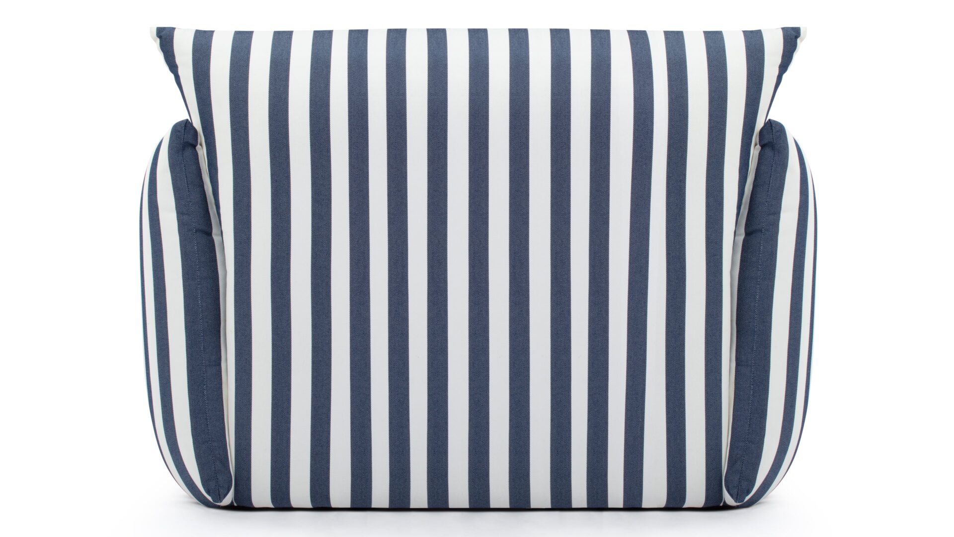 Experience unparalleled comfort and style with the Hoxton Chair, a cozy yet stylish seating option boasting oversized, pillow-like cushions for a plush and inviting feel. Its striking navy blue and white striped pattern adds a contemporary touch, making it a standout piece for modern and playful decor. Versatile in design, this chair effortlessly complements patios, balconies, or indoor lounging areas while providing both comfort and aesthetic appeal. Constructed with outdoor-friendly materials, the chair is specially made to withstand various weather conditions, ensuring lasting durability. Despite its sumptuous build, it remains lightweight yet sturdy, allowing for easy mobility without sacrificing stability. Whether you prefer an outdoor oasis or a snug indoor retreat, the Hoxton Chair delivers a perfect fusion of functionality and elegance.