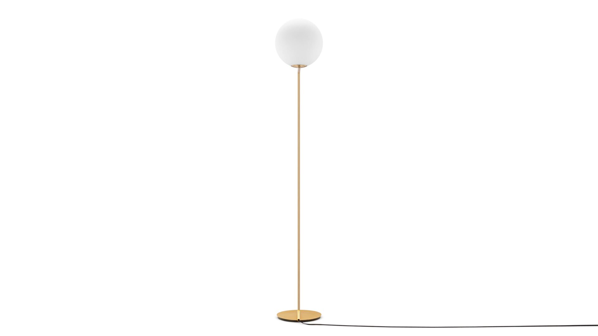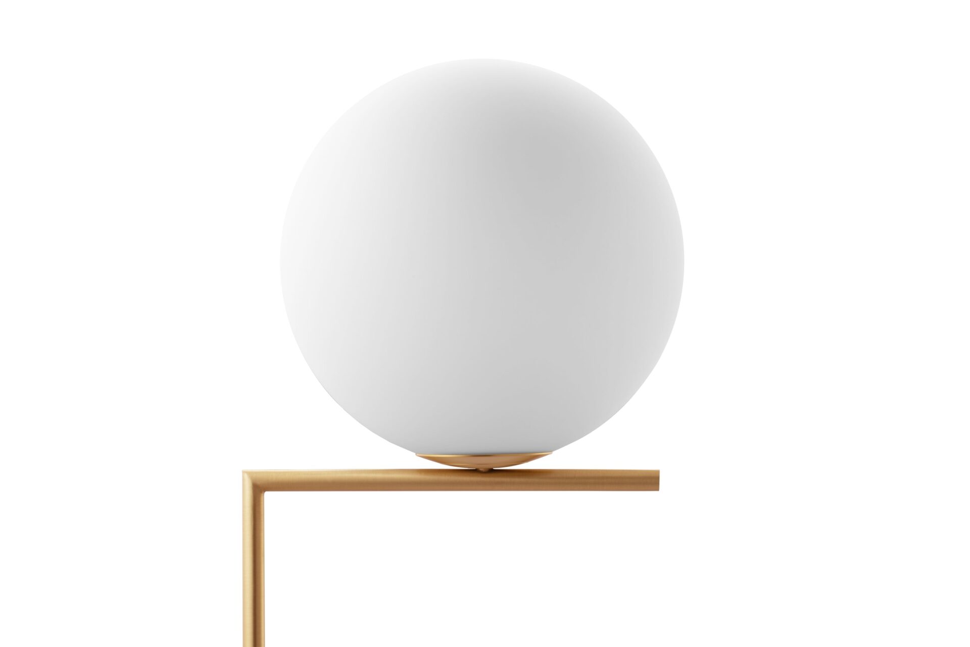Elevate your space with the chic and stylish IC Floor Lamp from the IC Lights Collection, drawing inspiration from the glamour of the 1920s. The opulent brass finish adds a sense of luxury to your room while the opaline glass sphere exudes a timeless elegance. Combining a classic aesthetic with a modern charm, this lamp is a perfect addition to any contemporary setting, offering a sleek and atmospheric lighting experience that enhances the ambiance of your space. Discover the allure of balance and design with the IC Lights collection, where premium materials and minimalist aesthetics converge to create a visually striking piece that pays tribute to singular inspiration.