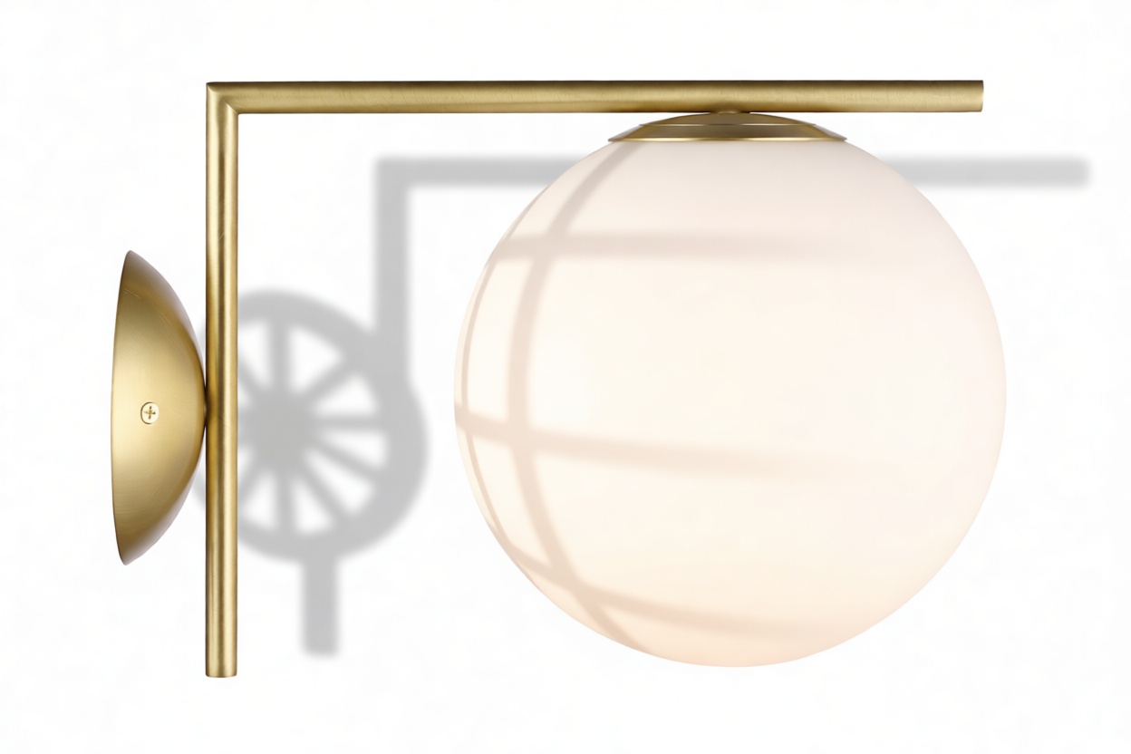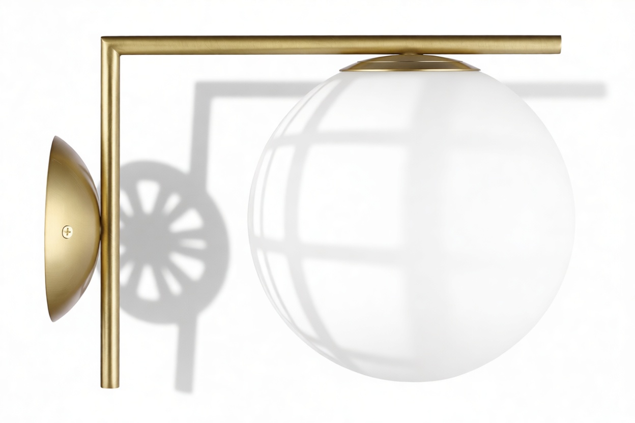 Undoubtedly a stunning embodiment of beauty and elegance, the IC Wall Light draws inspiration from the poise and grace of a skilled juggler. This sconce showcases an L-shaped metal bracket that seemingly suspends the opaline glass orb as if by magic. The goal of creating the illusion of weightlessness for the orb is flawlessly achieved, resulting in a piece that is both visually captivating and sophisticated. Crafted from high-quality materials, this sconce offers versatile mounting options.