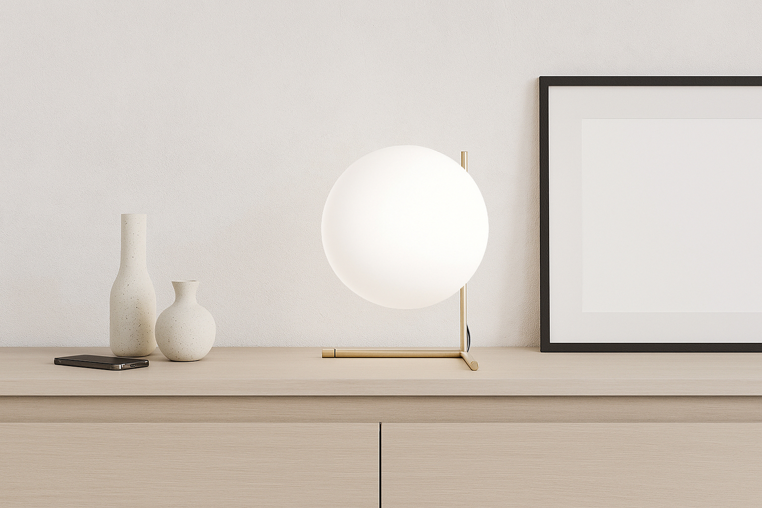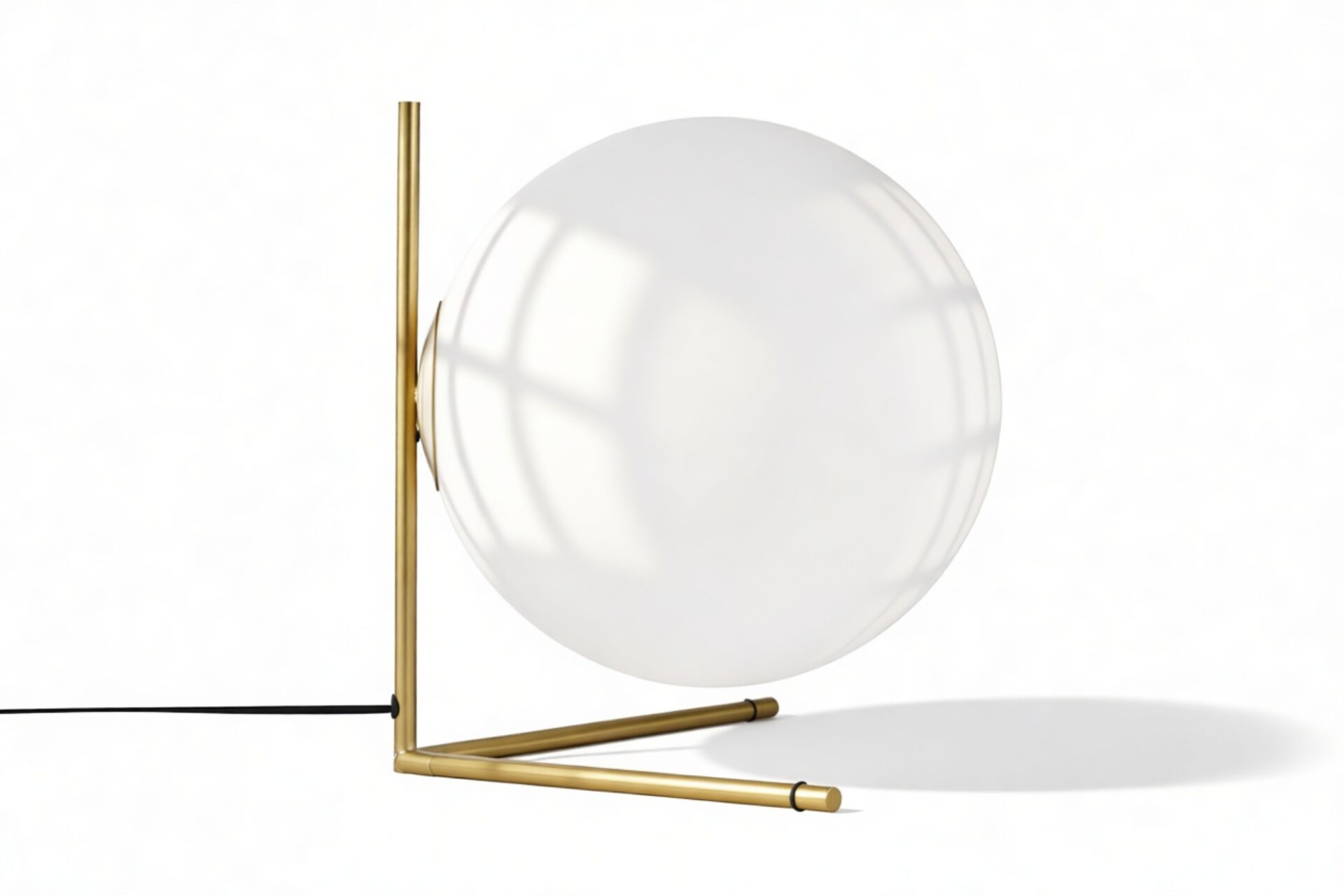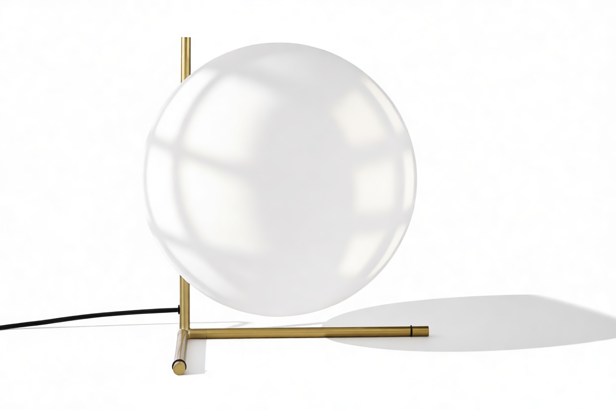 Meticulously crafted with a steel frame and offered in brushed brass, chrome, and black finishes, this modern table lamp features a striking blown-glass opal diffuser that rests elegantly on its slim stem. The IC T2 Table Lamp is skillfully designed to provide gentle ambient illumination.