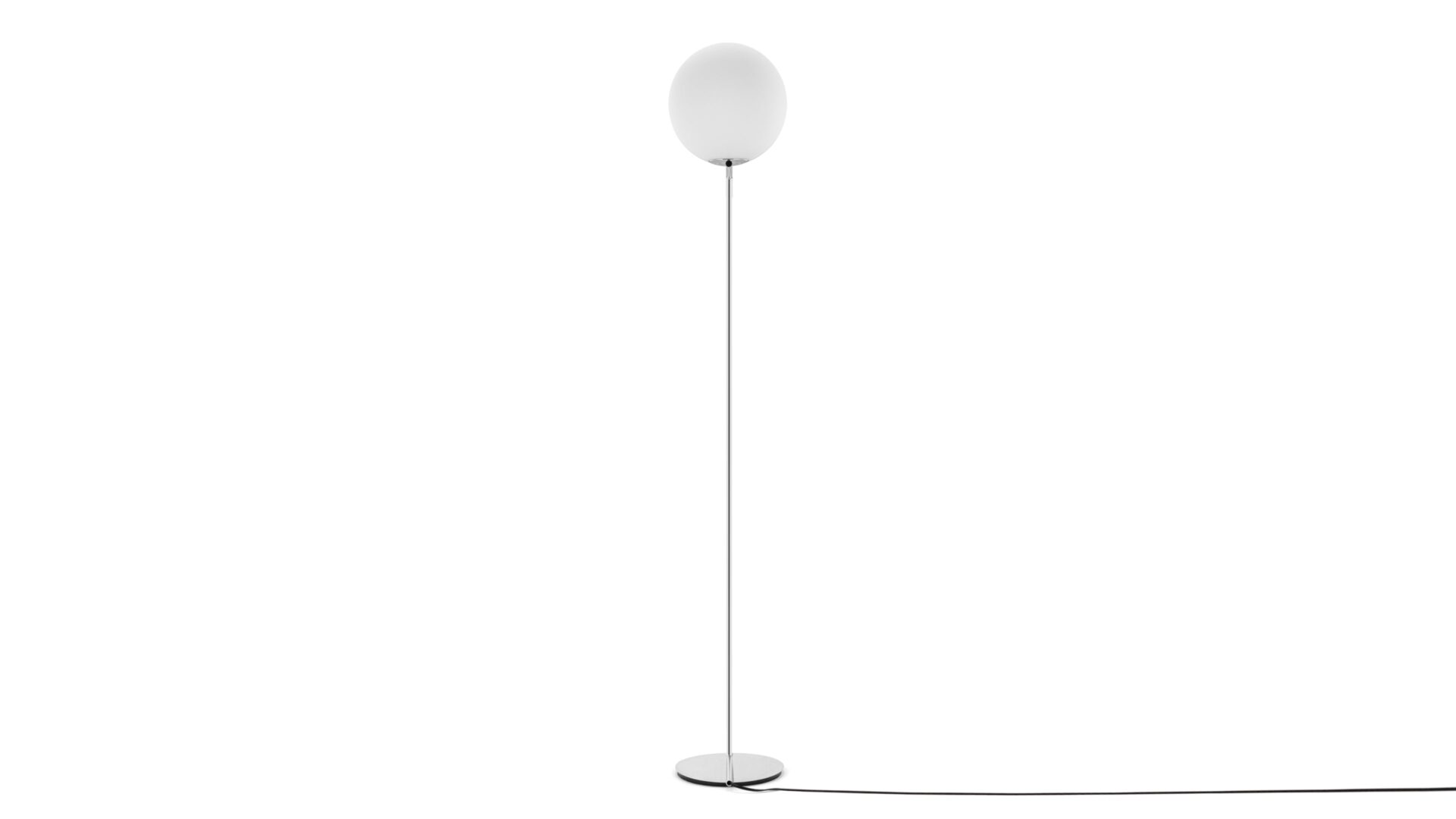The IC Lights collection draws inspiration from the artistry of a skilled juggler. This sophisticated floor lamp features an opaline glass sphere and a sleek, understated frame that seem to unite in a gravity-defying manner. The design embodies a playful and refined exploration of balance. Simple yet visually striking, the IC Lights collection serves as a tribute to the allure resulting from singular inspiration, premium materials, and minimalist aesthetics.