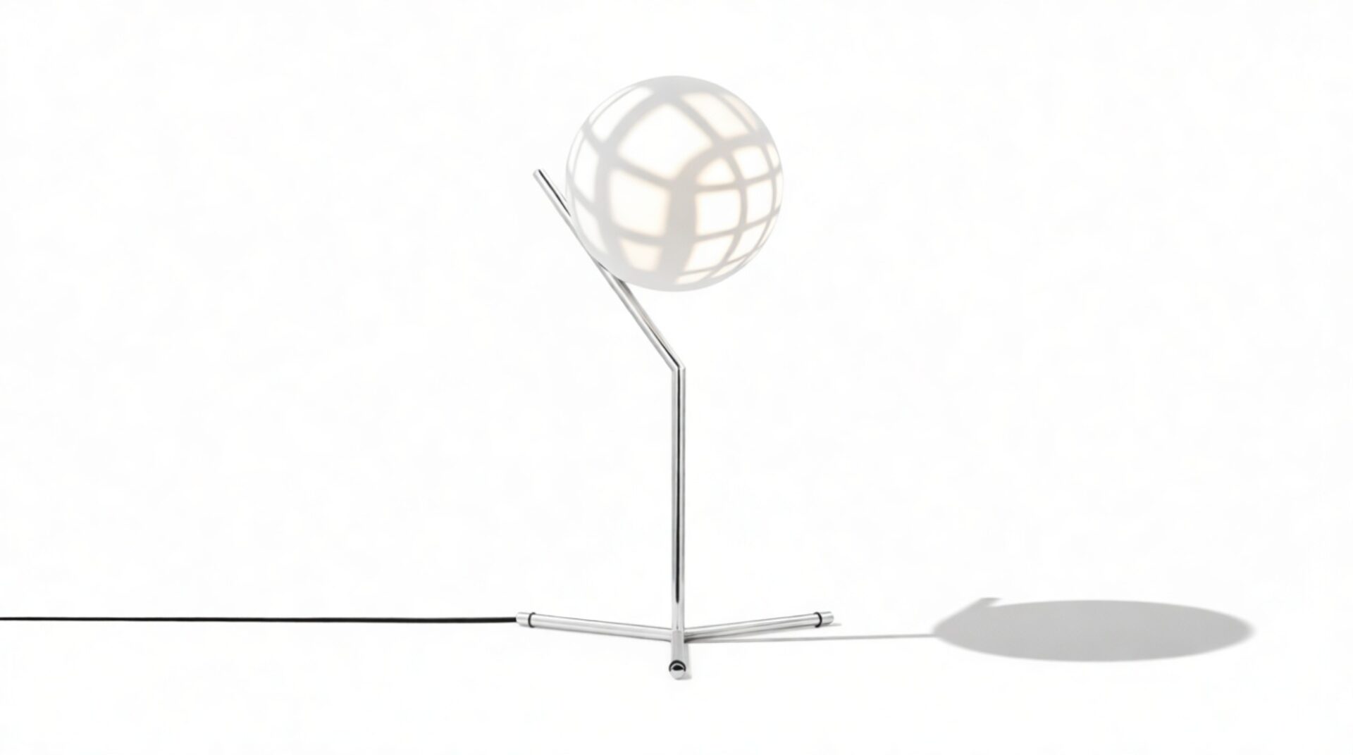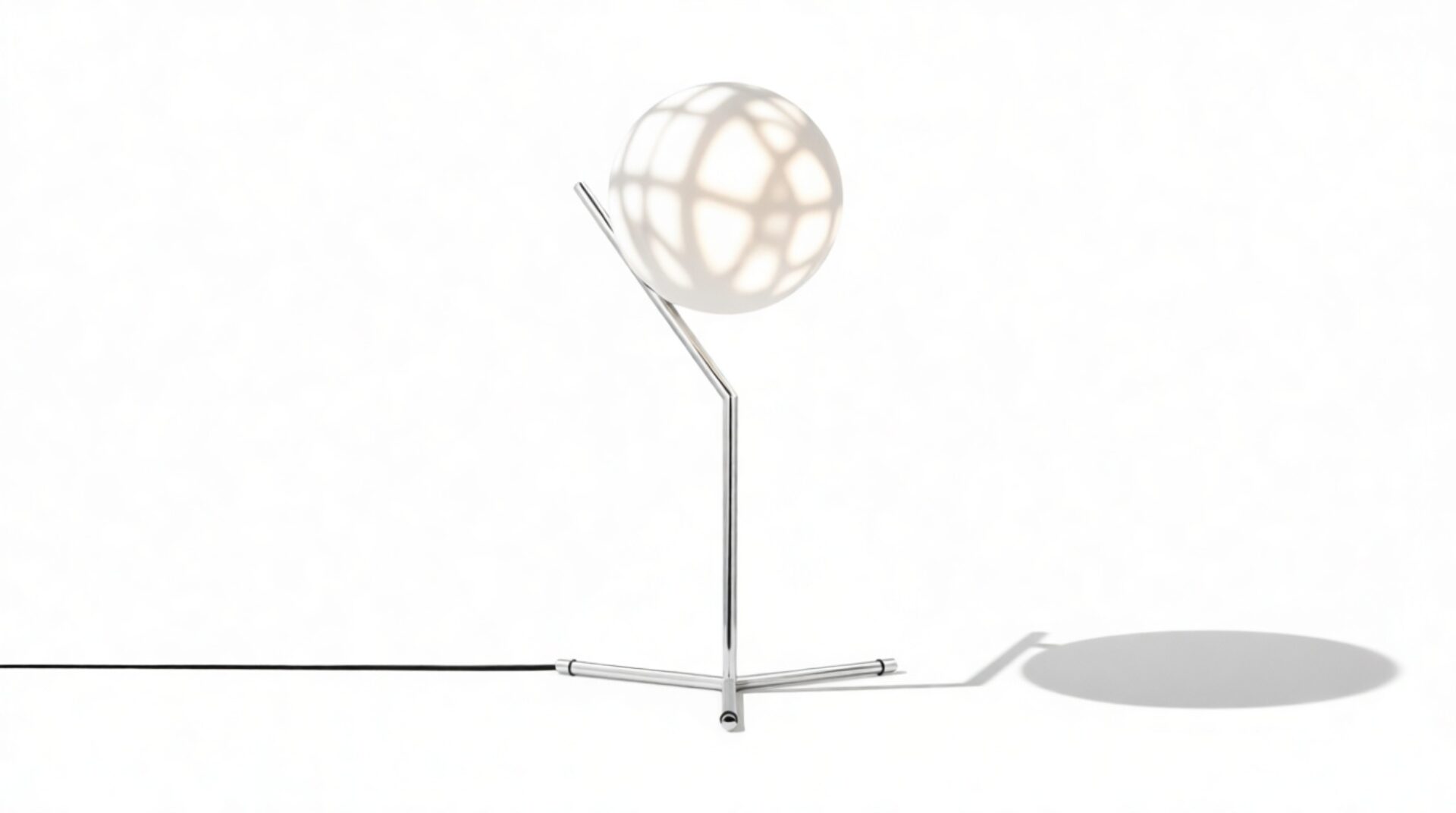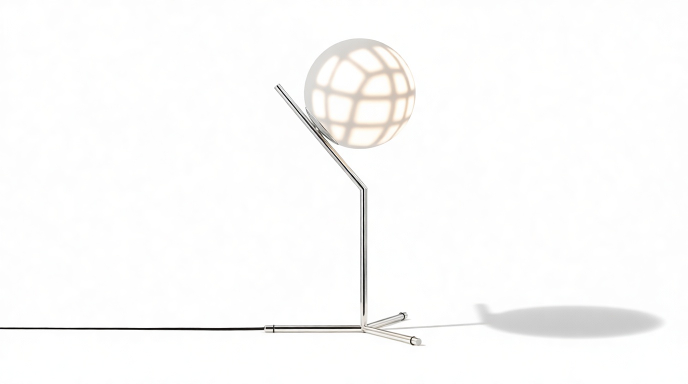 Meticulously constructed with a steel frame and offered in brushed brass, chrome, and black finishes, this modern design features a striking blown-glass opal diffuser, elegantly perched on the end of the slim stem. The IC Table Lamp is meticulously created to emit a gentle illumination, providing an ambient lighting option that is fashionable and atmospheric.