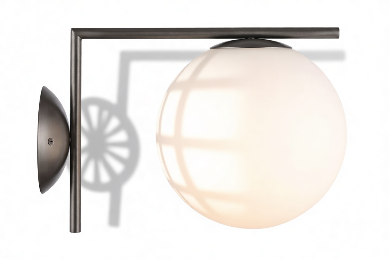 Undoubtedly a stunning embodiment of beauty and elegance, the IC Wall Light draws inspiration from the poise and grace of a skilled juggler. This sconce showcases an L-shaped metal bracket that seemingly suspends the opaline glass orb as if by magic. The goal of creating the illusion of weightlessness for the orb is flawlessly achieved, resulting in a piece that is both visually captivating and sophisticated. Crafted from high-quality materials, this sconce offers versatile mounting options.