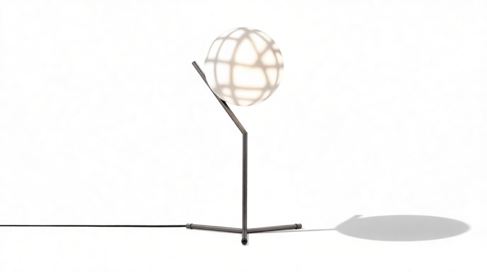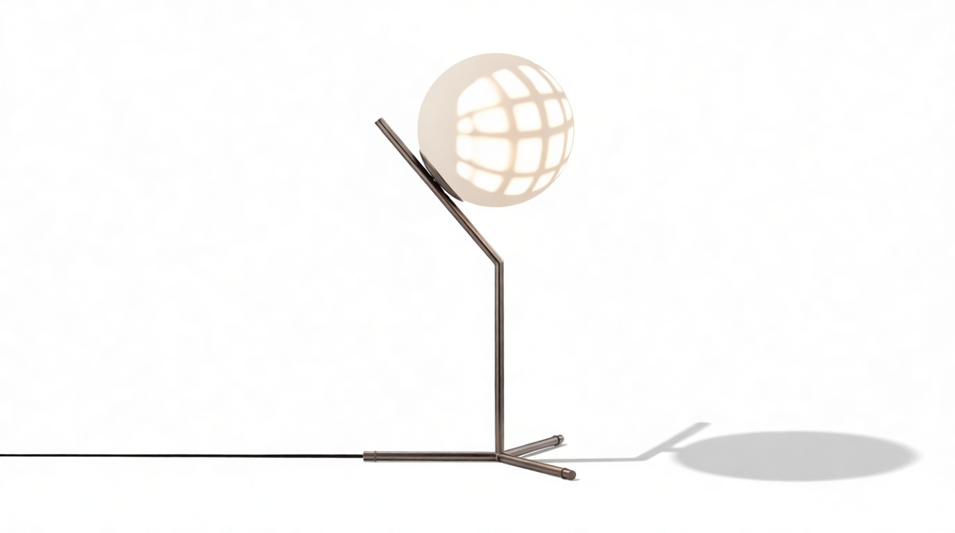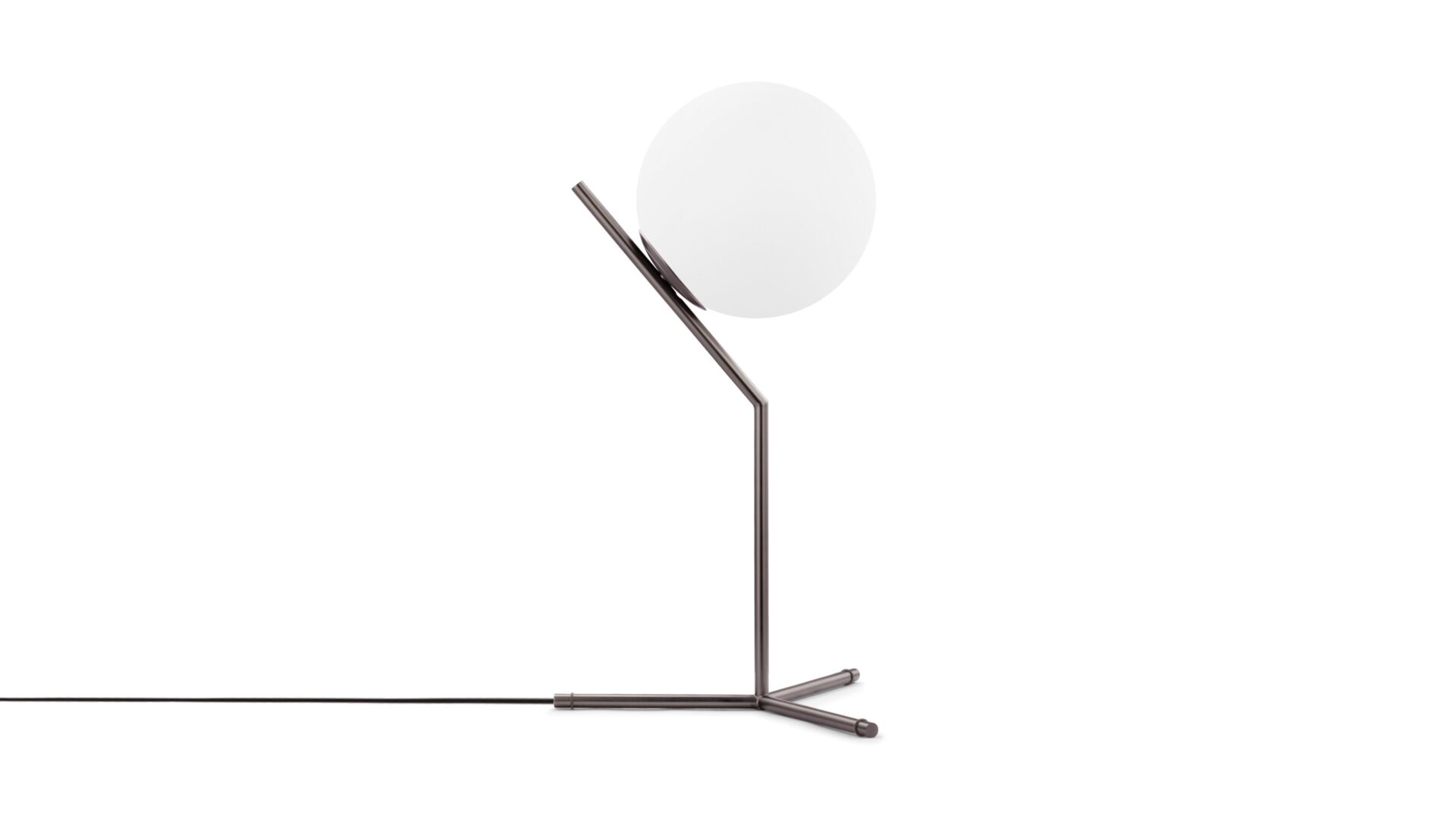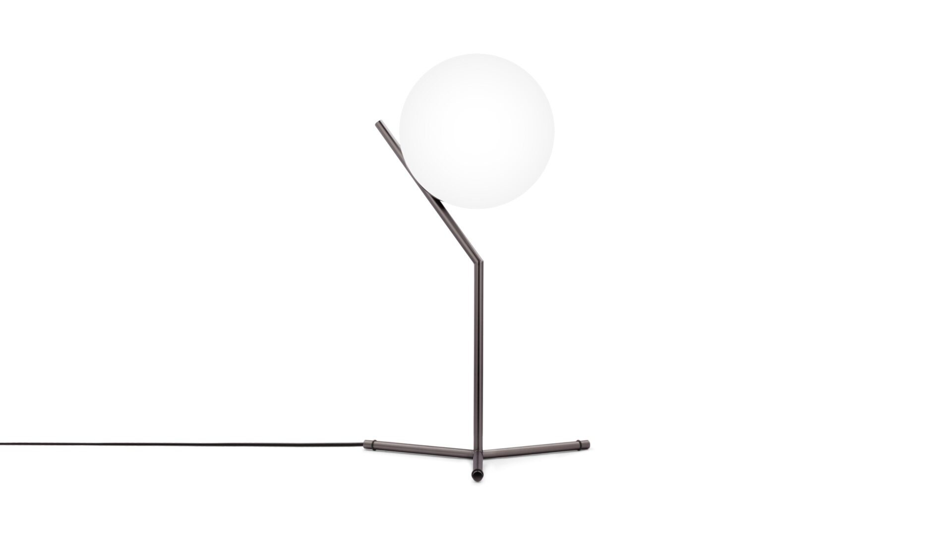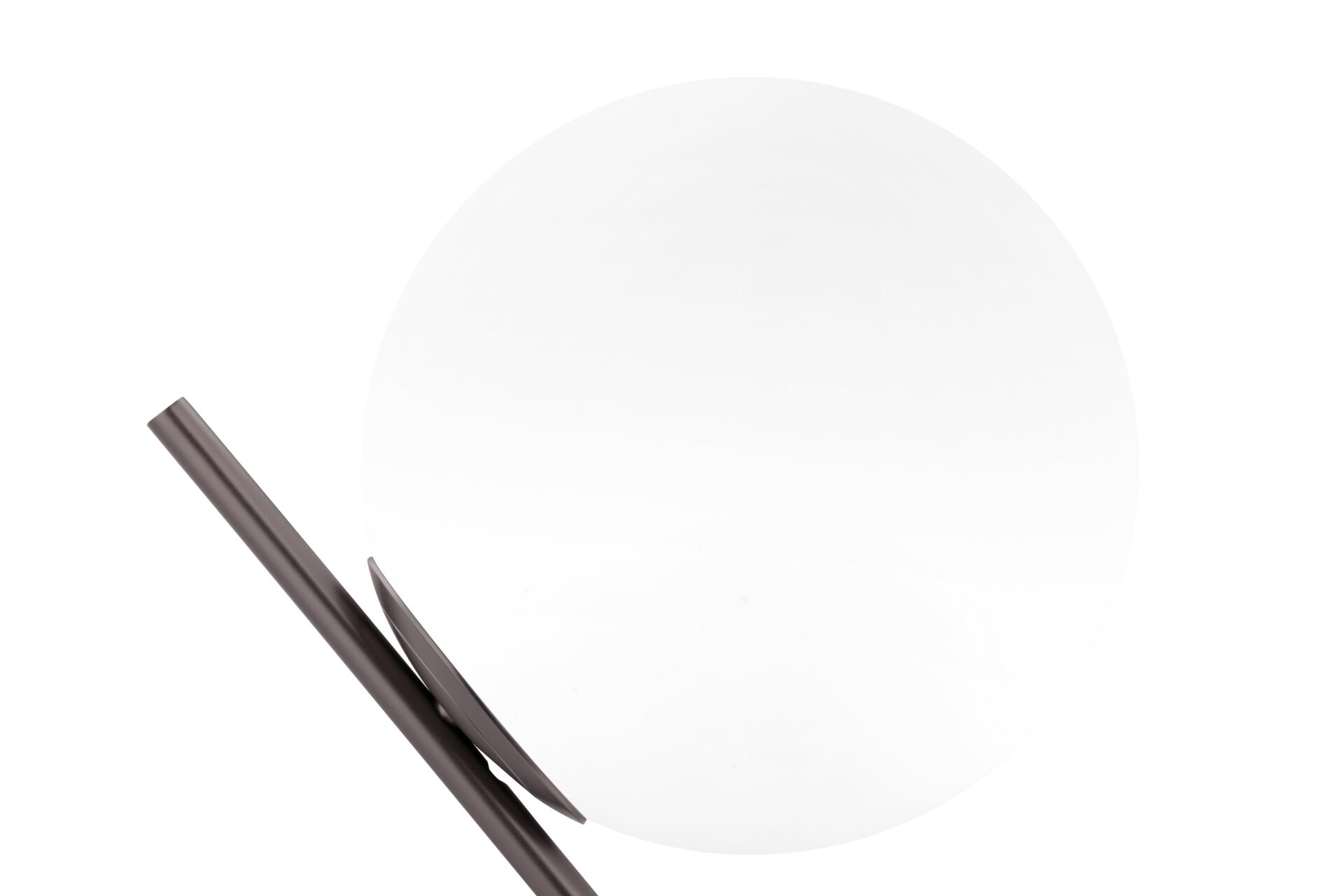 Meticulously constructed with a steel frame and offered in brushed brass, chrome, and black finishes, this modern design features a striking blown-glass opal diffuser, elegantly perched on the end of the slim stem. The IC Table Lamp is meticulously created to emit a gentle illumination, providing an ambient lighting option that is fashionable and atmospheric.