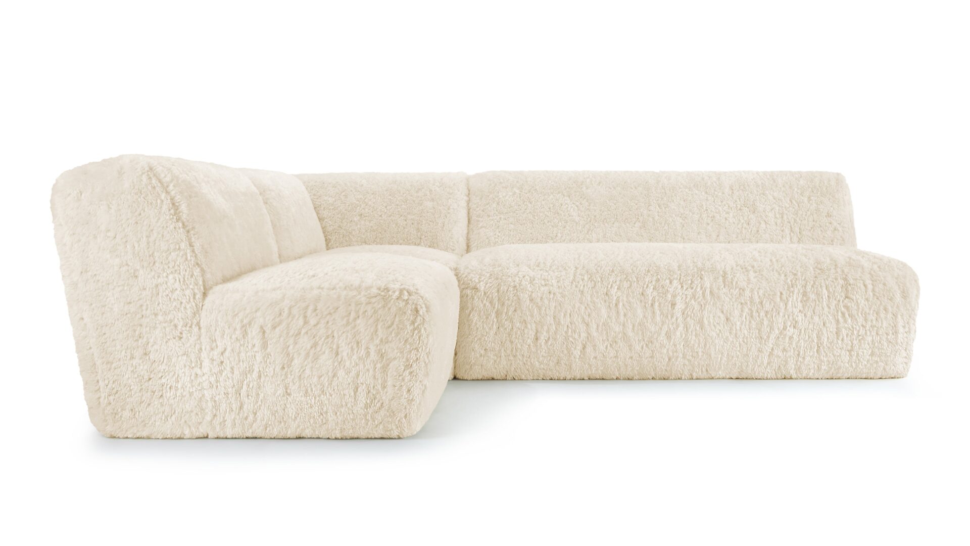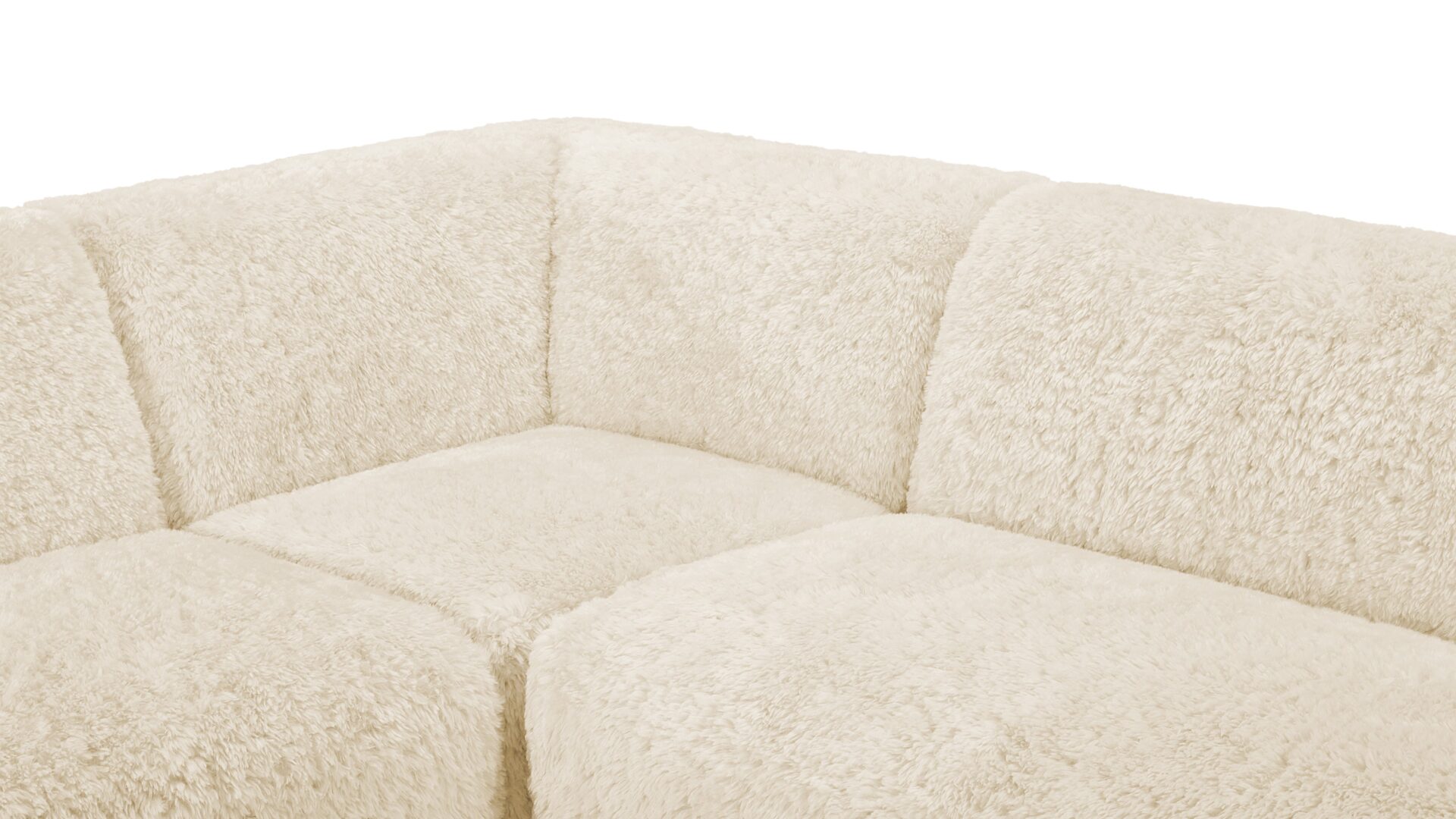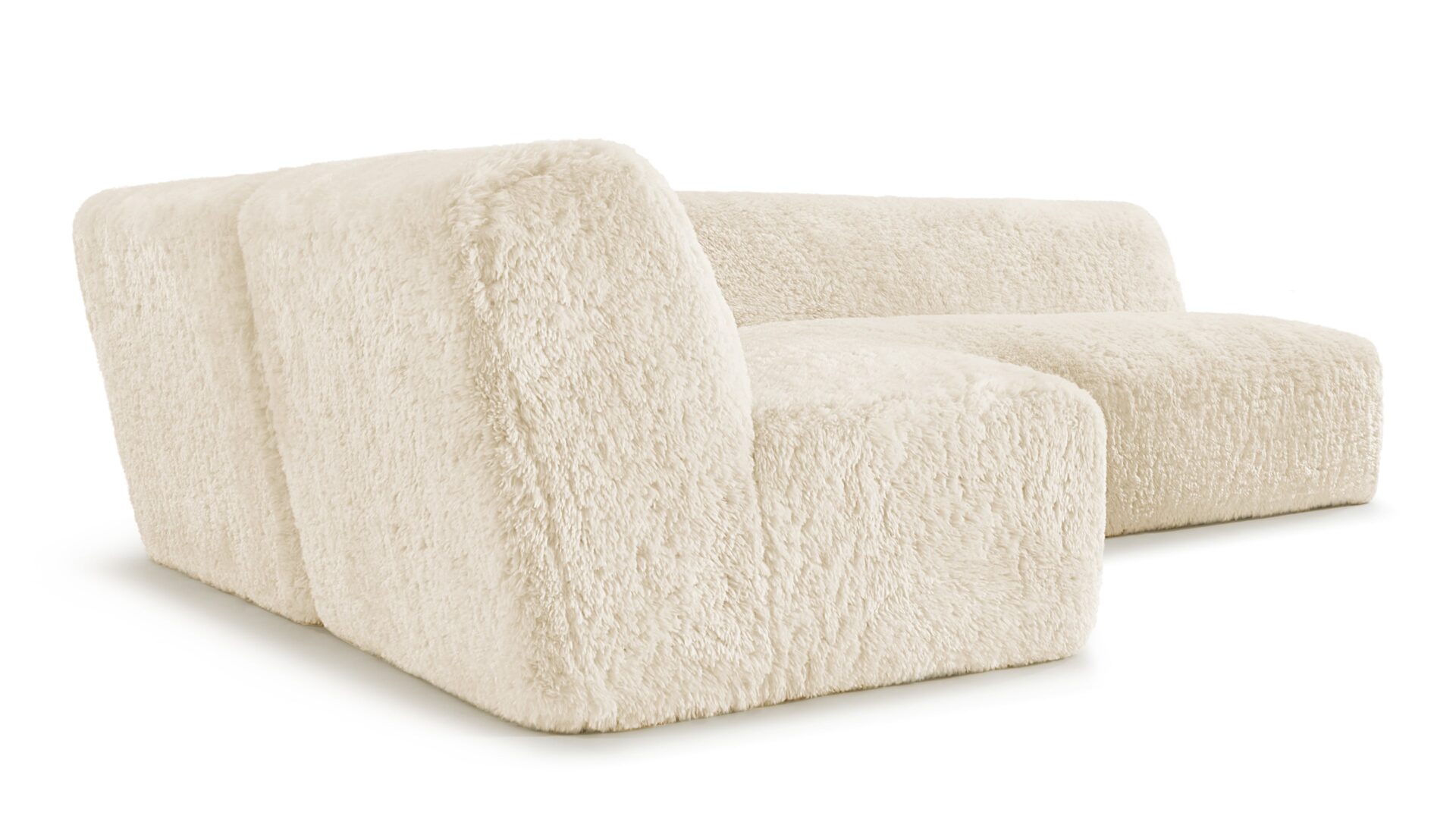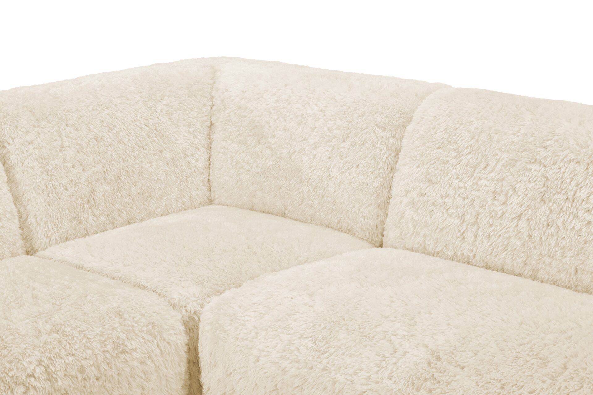 Experience ultimate luxury with the Iona Sectional Collection, featuring sumptuous faux sheepskin upholstery and a sleek, contemporary design. This customizable sectional allows you to choose from pre-defined configurations or individual modules, giving you the flexibility to create a personalized look that fits your space perfectly, adding a touch of individuality. Sink into its deep seats and plush cushioning for unmatched comfort, while the light cream color lends a touch of sophistication that complements a range of interior aesthetics. The sectional's rounded silhouette and simple block design blend modern trends with timeless elegance.