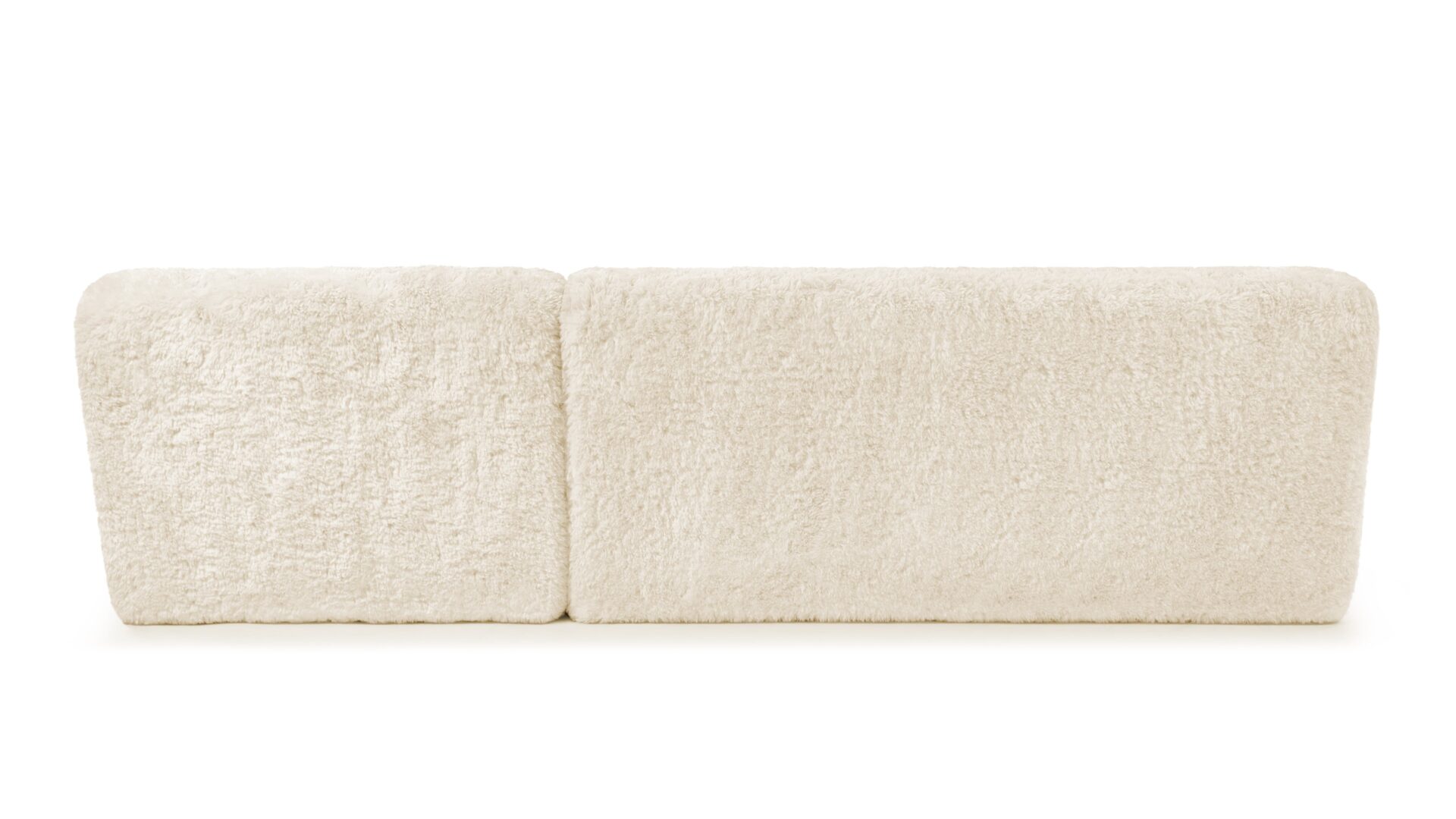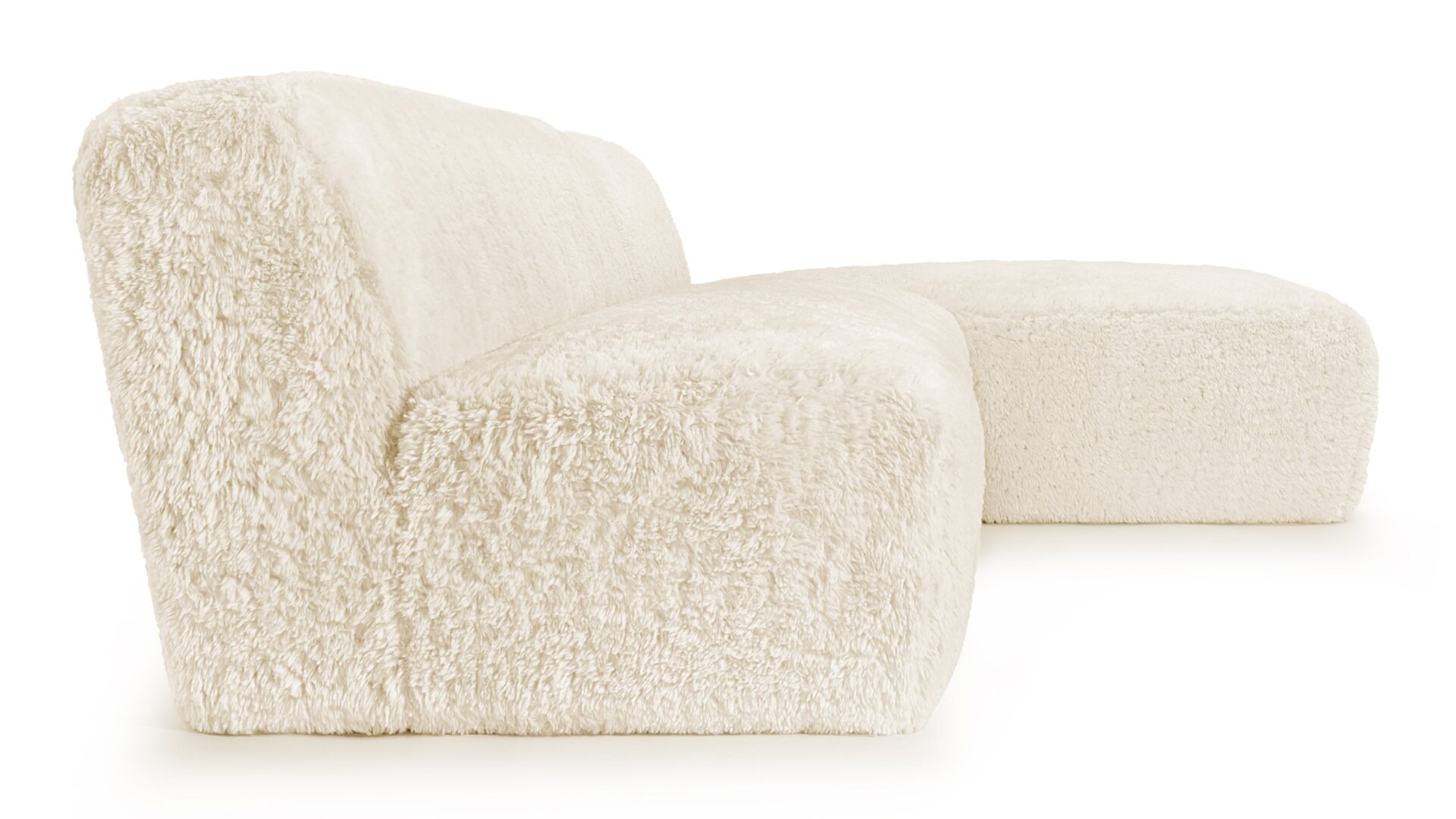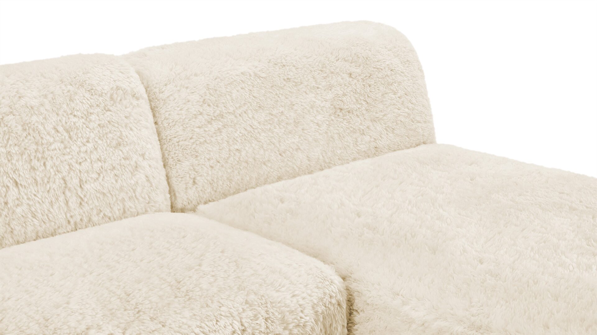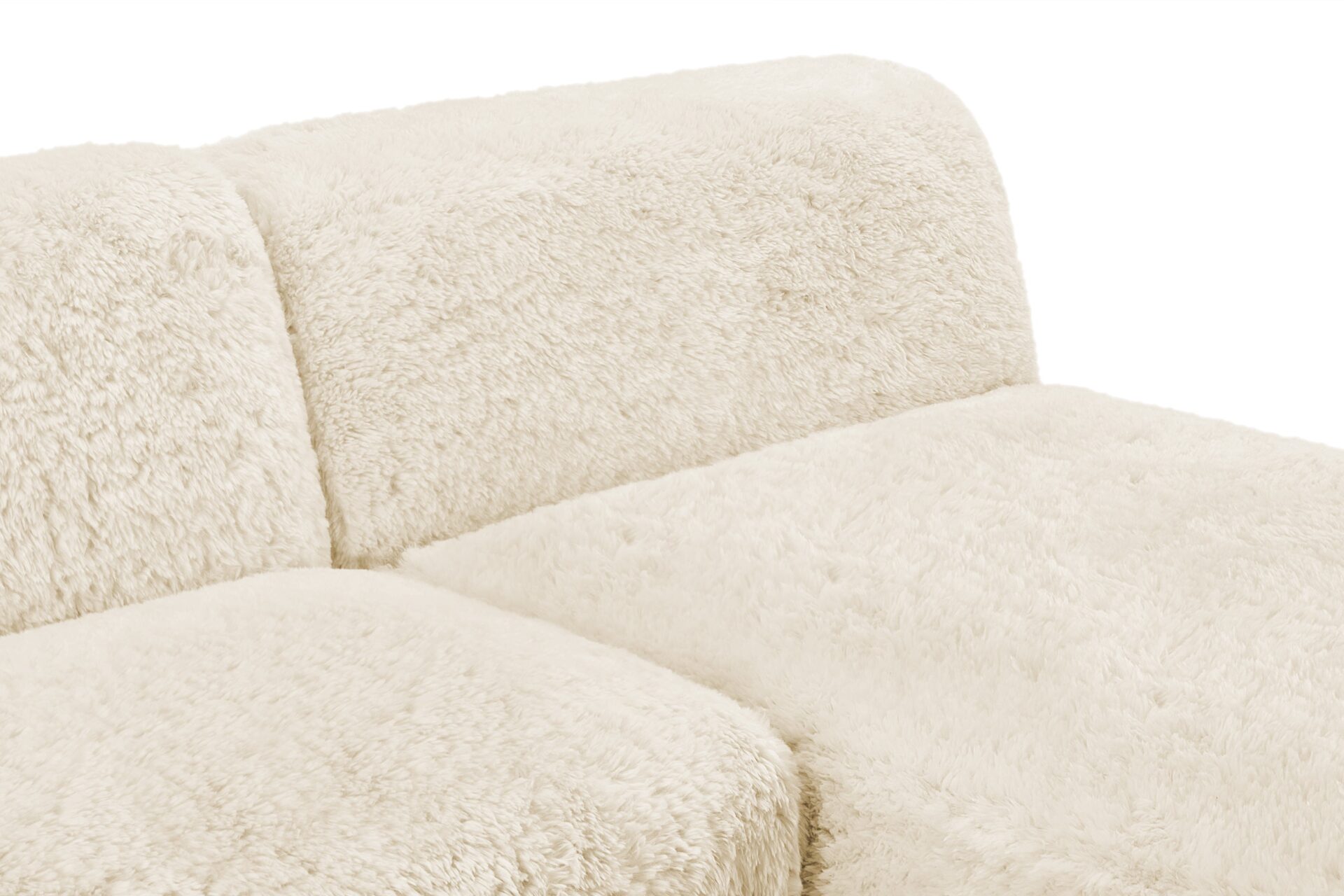 Experience ultimate luxury with the Iona Sectional Collection, featuring sumptuous faux sheepskin upholstery and a sleek, contemporary design. This customizable sectional allows you to choose from pre-defined configurations or individual modules, giving you the flexibility to create a personalized look that fits your space perfectly, adding a touch of individuality. Sink into its deep seats and plush cushioning for unmatched comfort, while the light cream color lends a touch of sophistication that complements a range of interior aesthetics. The sectional's rounded silhouette and simple block design blend modern trends with timeless elegance.