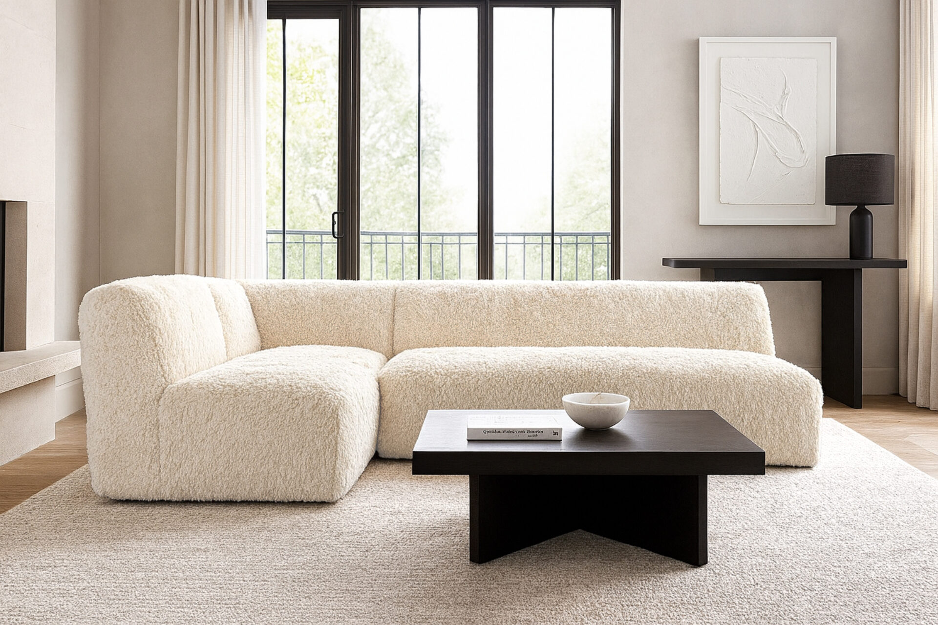 Combining both comfort and practicality, this sectional is crafted with thick padding and soft textures, making it an ideal spot for relaxation and lounging. The faux sheepskin material exudes warmth, while its minimalist look seamlessly pairs with modern or eclectic decor styles. Whether as a focal point in a room or as part of a larger layout, the Iona Sectional Collection makes a bold statement in both style and comfort.