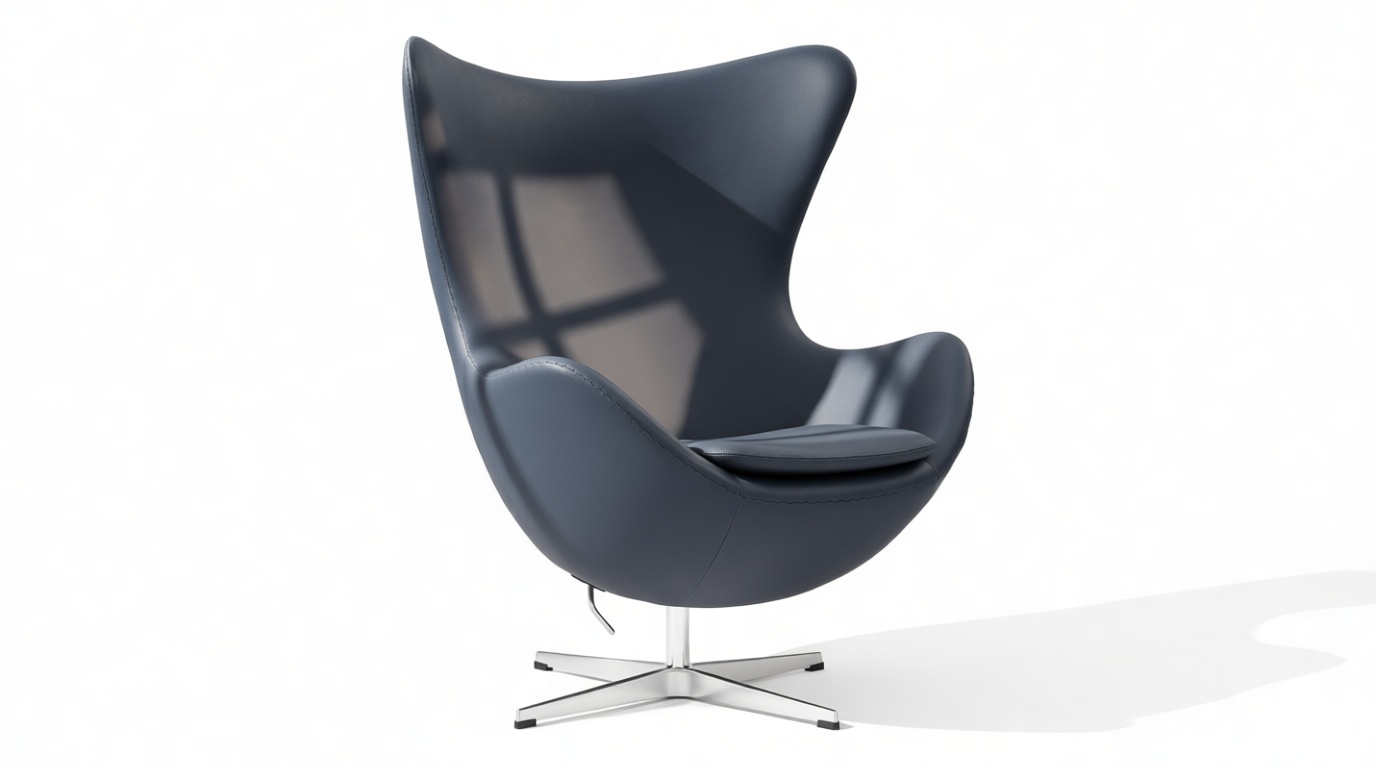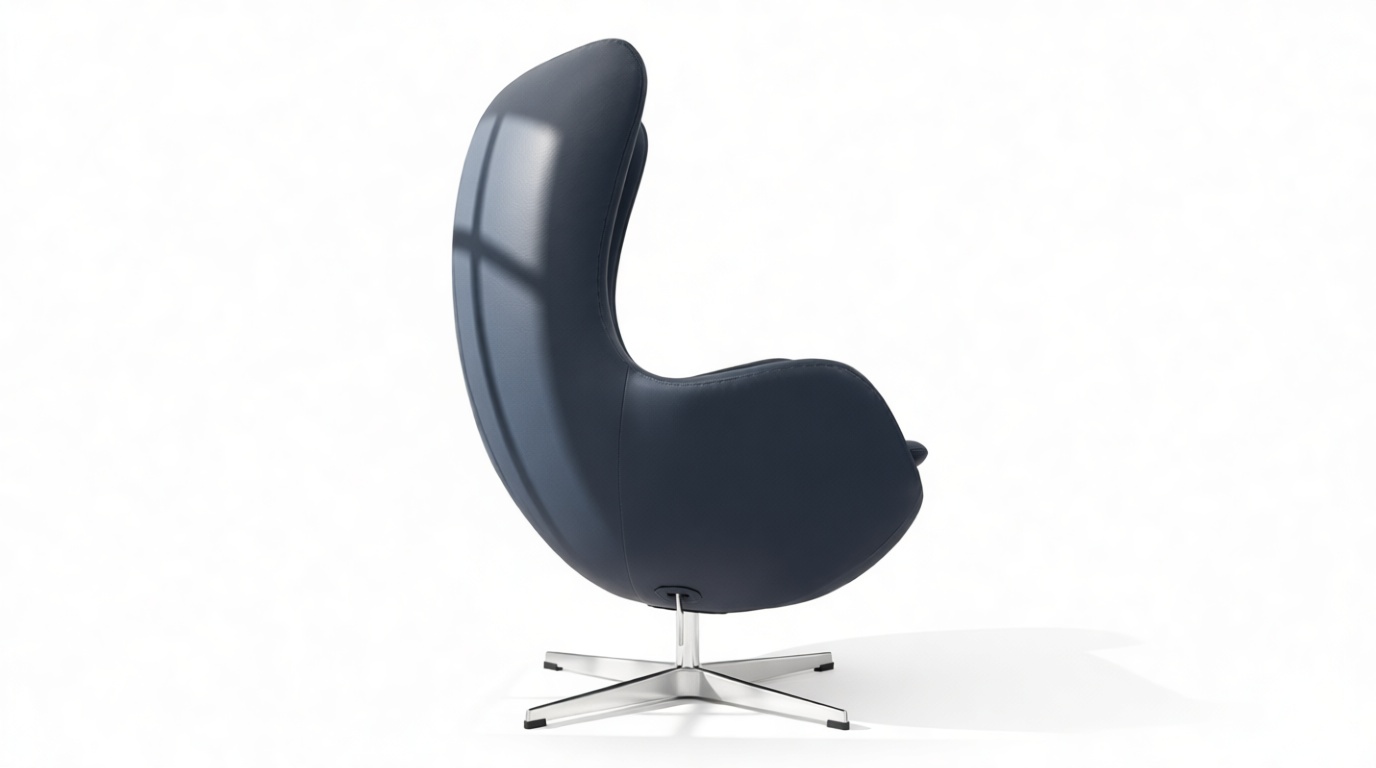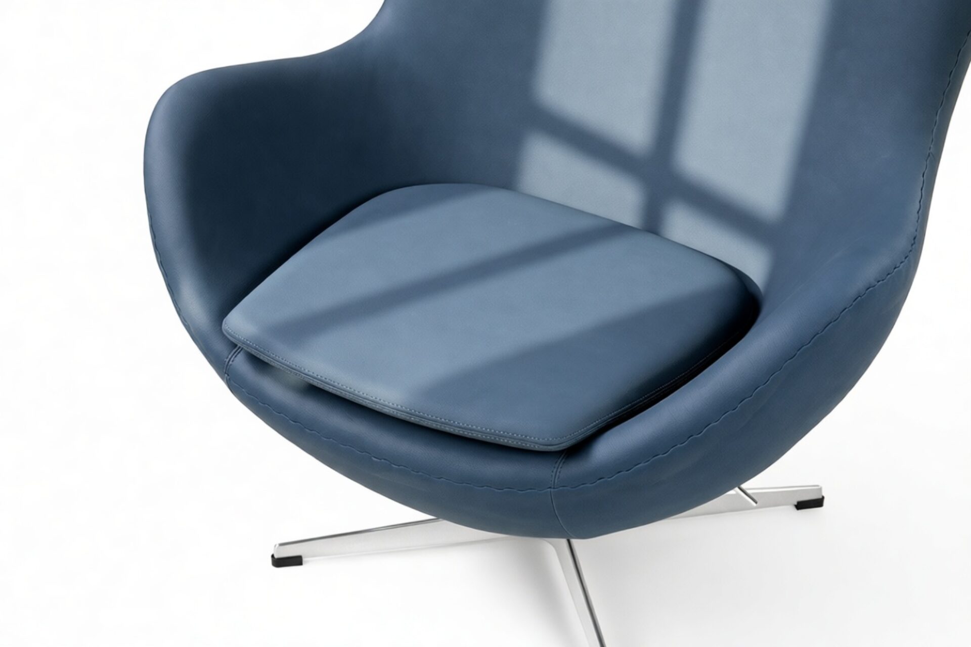 Indulge in the timeless charm of the signature Egg chair, a revered icon inspired by the vibrant aesthetics of the 1950s. Featuring a sturdy metal base for smooth swiveling, its elegantly contoured frame and seat in Vintage Blue Vegan Leather offer luxurious comfort while embodying both form and function, creating an enduring symbol of sophistication. The modern wing chair stands as a symbol of prestige, boasting an iconic design and unmatched ergonomic shape in Vintage Blue Vegan Leather. This distinguished piece seamlessly blends style and comfort, making it a staple in elegant homes and offices worldwide. The celebrated Jacobsen Chair in Vintage Blue Vegan Leather exudes unparalleled luxury with exceptional craftsmanship, hand-stitched details, and premium materials, ensuring durability and timeless elegance for generations to cherish.