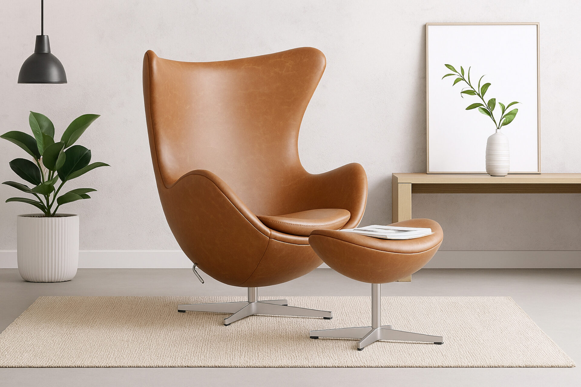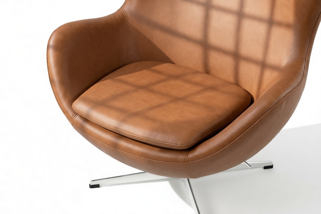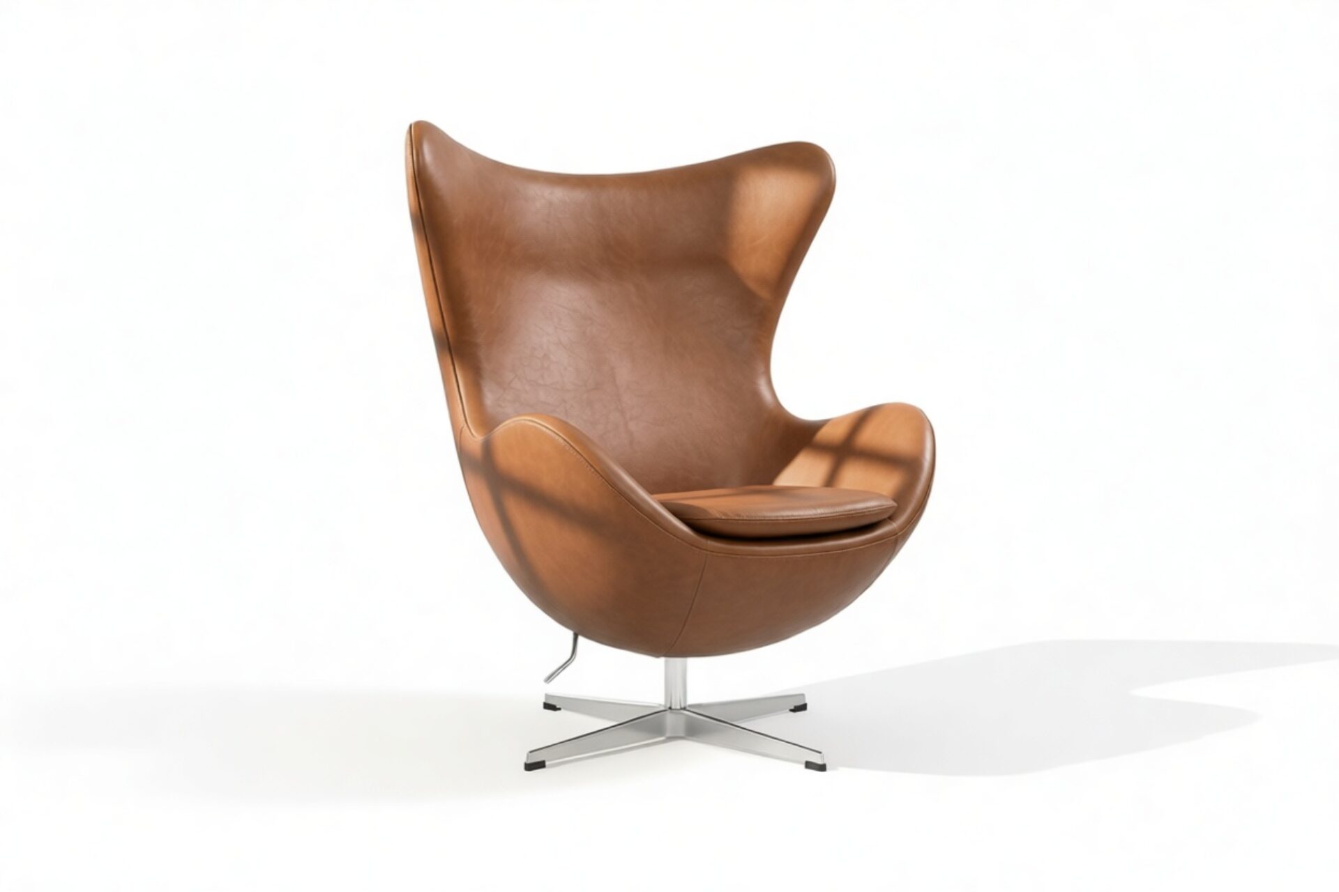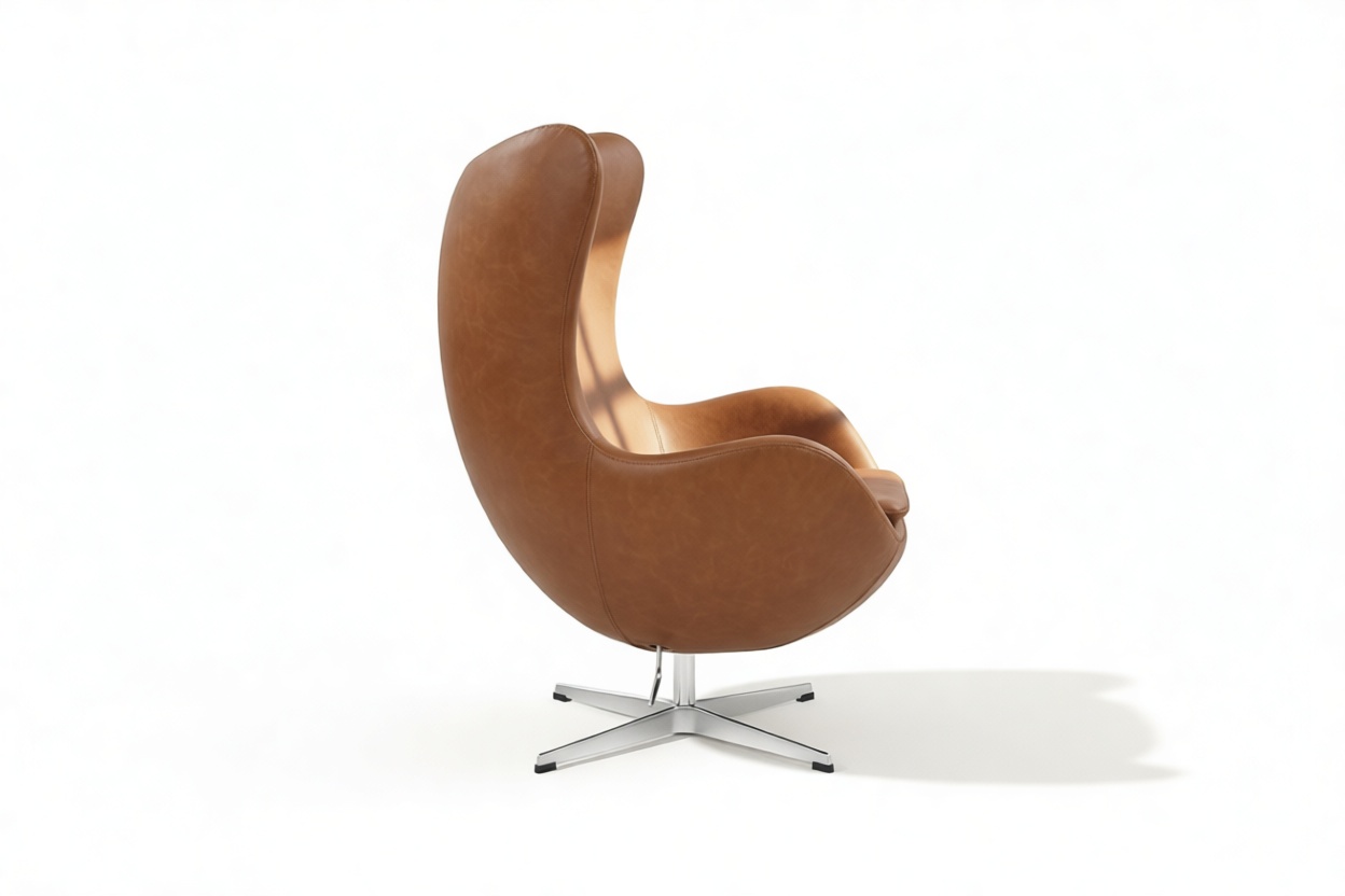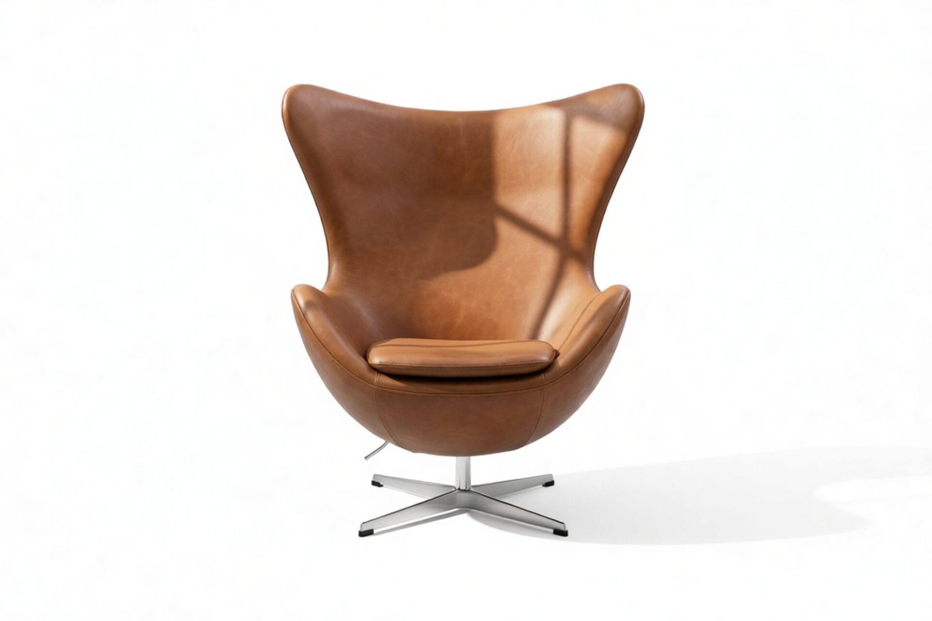 Discover the iconic Egg chair, a symbol of sophistication inspired by 1950s aesthetics. Its smooth swivel base provides flexibility, while its contoured vegan leather upholstery offers luxurious comfort. This chair embodies a perfect blend of form and function, standing as a timeless piece that exudes elegance. Also, explore the luxurious comfort and unmatched prestige of the wing chair, a symbol of style and comfort known for its ergonomic design. The timeless Jacobsen Chair, crafted with chestnut vegan leather, offers unparalleled luxury with meticulous hand-stitched details and exceptional craftsmanship, creating a durable and elegantly refined piece.