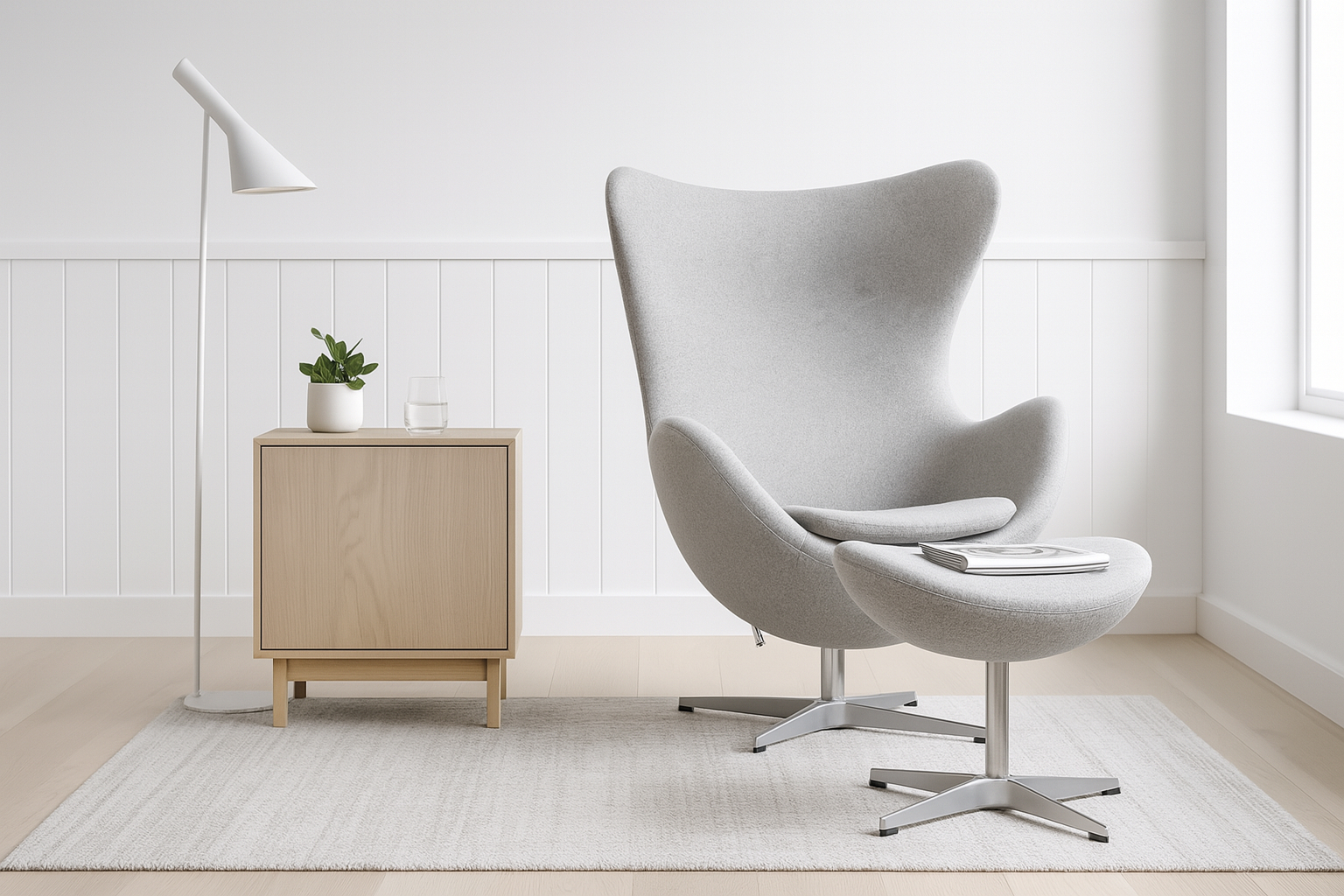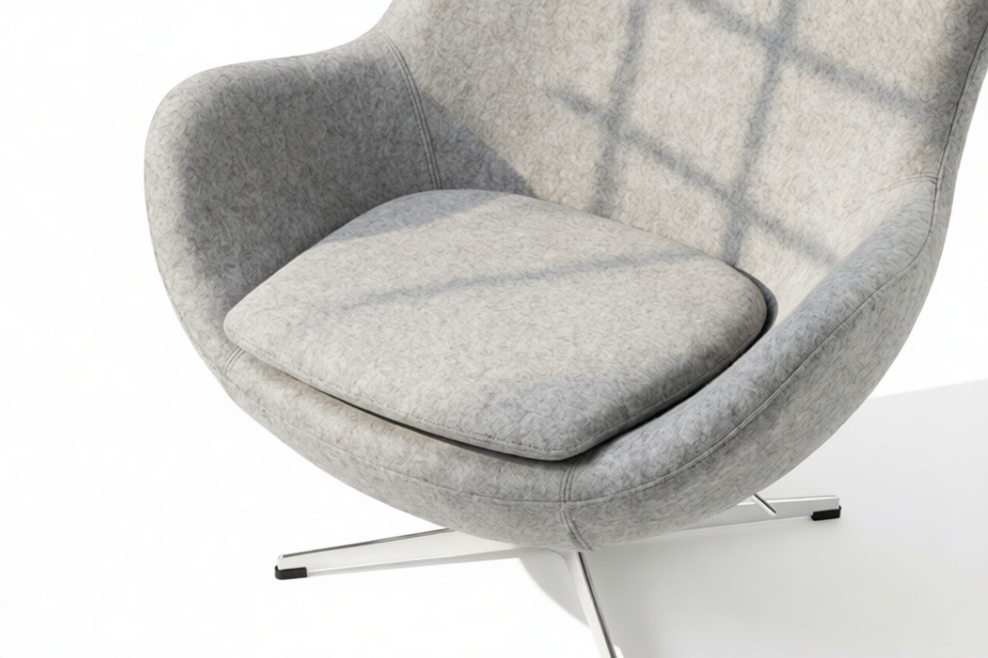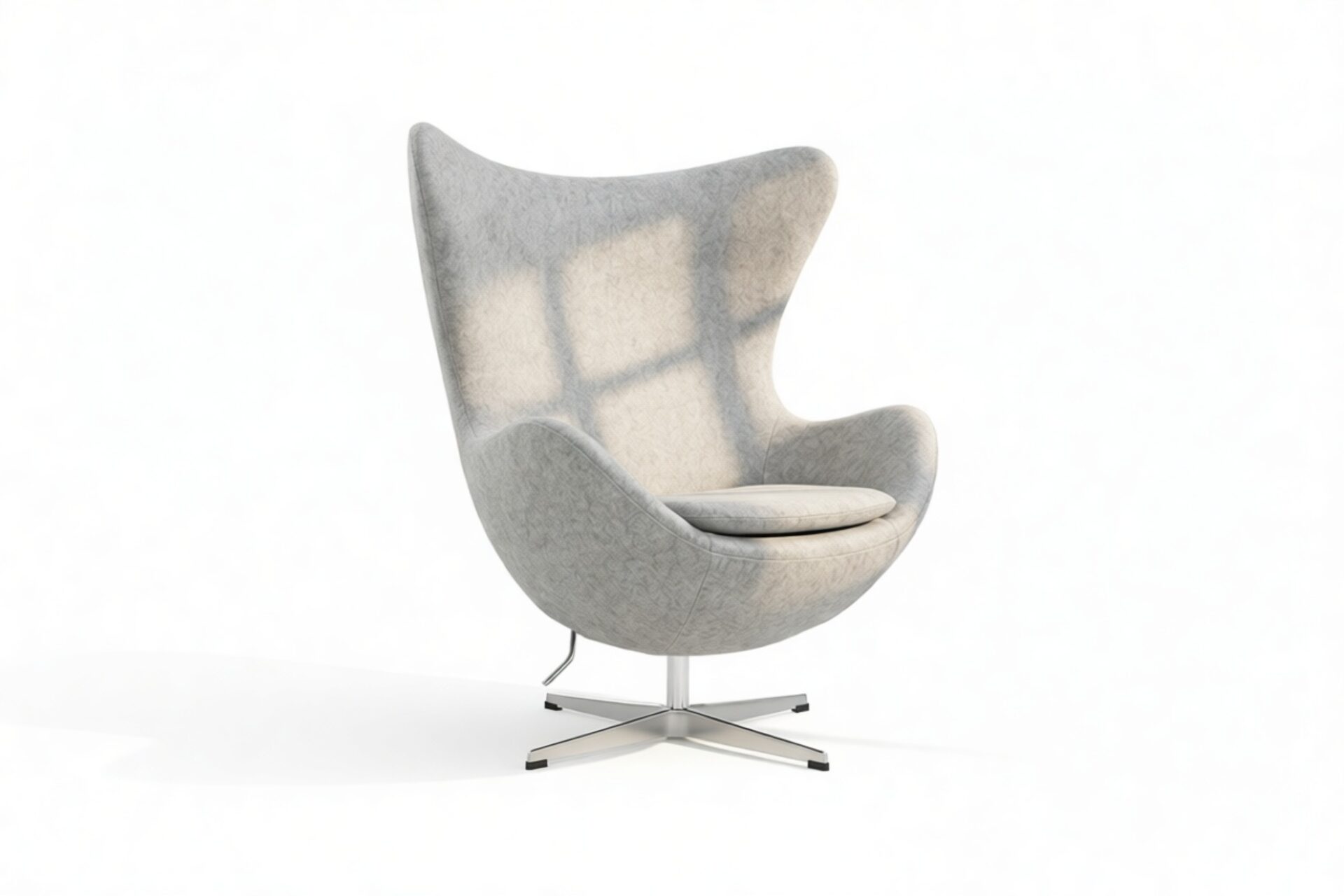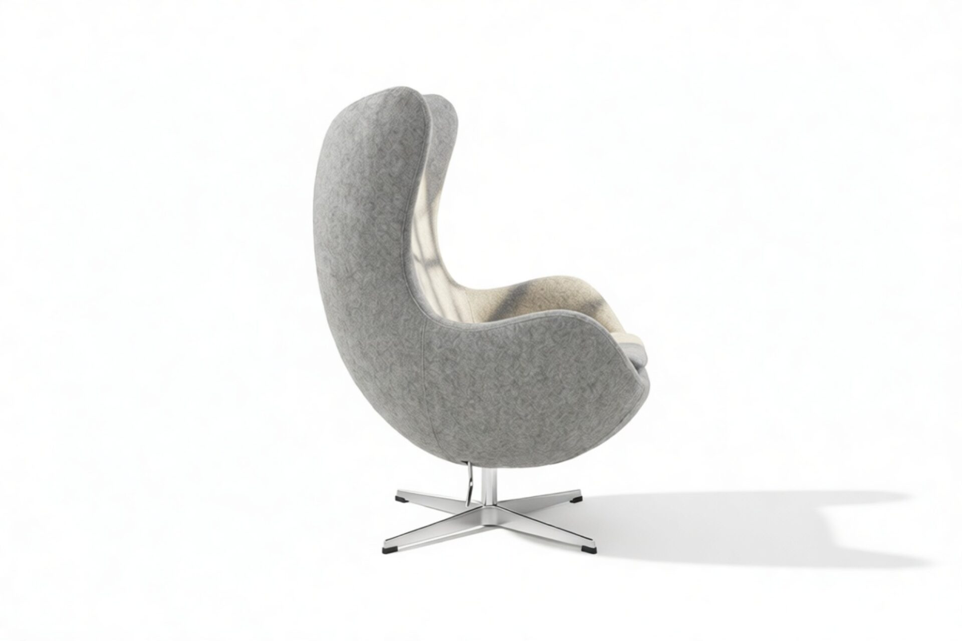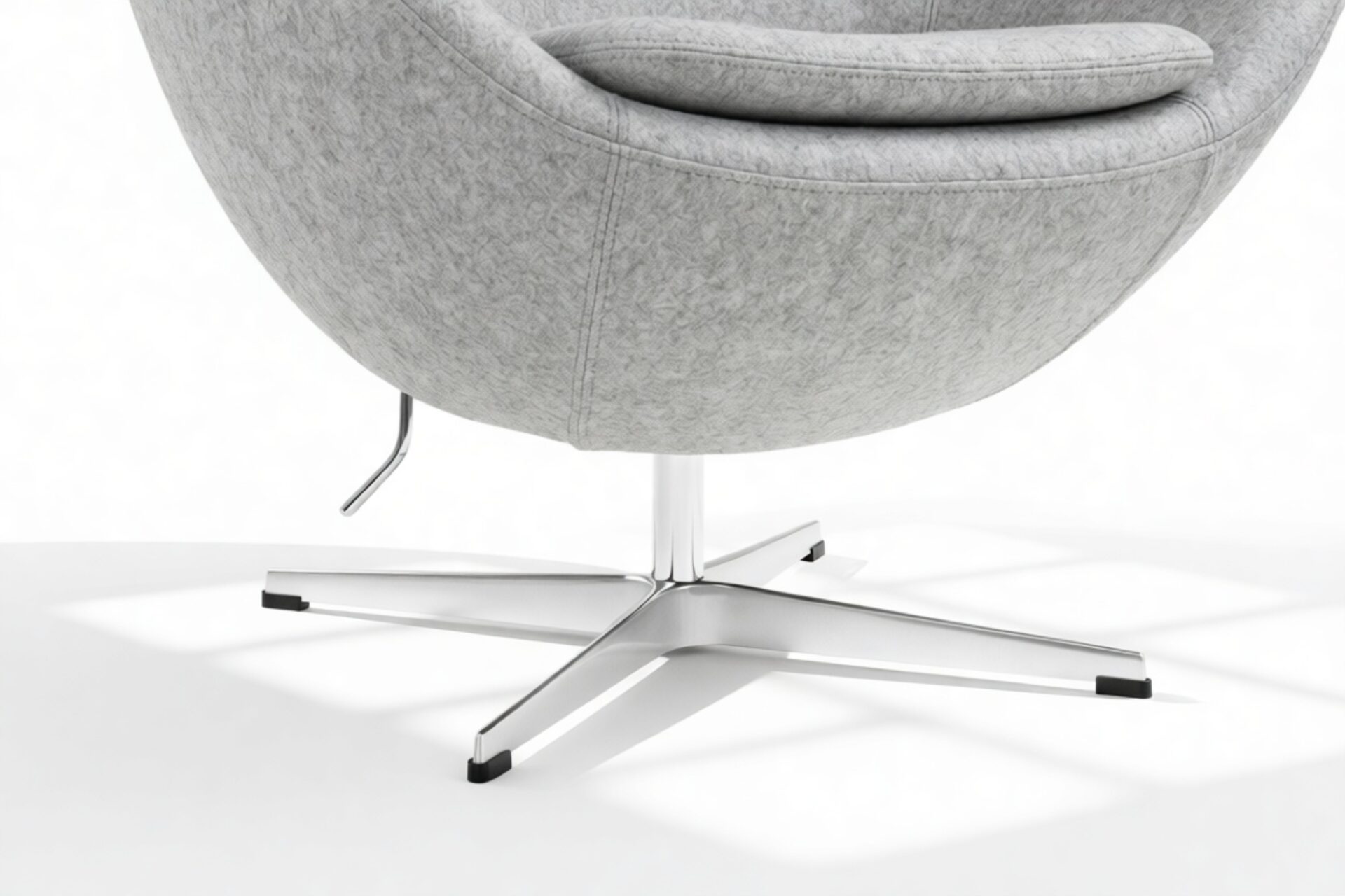 Discover the timeless elegance of the Egg chair, an icon of 1950s design boasting a swivel metal base for added convenience. Luxuriously contoured upholstery in Light Gray Wool exudes comfort while embodying both form and function. In arne chair, signature furniture item crafted to perfection with hand-stitched details, the Light Gray Wool material adds a modern touch to the refined finishes, ensuring enduring comfort and style for generations.