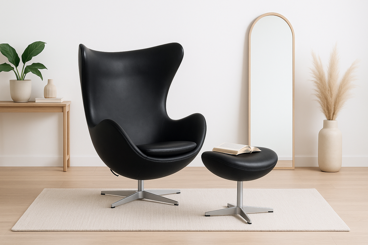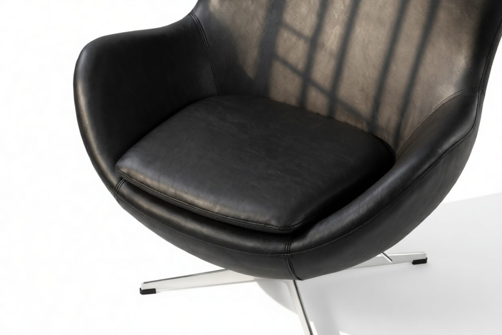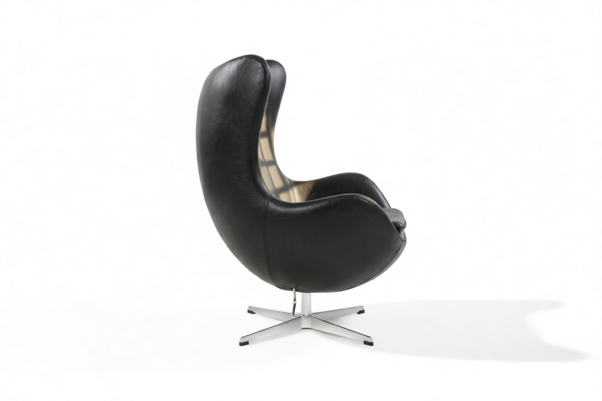 Step into a world where iconic design meets unmatched comfort with the Egg chair. Inspired by the vibrant aesthetics of the 1950s, this chair boasts a sturdy metal base that smoothly swivels. The midnight black premium leather upholstery adds a touch of sophistication, ensuring a luxuriously comfortable seating experience. A symbol of both style and function, this timeless piece exudes elegance with every curve. Elevate your space with the modern wing chair, renowned for its prestige and ergonomic shape. Crafted to stand the test of time, its refined finishes and sleek midnight black premium leather upholstery make a bold statement in any room. Experience ultimate luxury with the Jacobsen Chair, meticulously handcrafted with precision and finished in midnight black premium leather. This exquisite piece is a testament to exceptional craftsmanship, designed to be cherished for generations.