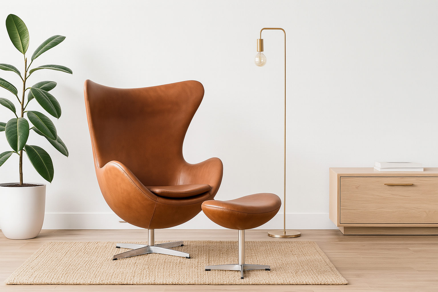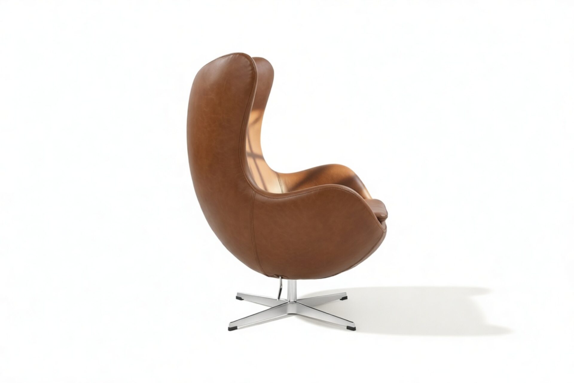 Experience the unmatched allure of the Egg chair, an enduring symbol of sophistication inspired by the vibrant 1950s aesthetics. This luxuriously contoured chair features an elegantly upholstered frame and seat in Tan Premium Leather, offering timeless style and utmost comfort. Alluring and convenient, its sturdy swiveling metal base provides flexibility, making it a cherished centerpiece in any space. Engage in the elegance and comfort of the modern wing chair, a prestigious symbol renowned for its iconic design and ergonomic shape. In Tan Premium Leather, this distinguished piece elegantly combines style and comfort, standing the test of time with its refined finishes and unparalleled craftsmanship. Revel in the unmatched luxury and craftsmanship of the Jacobsen Chair, meticulously handmade with premium materials and exquisite hand-stitched details. Crafted in Tan Premium Leather, each Jacobsen Chair exudes timeless elegance and durability, ensuring a cherished piece that deftly combines style and quality for years to come.