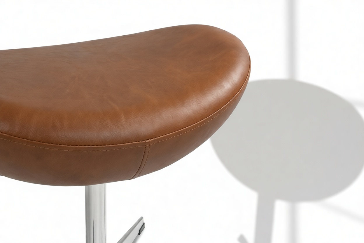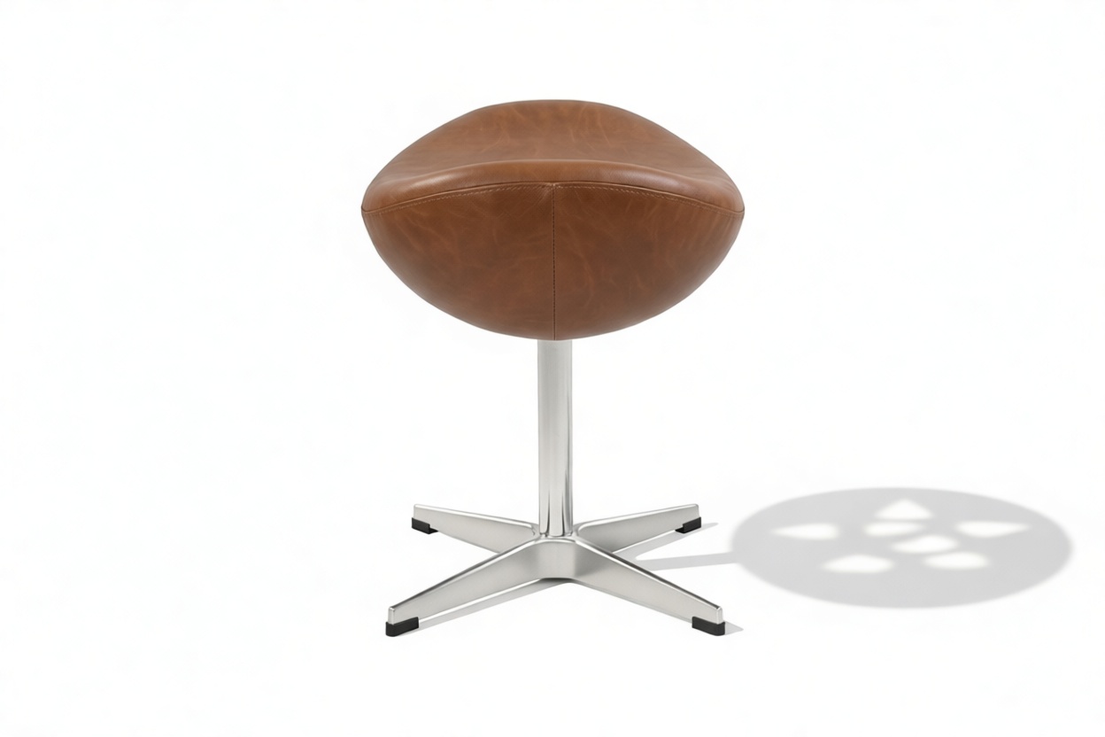 Experience the timeless elegance of the Egg chair and matching stool, evoking the iconic design of the 1950s. Crafted for ultimate comfort and sophistication, the stool complements the chair's sleek contours and premium upholstery. Elevate your space with a harmonious set that captures the essence of 1950s design. Customize with Tan Premium Leather for a luxurious touch.