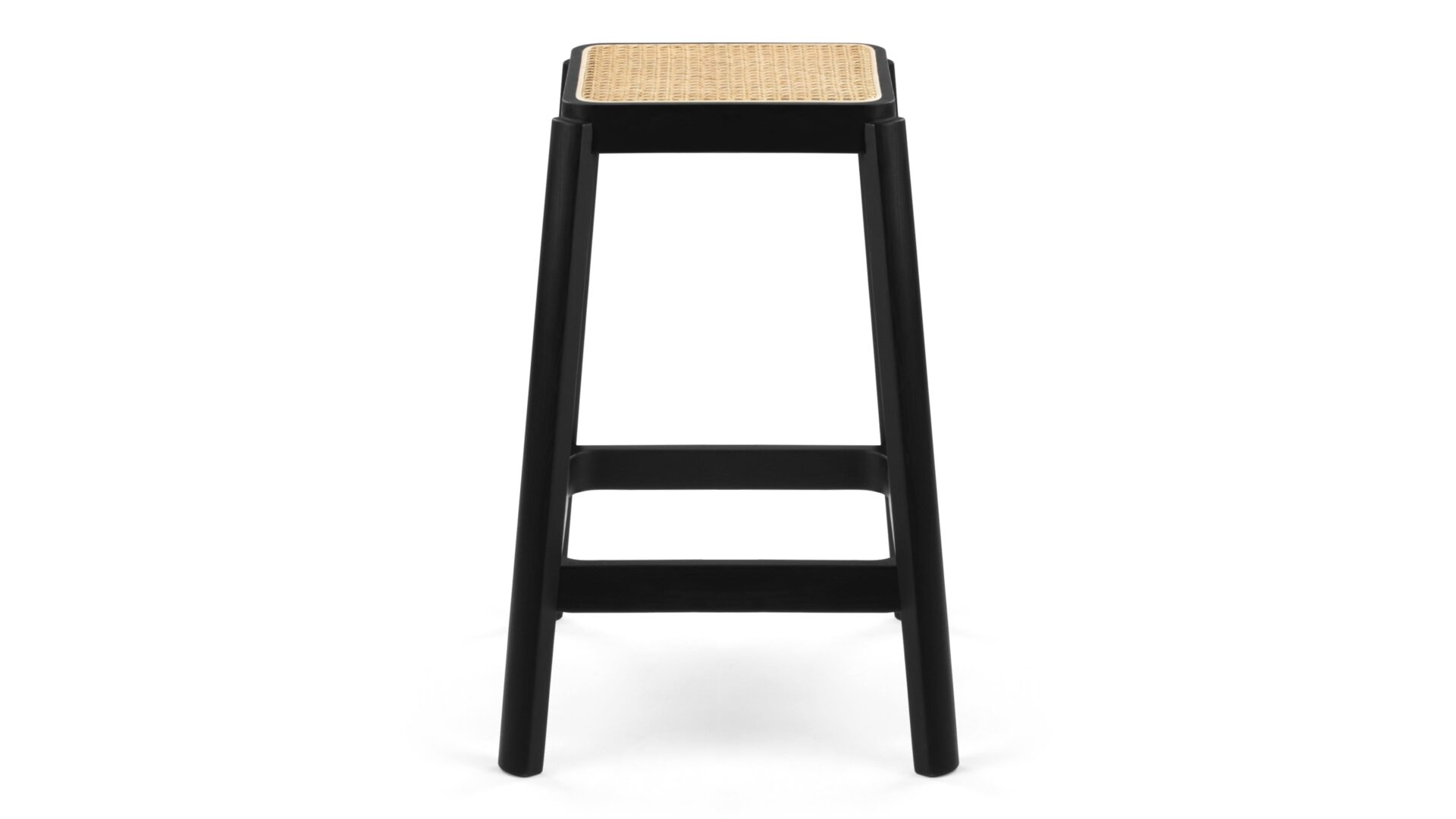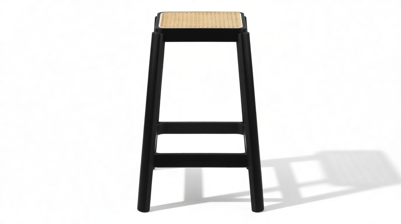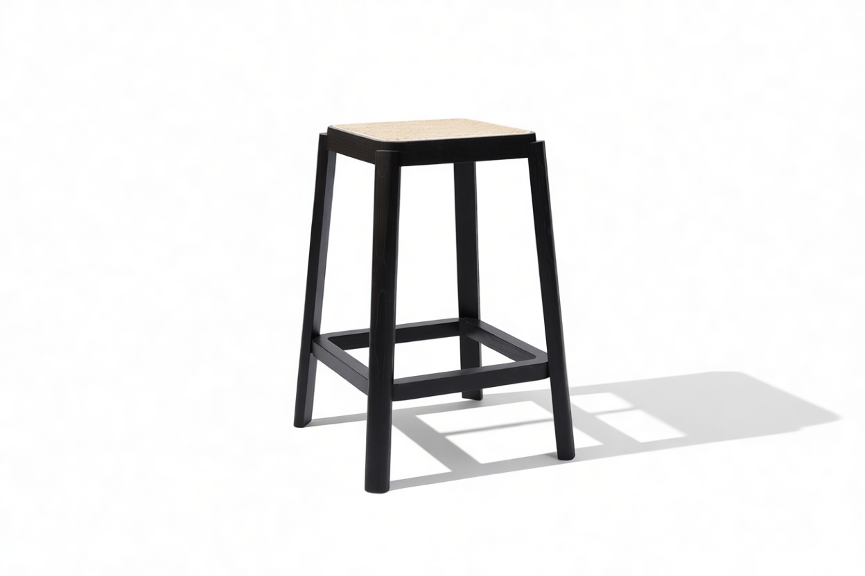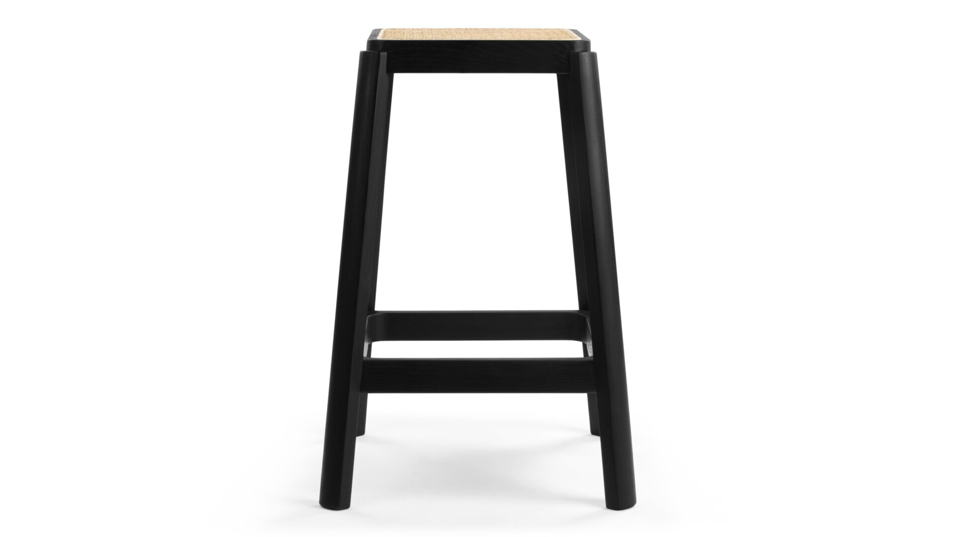 Enhance your space with the sleek design of the stool featuring a solid wood frame with clean lines and a rich finish that beautifully complements the rattan seat. The angled legs not only offer stability but also introduce a touch of architectural charm to the overall look.