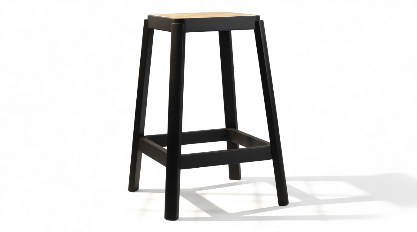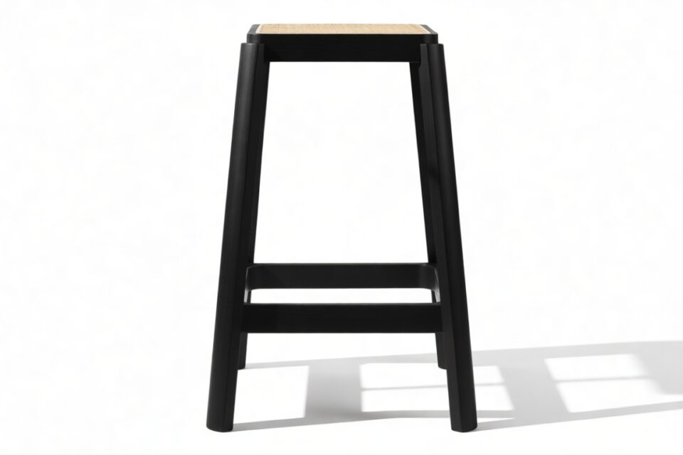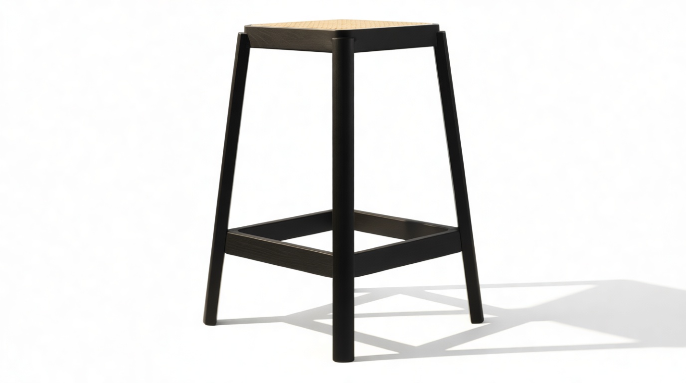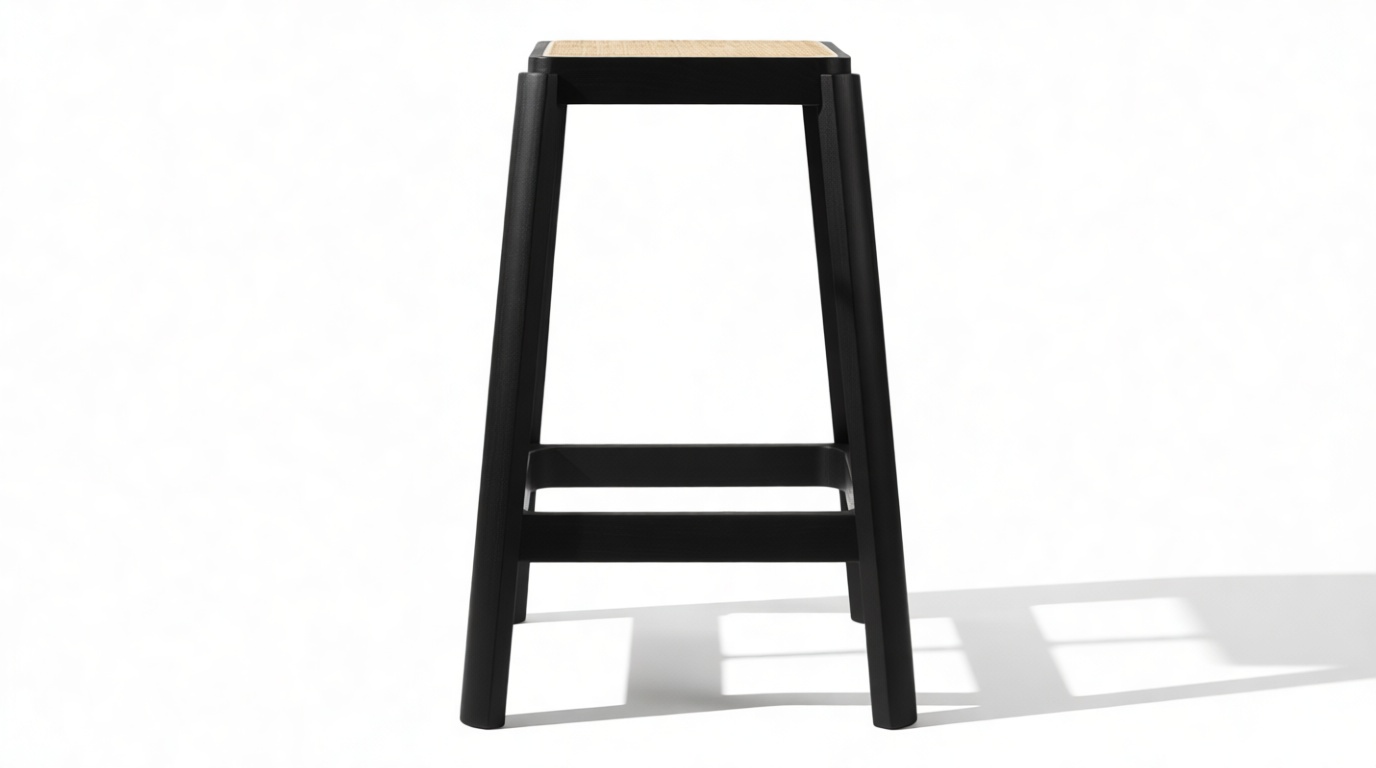 Enhance your space with the sleek design of the stool featuring a solid wood frame with clean lines and a rich finish that beautifully complements the rattan seat. The angled legs not only offer stability but also introduce a touch of architectural charm to the overall look.